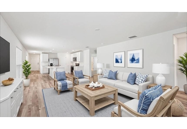 Under Construction. Welcome inside the Harper, a single-story, four bedroom and two bathroom home, offering 1,665 square feet of luxurious living space. The open-concept layout seamlessly connects the living room, dining area, and kitchen, creating a perfect space for entertaining with family and friends. With ample room for seating, it's an ideal spot for relaxation and gatherings. The kitchen features quartz countertops, stainless steel appliances, and a kitchen island. Whether you're preparing a casual meal or hosting a formal dinner, this kitchen is well-equipped to meet your culinary needs. The primary suite features a private ensuite bathroom with a double vanity and spacious walk-in closet. The remaining three bedrooms share a bathroom, and have carpeted floors and closets in each room. The Harper also includes a two-car garage and dedicated laundry room with a washer and dryer hook up. The Harper is complete with a state-of-the-art smart home system. Pictures, photographs, colors, features, and sizes are for illustration purposes only and will vary from the homes as built. Home and community information including pricing, included features, terms, availability and amenities are subject to change and prior sale at any time without notice or obligation. CRC057592
