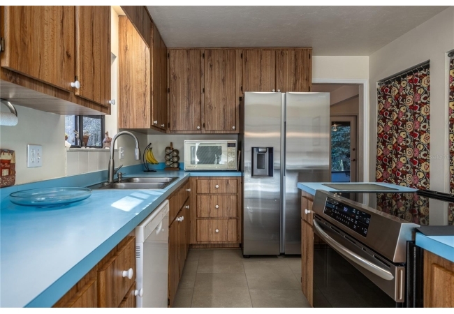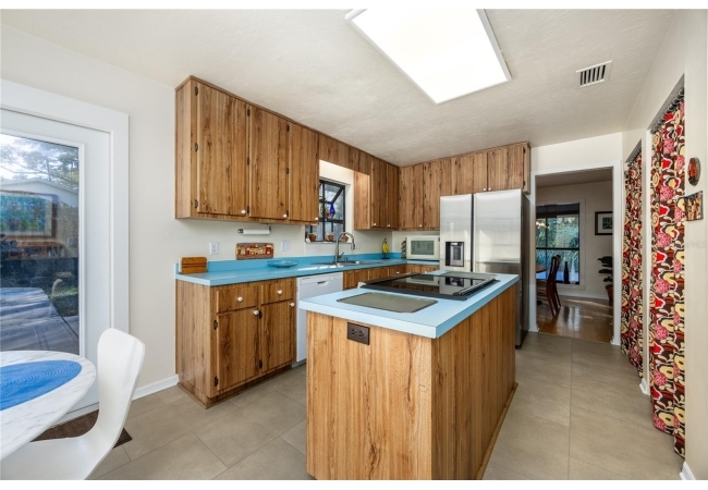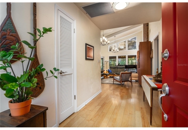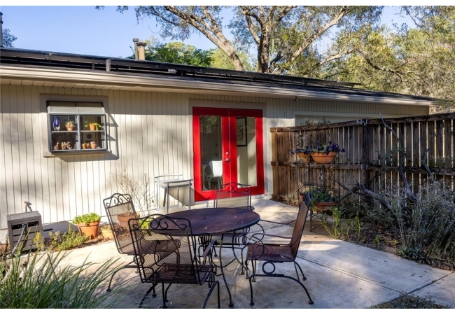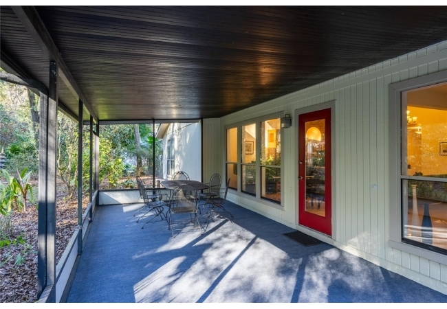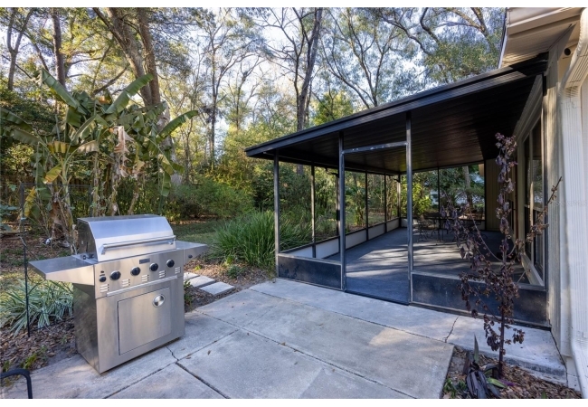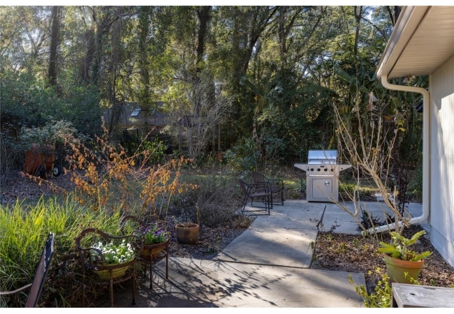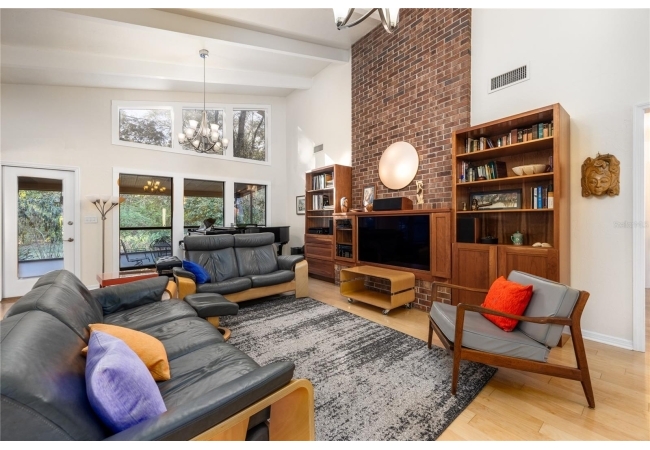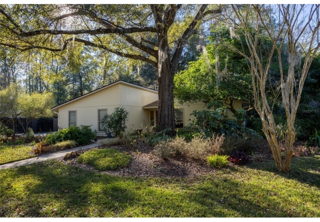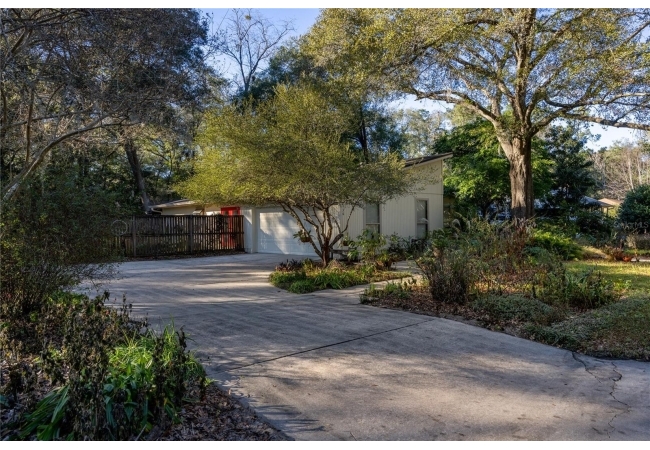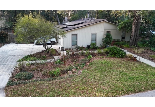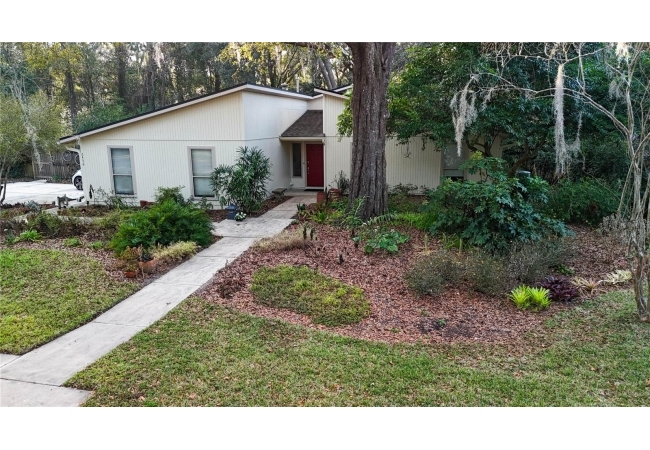 Must see spacious 4 bedroom, 2 bathroom move-in ready home with vaulted ceilings on over-sized lot in highly desirable Rock Creek neighborhood; enjoy many energy efficient upgrades, fenced back yard, 5 kW solar system with secure power supply; engineered commercial-grade maple flooring, tiled kitchen and bathrooms (no carpet); 2-car garage equipped with two EV chargers; covered rear porch and well-maintained landscaping includes banana trees in mature tree canopy; Premium community amenities include new pickleball courts, tennis courts, swimming pool, neighborhood playground and more; Convenient to shopping, restaurants, schools, parks, UF, Santa Fe, and amenities; Don’t miss your opportunity to live in one of Gainesville’s premier neighborhoods.