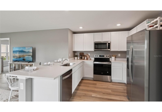 Under Construction. Experience a harmonious blend of comfort and functionality in this one-story home, meticulously designed to optimize living space through an open-concept layout. The kitchen is equipped for both efficiency and style with all stainless-steel appliances, including a range, built-in dishwasher, and microwave. The laundry room comes equipped with a washer and dryer hook up. The primary bedroom features an ensuite bathroom and walk-in closet. The Allex is complete with a state-of-the-art smart home system. This single-story haven ensures convenience and accessibility, providing a perfect balance of open space and purposeful design for a truly enjoyable living experience. Pictures, photographs, colors, features, and sizes are for illustration purposes only and will vary from the homes as built. Home and community information including pricing, included features, terms, availability and amenities are subject to change and prior sale at any time without notice or obligation. CRC057592.
