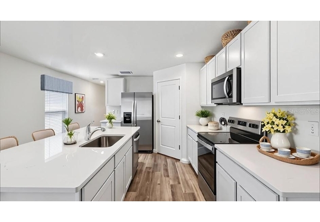 Under Construction. Welcome inside the Harper, a single-story, four bedroom and two bathroom home, offering 1,665 square feet of luxurious living space. The open-concept layout seamlessly connects the living room, dining area, and kitchen, creating a perfect space for entertaining with family and friends. With ample room for seating, it's an ideal spot for relaxation and gatherings. The kitchen features quartz countertops, stainless steel appliances, and a kitchen island. Whether you're preparing a casual meal or hosting a formal dinner, this kitchen is well-equipped to meet your culinary needs. The primary suite features a private ensuite bathroom with a double vanity and spacious walk-in closet. The remaining three bedrooms share a bathroom, and have carpeted floors and closets in each room. The Harper also includes a two-car garage and dedicated laundry room with a washer and dryer hook up. The Harper is complete with a state-of-the-art smart home system. Pictures, photographs, colors, features, and sizes are for illustration purposes only and will vary from the homes as built. Home and community information including pricing, included features, terms, availability and amenities are subject to change and prior sale at any time without notice or obligation. CRC057592