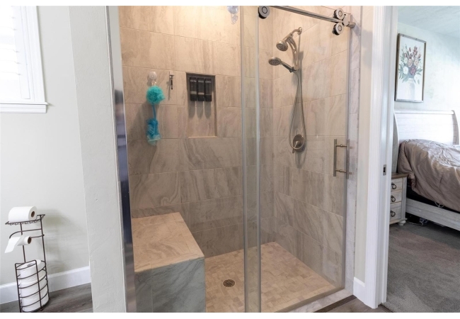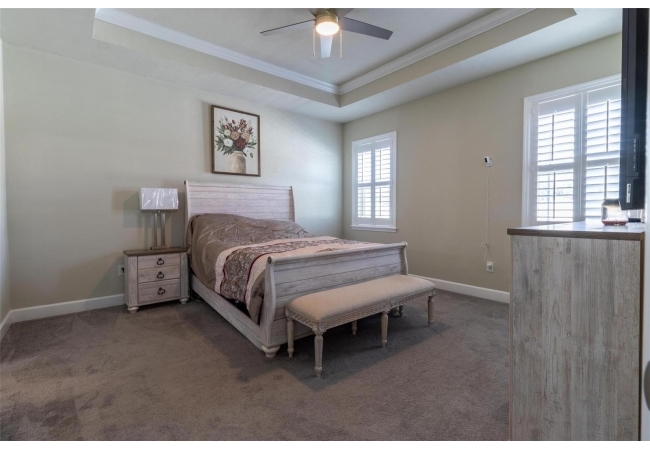 Suite Dreams: A primary retreat with tray ceilings and a spa-style shower featuring a built-in bench. Self-care Sunday just got an upgrade!