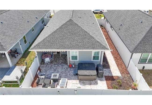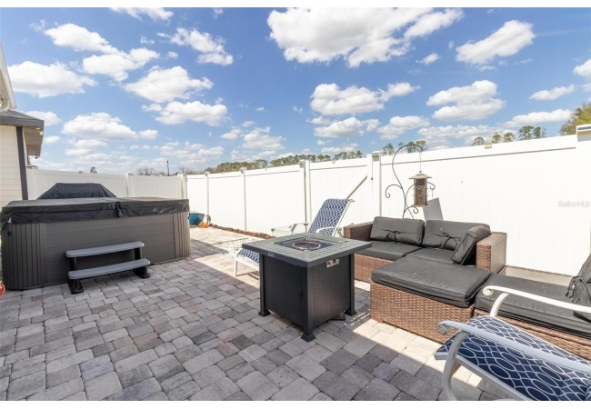 Backyard Bliss: This isn't just a yard; it's a destination. Covered paver patio, expandable awning, a cozy firepit, and... wait for it... a HOT TUB.