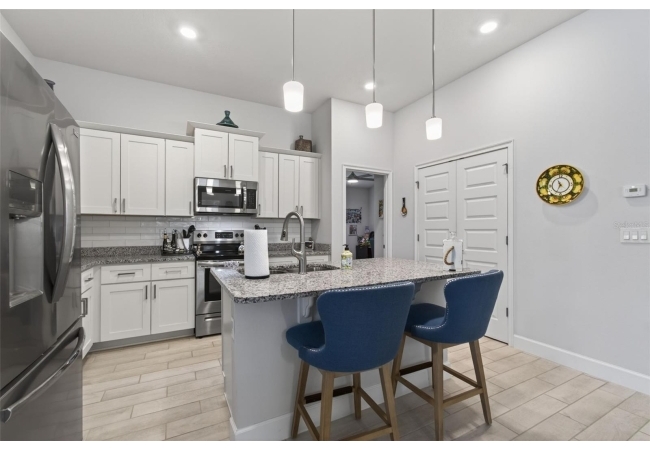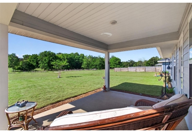 Country Way South – JUST LIKE NEW – is not an exaggeration! This elegant 4 bedroom, 2 bath home is only 3 years old and the owner has not lived here full-time so it has been very lightly used and is in truly pristine, move-in condition. It is elegantly appointed with carefully selected upgrades including plank tile flooring, plush carpeted bedrooms, granite countertops, stainless steel appliances, modern fixtures, LED lighting, plantation shutters and brushed nickel faucets. The kitchen with island breakfast bar and pantry is open to the dining and living areas, while a welcoming foyer leads to two guest bedrooms and a full bath. The primary suite is a true retreat, featuring a walk-in closet, dedicated shoe closet, and a luxurious en-suite with dual sinks, granite vanity, large, walk-in shower, and linen closet. a laundry room with washer and dryer, and a two-car garage. Enjoy Florida living year-round on the large covered lanai. This is a premium lot backing to a common, open area so there will be no homes directly behind this lot. This beautiful home comes fully equipped with all appliances included. Newberry is one of Alachua County’s most popular towns with shopping, dining and entertainment venues all close by.