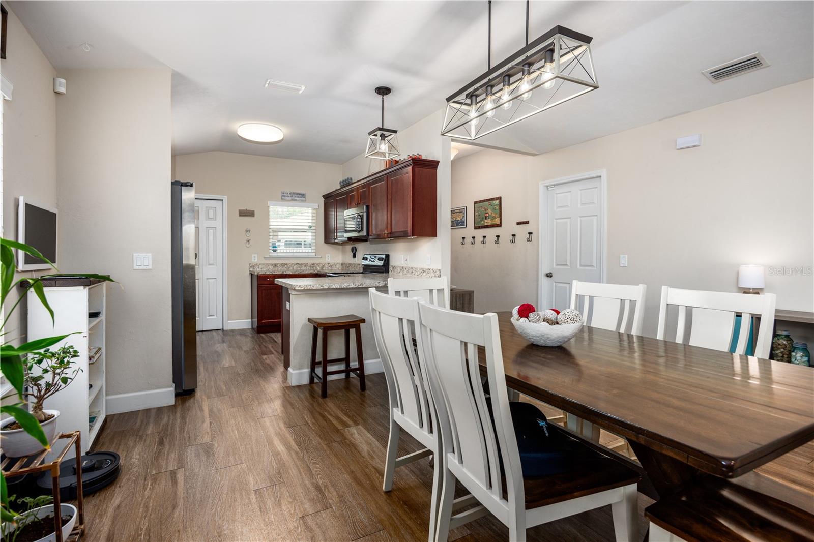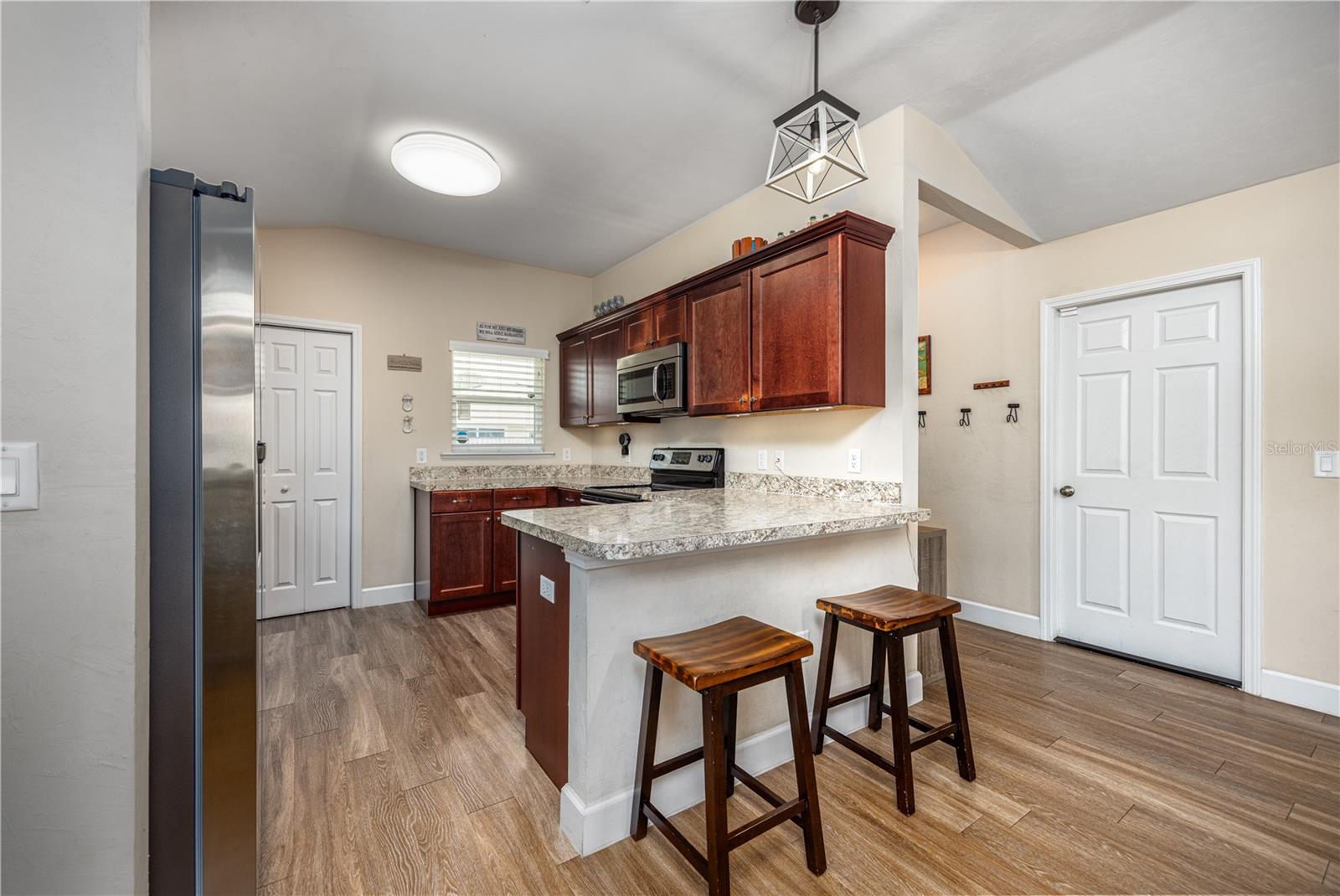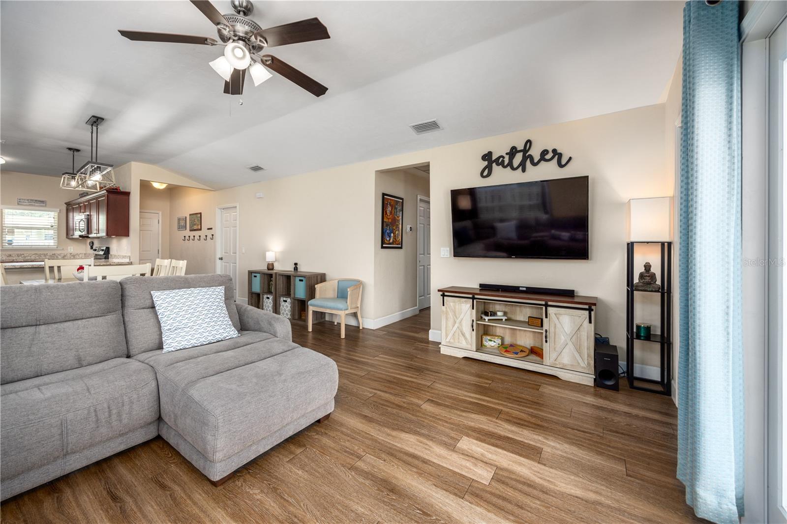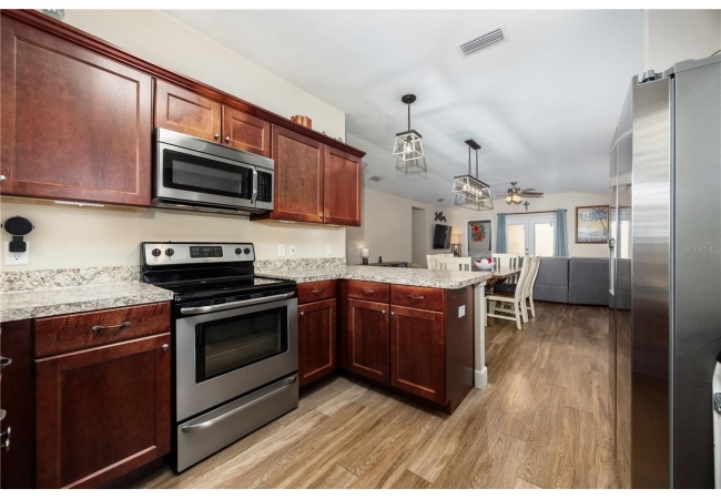 Featuring a spacious open floorplan, this smart home is thoughtfully updated for modern living. The large kitchen boasts stainless steel appliances, a breakfast bar, and plenty of room to cook and entertain. The split floorplan offers privacy, with a generously sized primary suite that includes an en suite bathroom. All bedrooms are comfortably sized, and the oversized laundry room includes a washer and dryer.