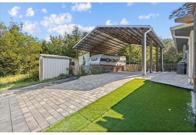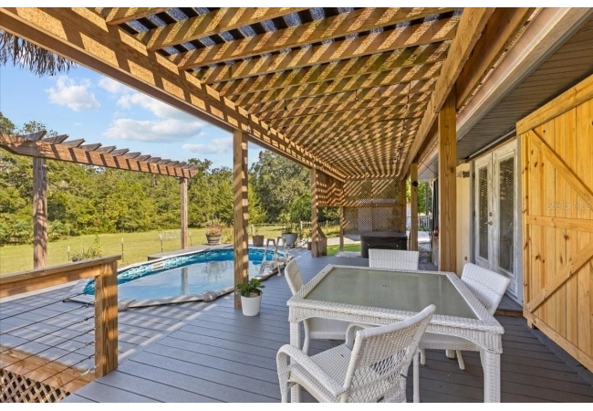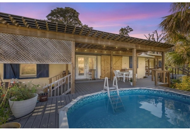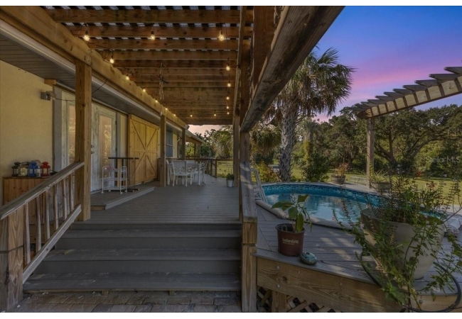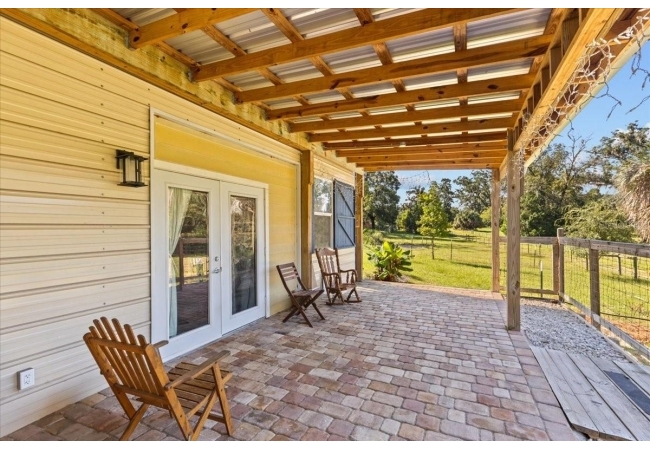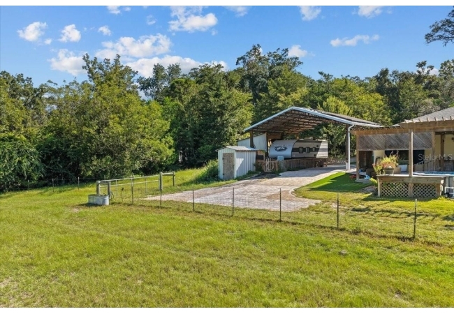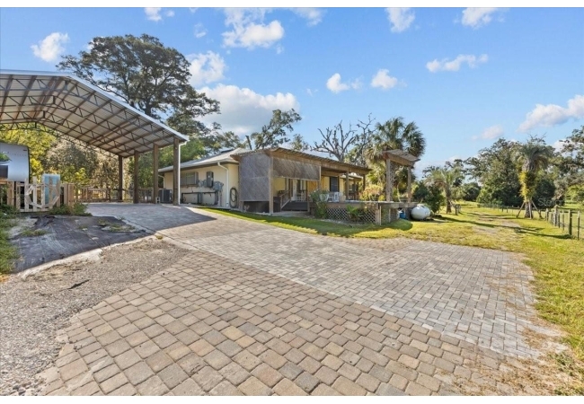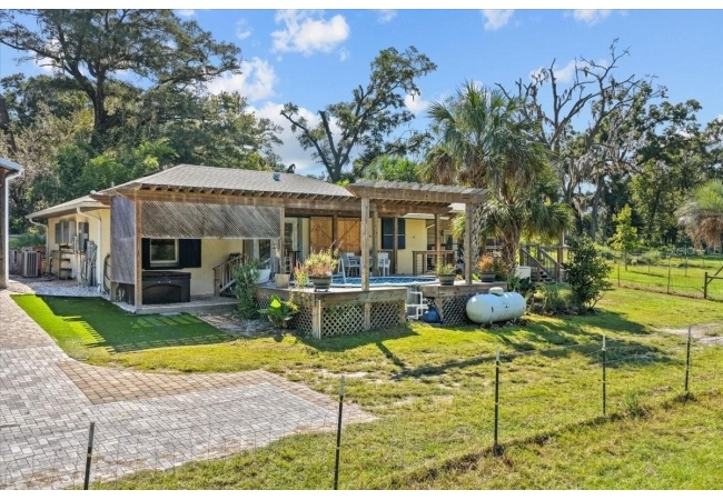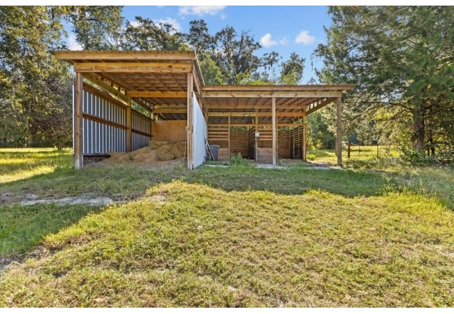Horse lover’s dream with in-law suite in High Springs on 8.25 acres with approx. 7.5 acres being pasture. This property blends the best of Florida country living with modern conveniences and is ready for horses, hobbies, and outdoor enjoyment. Enjoy living in the main house overlooking the horse pasture and above ground pool as you relax on the pool deck. The enclosed 420 sq ft garage adds flexible living space for in-law, family, friends, or guest. They will enjoy full kitchen amenities, living room, full bathroom and large closet. The main house features include concrete counters, induction cooktop, tray ceilings, gas fireplace, sunroom with storm door, gutters, numbered hurricane shutters, and a Generac whole-house generator with dual 200-amp panels. Outside you’ll find a koi pond with waterfall and gazebo, peach tree, and pool. Equestrian amenities include a 36×24 pole barn with water, power & solar, plus a 24×36 horse barn with 2 stalls, climate-controlled tack room, and covered hay storage. Shed with washer/dryer, pump house, and solar system (panels will be paid off at closing). The fully equipped RV storage includes electric hookup, water and sewer connection. This dream property come true is ready for horses & country living! Don’t miss this unique opportunity to own an equestrian-friendly property with room to roam, just minutes from High Springs conveniences!