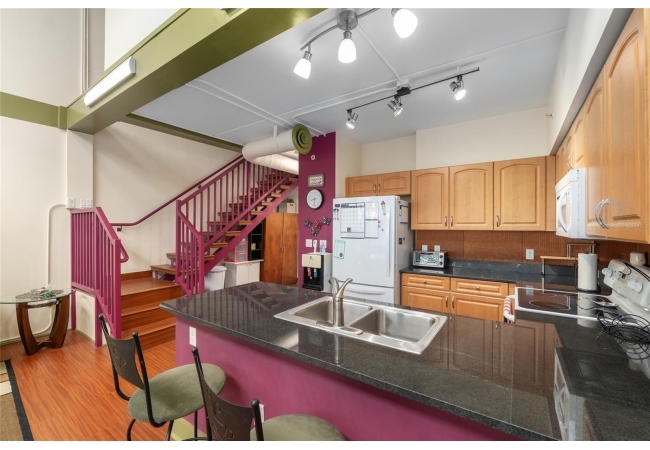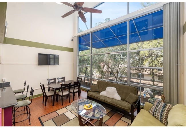 Upper floor loft-style condo close to the University of Florida, UF Health Shands Hospital, and shopping! Renovated and move-in ready, this two-story condo offers 2 bedrooms/2.5 bathrooms plus a spacious upstairs loft/bonus room. The unit features tile and laminate wood flooring throughout - no carpet! The expansive living room showcases floor-to-ceiling windows that bring in abundant natural light along with an open-concept living and dining area. The well-appointed kitchen includes granite countertops, a pantry, and a breakfast bar with pendant lighting that opens to the living space. Both bedrooms are generously sized and each has its own bathroom. The upstairs loft offers a versatile enclosed bonus space overlooking the living area, ideal for a home office, media room, fitness room, or guest area. Thoughtful updates and attention to detail throughout give this condo a warm, refined feel that lives more like a home than a typical condo. The unit has also been custom painted and includes an indoor washer/dryer and vertical blinds. Being sold furnished, this condo is truly move-in ready. Conveniently located near bus routes to UF and UF Health Shands Hospital, this distinctive loft-style condo offers a rare combination of space, style, and location!