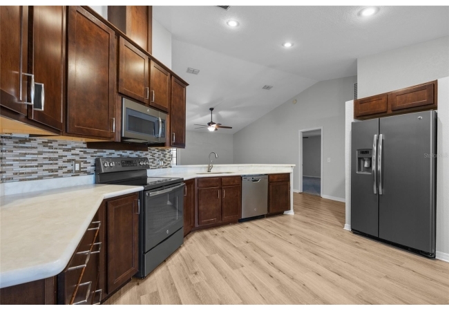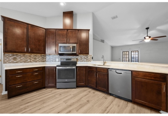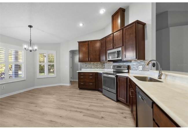 Welcome home to this brick beauty perfectly positioned on a coveted corner lot in the growing community of Newberry, located in the Country Way neighborhood. From the moment you arrive, you’ll appreciate the extra privacy that comes with a corner homesite, along with the space to truly live and breathe outside. Step inside and you’re greeted by fresh new paint throughout and an airy open floor plan that feels bright, welcoming, and easy to enjoy day to day. The heart of the home is the large updated kitchen, designed for both everyday meals and entertaining, featuring stainless steel appliances and plenty of room to gather around. Luxury vinyl plank flooring flows through the main living areas, office, and guest bedrooms, giving the home a modern, cohesive look while staying low maintenance for real life. Beautiful shutters adorn the windows throughout. Every bedroom is generously sized, creating the kind of comfort and flexibility today’s buyers are looking for whether you need space to spread out, host guests, or create an additional work or hobby zone. In addition to the 3 bedrooms, this home features a dedicated office that could easily be used as a 4th bedroom. This corner lot truly delivers with a huge fenced backyard that feels private and peaceful, perfect for pets, play, gardening, or simply relaxing. Enjoy mornings in the Florida room, weekend cookouts on the exterior patio, and evenings under the stars in your own outdoor retreat. No worries on getting insurance or having to do immediate system updates with 2017 HVAC, 2017 roof, and 2021 water heater. Location is everything, and this one is a win. You’re right next to schools, close to the new Publix, and just minutes from the bustling Country Way Town Center, a charming community hub filled with shops, restaurants, fitness options, and local events. From grabbing a bite at the restaurants, getting a workout in at the gym, picking up dinner from the beef and seafood market, or heading out for community fun, this neighborhood offers the kind of lifestyle that makes Newberry so special. If you’ve been waiting for a move in ready home with brick construction, modern updates, a spacious layout, and an outdoor space that truly sets it apart, this is the one.