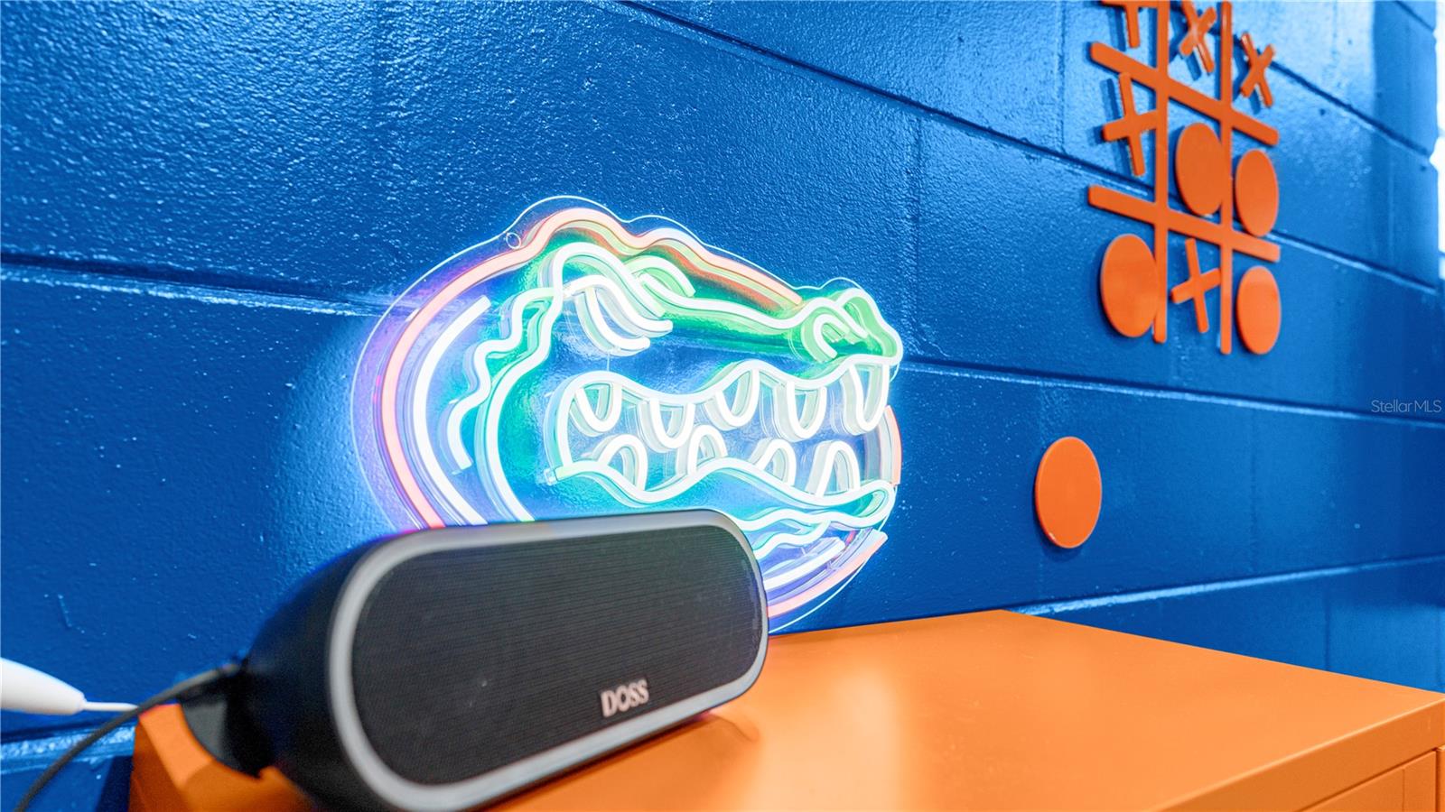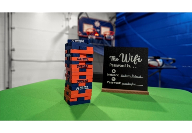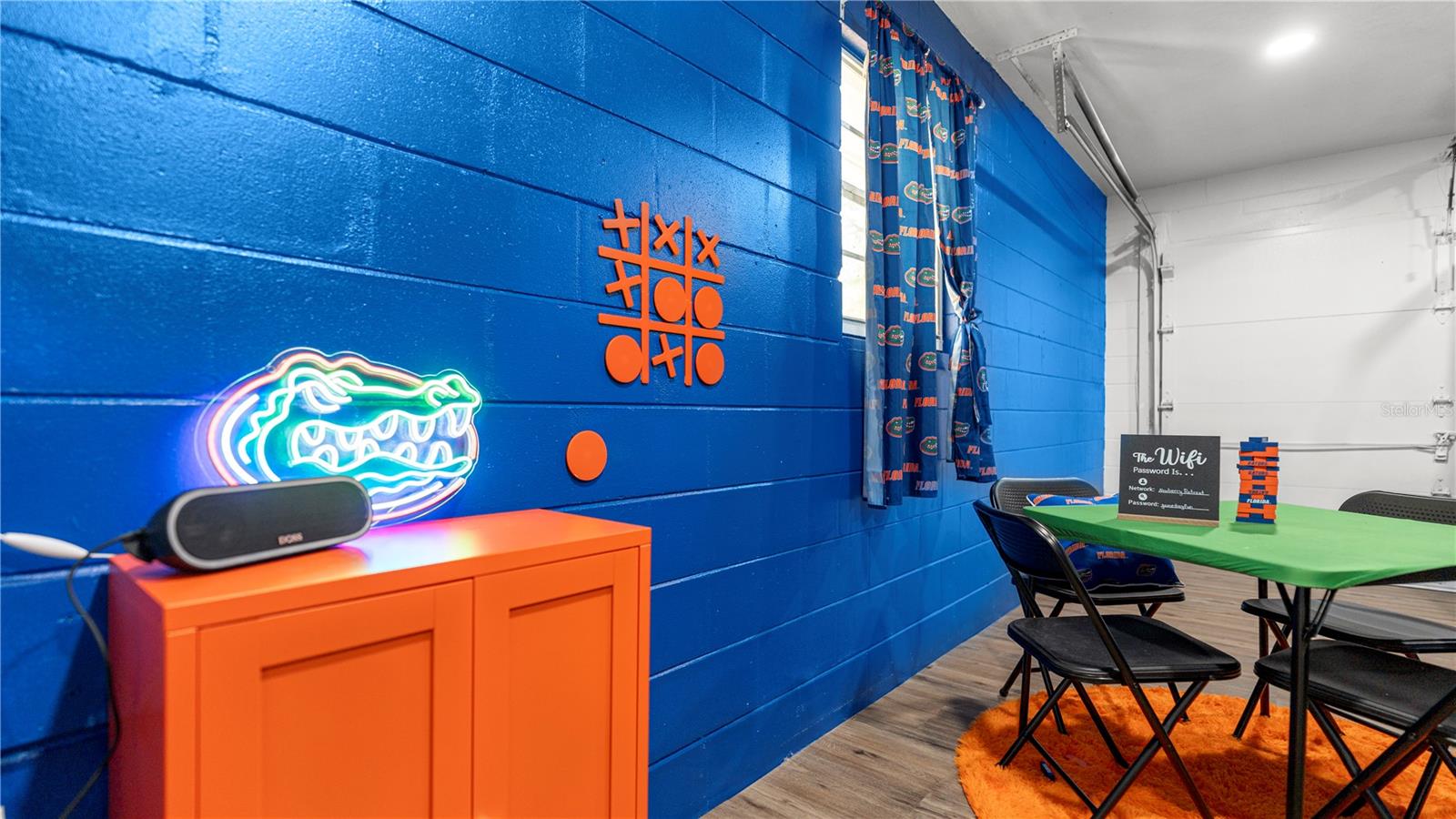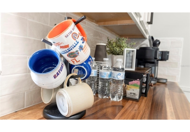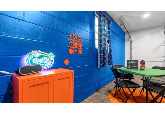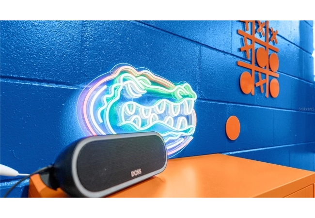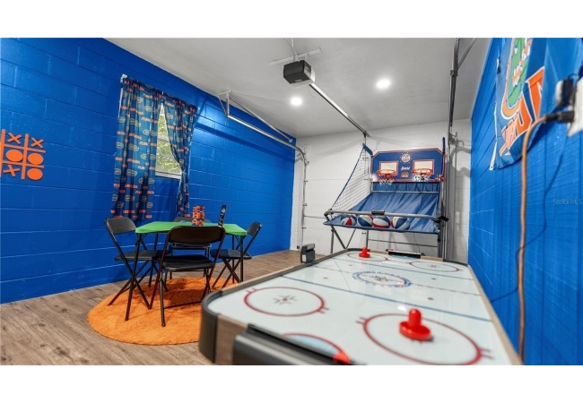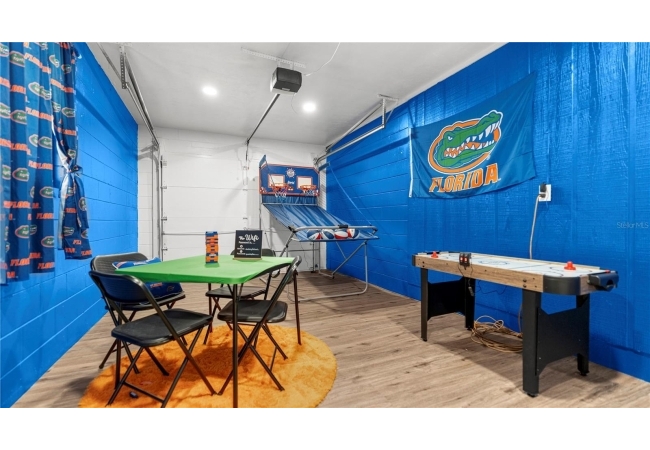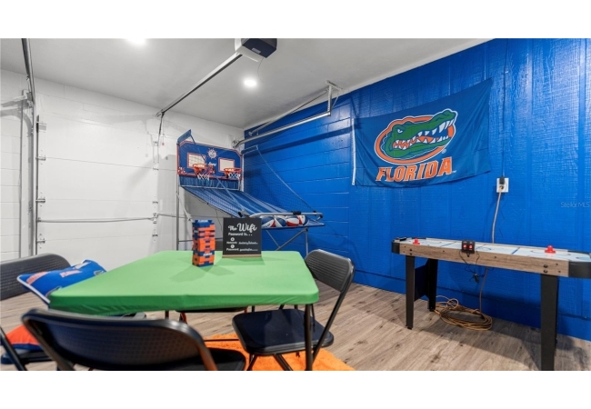 Inside, you’ll find brand-new luxury vinyl plank flooring, a new HVAC system installed January 2025, and a custom kitchen featuring updated cabinetry, butcher block countertops, and all new appliances (July 2024). The bathrooms have been refreshed with modern finishes, and the converted garage now serves as a heated and cooled Gator-themed game room that works perfectly as flexible living space.