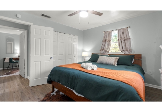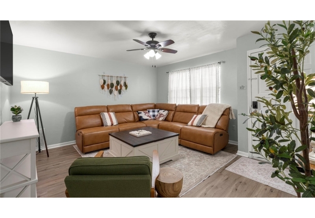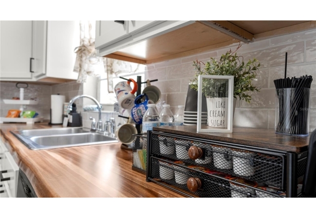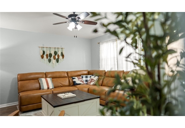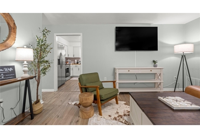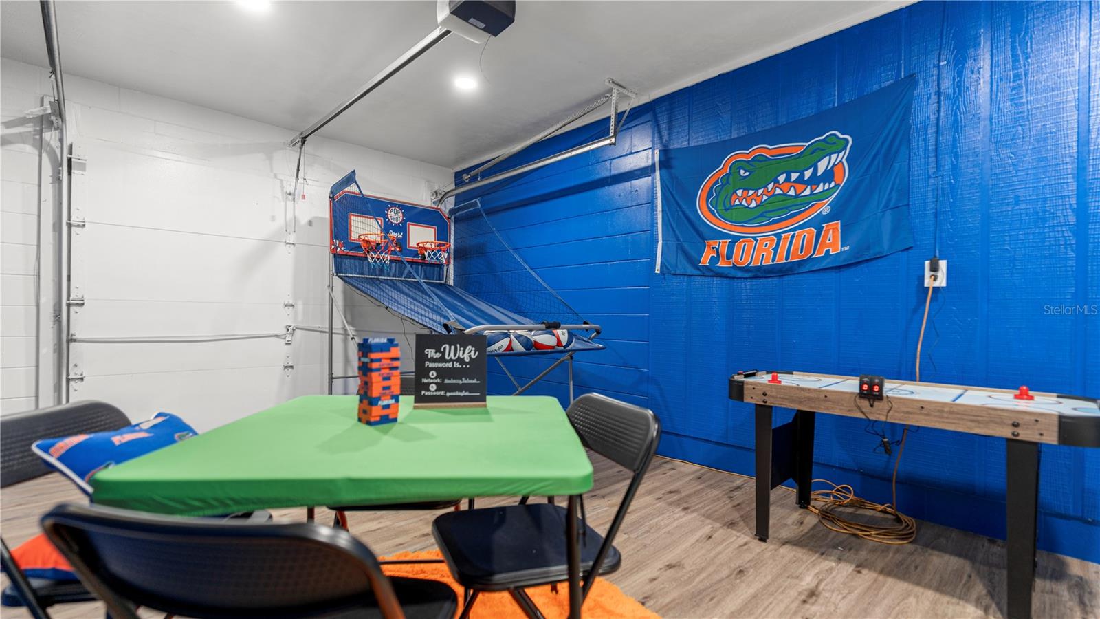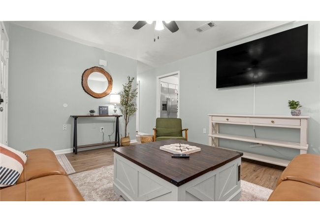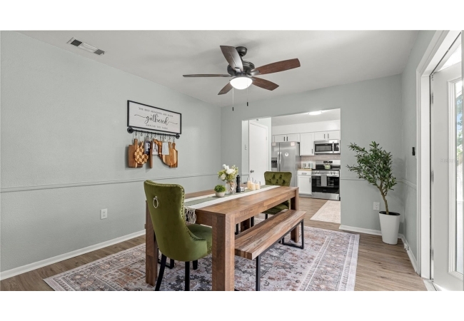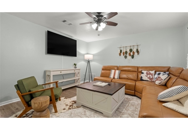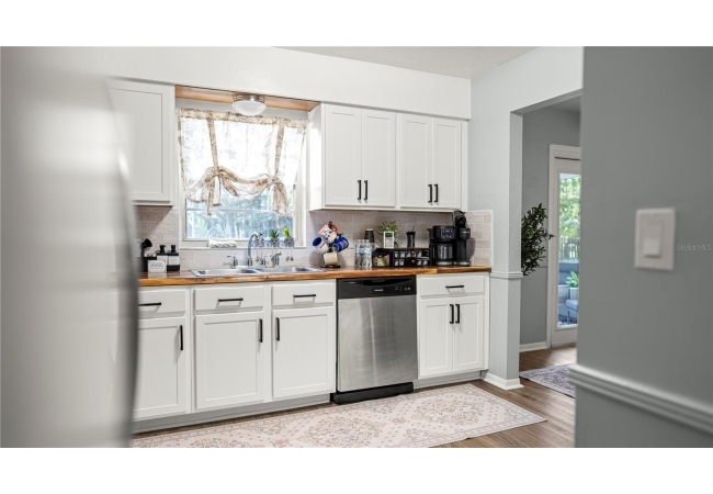 Inside, you’ll find brand-new luxury vinyl plank flooring, a new HVAC system installed January 2025, and a custom kitchen featuring updated cabinetry, butcher block countertops, and all new appliances (July 2024). The bathrooms have been refreshed with modern finishes, and the converted garage now serves as a heated and cooled Gator-themed game room that works perfectly as flexible living space.