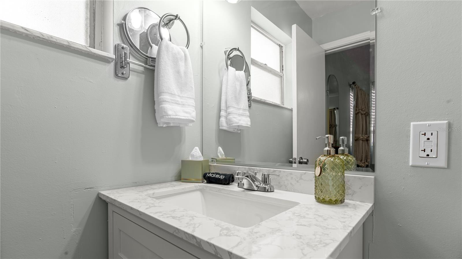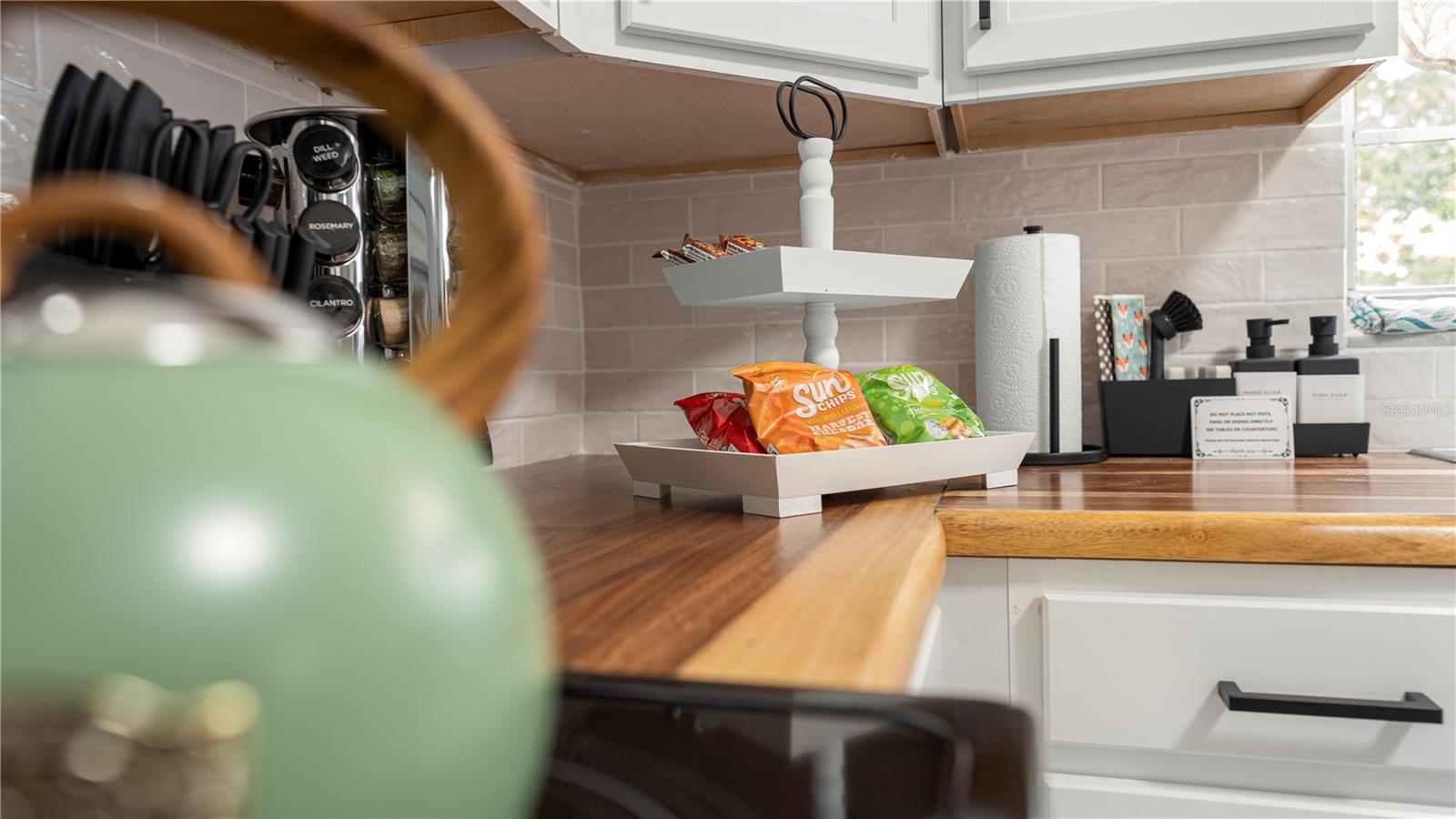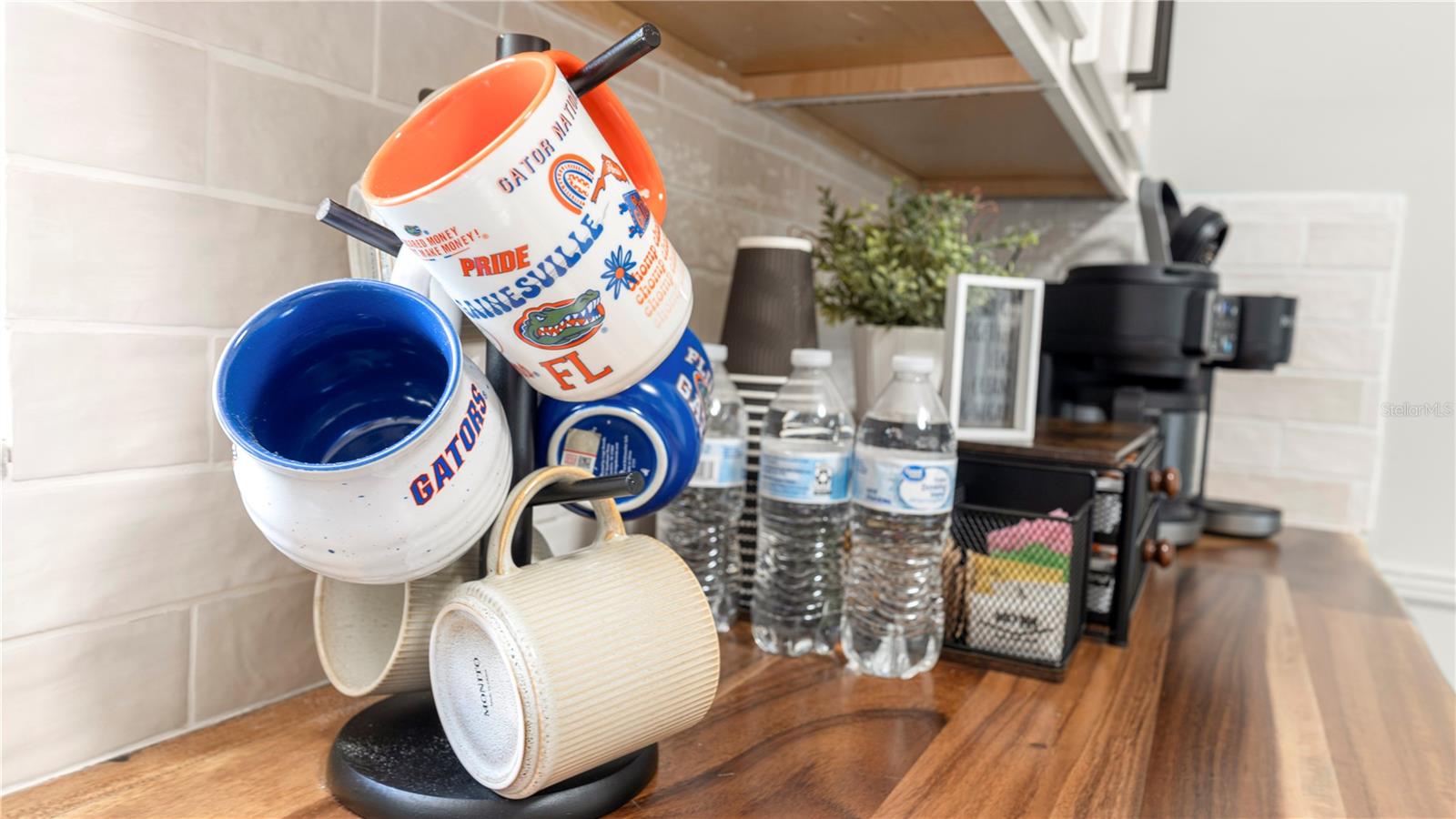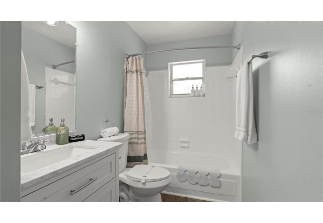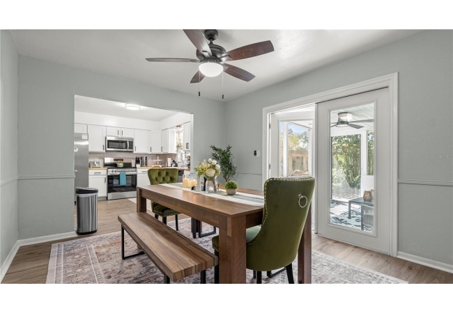Inside, you’ll find brand-new luxury vinyl plank flooring, a new HVAC system installed January 2025, and a custom kitchen featuring updated cabinetry, butcher block countertops, and all new appliances (July 2024). The bathrooms have been refreshed with modern finishes, and the converted garage now serves as a heated and cooled Gator-themed game room that works perfectly as flexible living space.