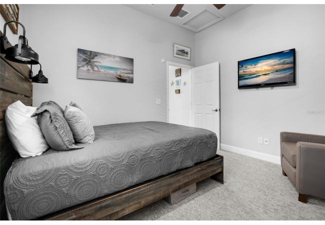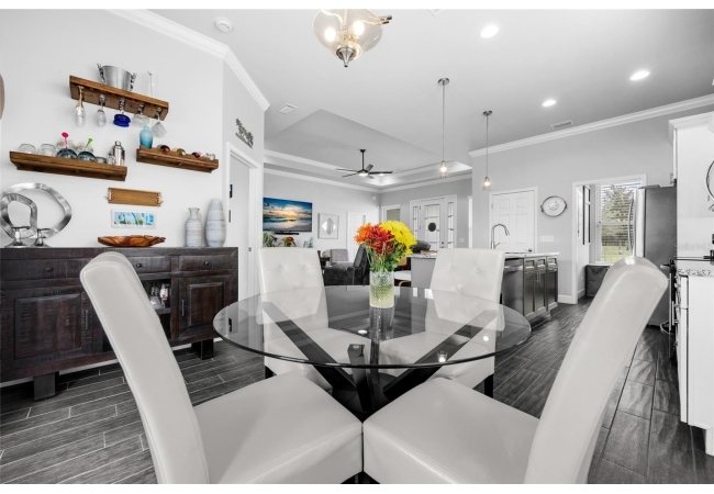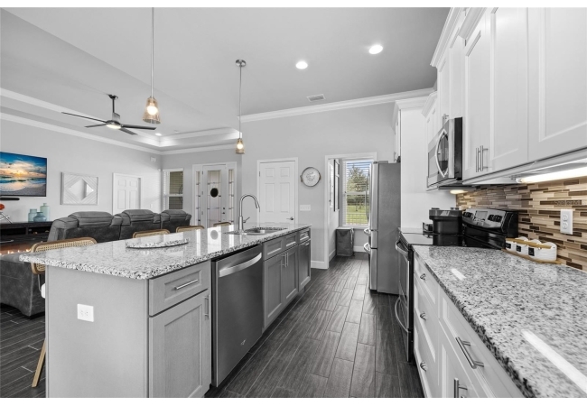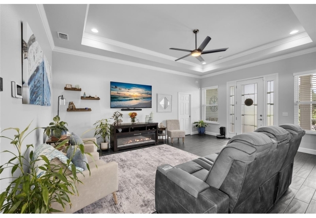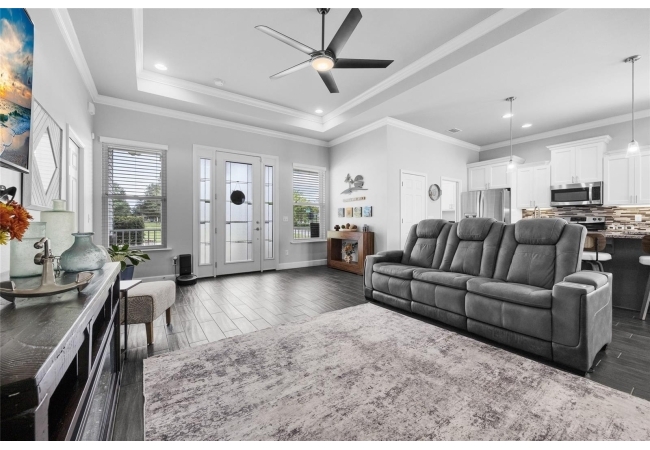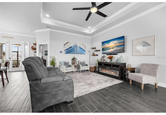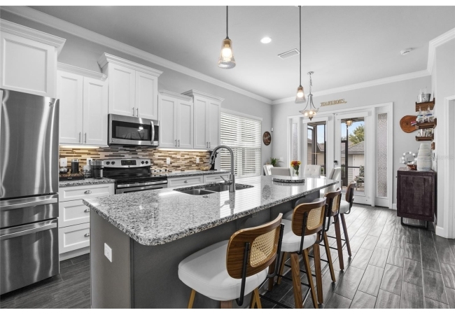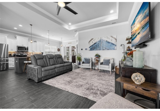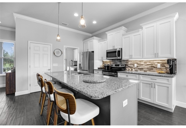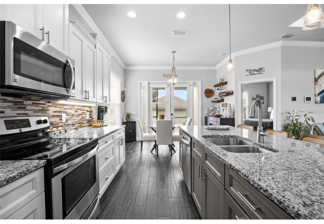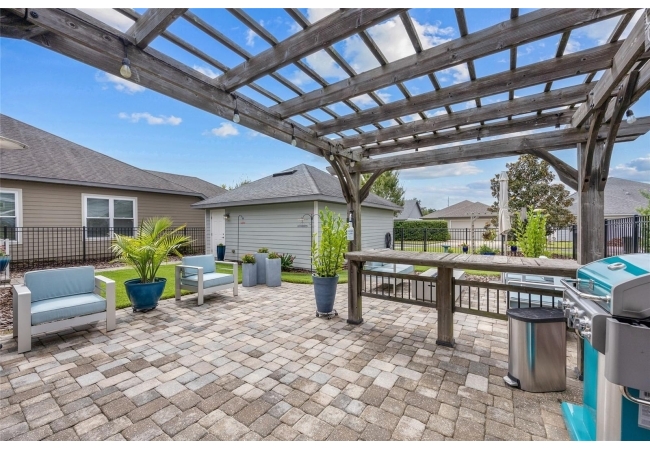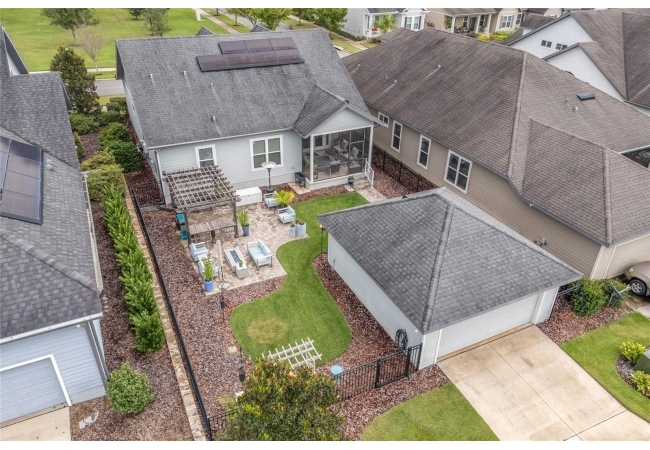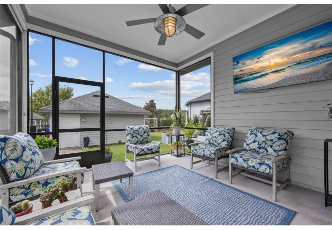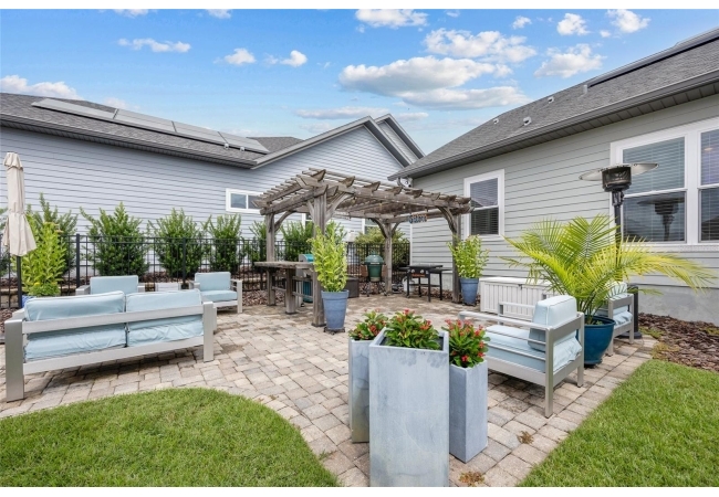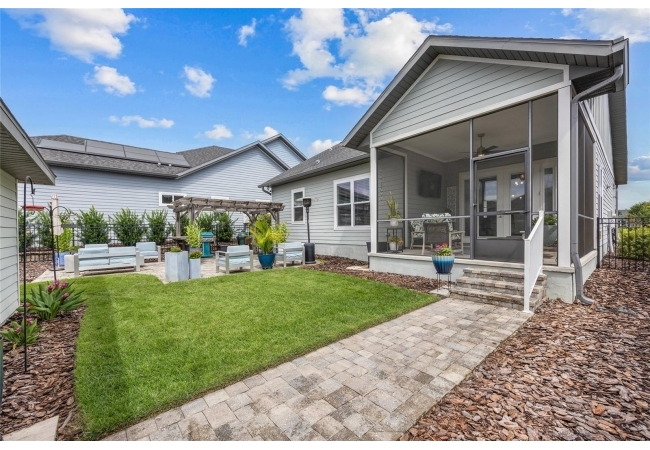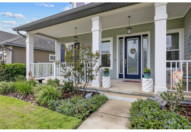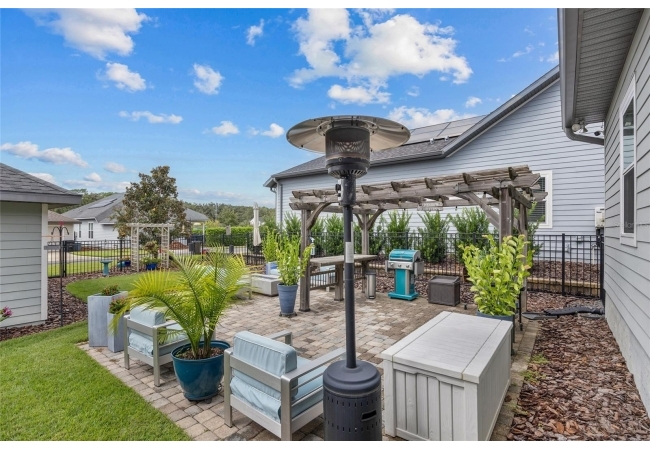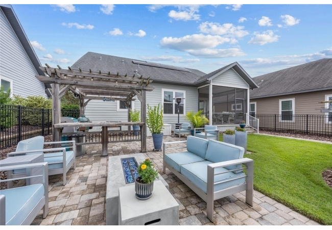 Prepare to fall in love with this meticulously updated 3-bed, 2-bath Tommy Williams energy-efficient solar home, offering a seamless blend of contemporary style, move-in ready comfort, and Southern charm in the amenity-rich community of Oakmont! Ideally situated directly across from gorgeous green space, the home offers impeccable landscaping and a delightful covered front porch that draws you in with an irresistible invitation to slow down, relax, and take in the tranquil scene. Inside, the great room’s sunlit walls of natural tones harmonize with wood plank tile flooring and an elegant tray ceiling. Preparing meals in the state-of-the-art eat-in kitchen is a breeze with soft-close maple cabinets and drawers, granite countertops, tiled backsplash, stainless steel appliances, walk-in pantry with granite shelving and soft-close cabinets, and spacious island with seating. A split bedroom plan separates the primary suite from the two guest bedrooms and guest bath with granite countertop and beautifully tiled tub/shower combo with two overhead windows creating a spa-like atmosphere. The refined primary suite includes a tray ceiling and luxurious ensuite bath with double vanities, granite countertop, European-entry walk-in shower, water closet with pocket door, and sizable walk-in closet with custom shelving and soft-close drawers. Garden doors off the dining area open onto an extended screened porch, complete with a stylish ceiling fan and privacy shades. From the porch, patio pavers lead to a 2-car garage, which includes an epoxy coated floor, custom metal cabinets, and extra refrigerator. Across the lawn, a patio with pergola offers friends and family a lovely, large space for alfresco dining. This immaculate, fenced yard also features a sleek fire pit, creating a mesmerizing focal point perfect for relaxation. In the evening, the entire area turns into a moonlit oasis, setting the scene for enviable parties. But the allure extends beyond the home itself; the property resides in a resort-style community that offers an unparalleled lifestyle with lush landscapes, lakes, and state-of-the-art amenities including a luxurious clubhouse, a modern fitness center, and an expansive zero-entry pool complete with lap lanes and a shallow splash area. For the active resident, there are tennis courts, a basketball court, a playground, and even an amphitheater. Nature lovers will delight in the 45-acre protected habitat conservation area featuring miles of winding walking paths. Oakmont's unique location strikes the perfect balance, offering peaceful countryside living while being just minutes from I-75, the University of Florida, premier shopping, hospitals, and diverse restaurants. If you are ready for this elevated living experience, schedule your private tour today!