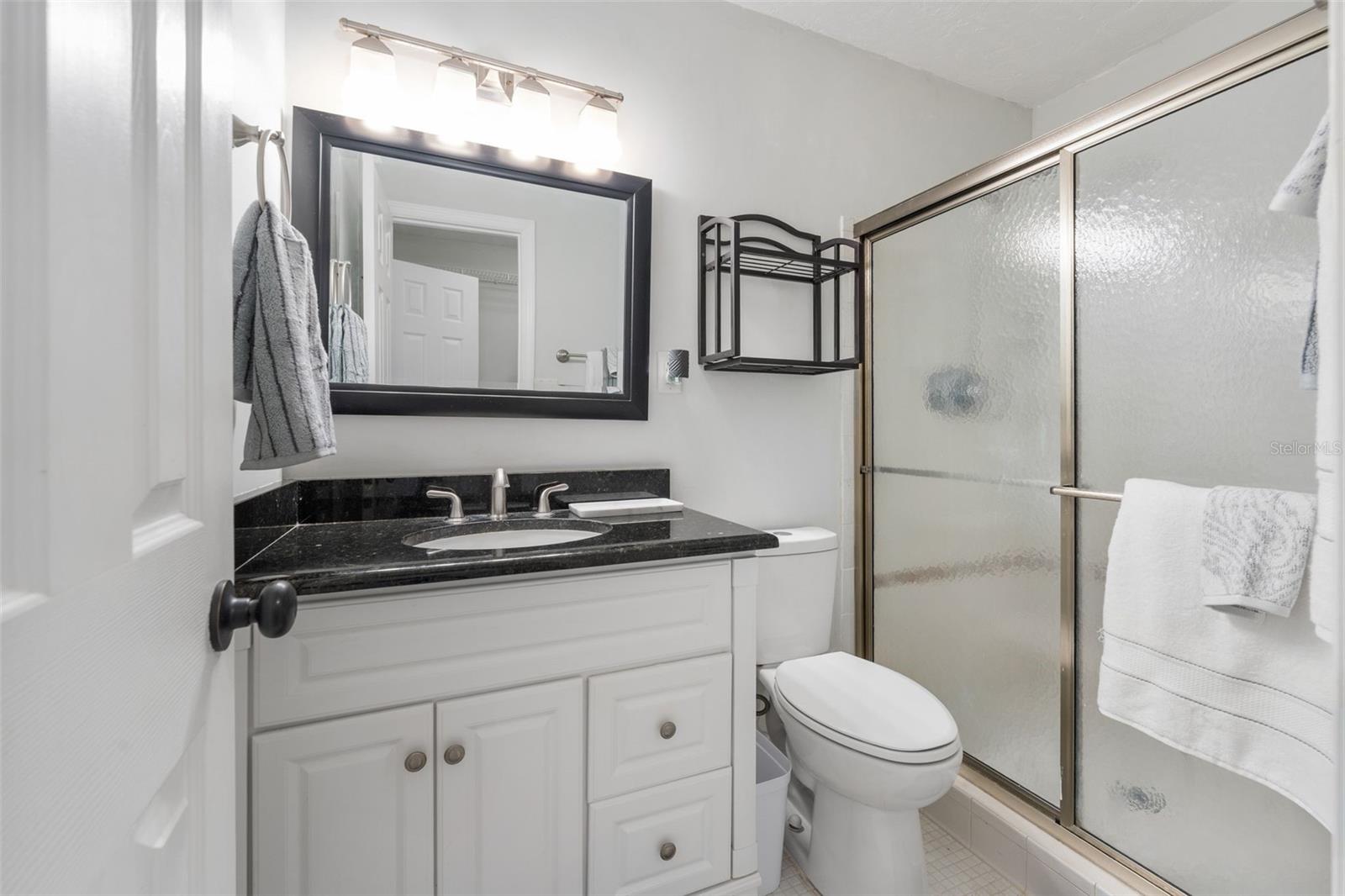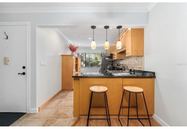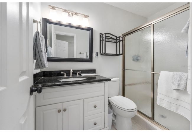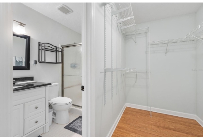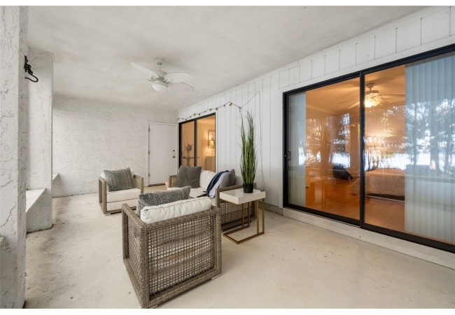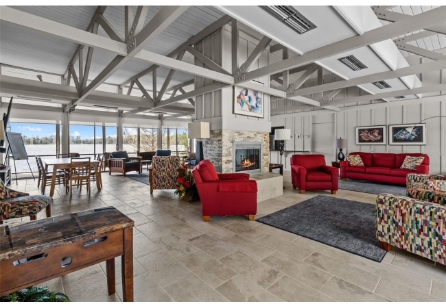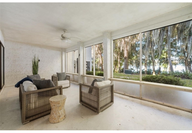 Enjoy a sunset-facing screened porch with breathtaking views of the lake as well as direct access to the pool and common area complete with a propane grill perfect for hosting. Step inside to find granite countertops, a custom pantry system, new HVAC and water heater (2023), plus in-unit laundry with washer and dryer included. The layout features two sliders to the porch — one from the living room, one from the primary suite with a walk-in closet and built-ins.