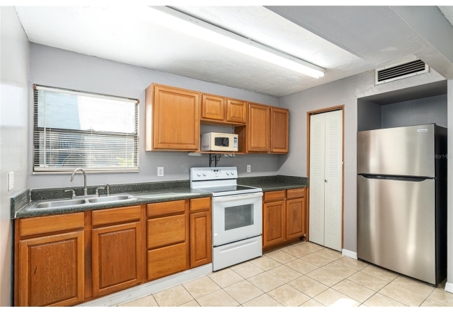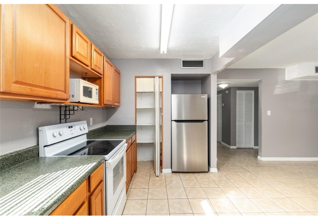 Convenient ground floor unit in the peaceful rear section of Brandywine. Brandywine Condominiums are conveniently located at the southwestern edge of the University of Florida campus and is an excellent option for students, professors, or those looking for convenient access to the UF campus, Shands/UF Health Hospital, or the VA Hospital (located less than 2 miles away). Plenty of shopping, dining and entertainment options with Butler Center and Celebration Point close by. Unit has maintenance free matching ceramic tile throughout. Covered rear porch overlooking common area. Large walk-in storage closet off hallway adjacent to 2nd bedroom. Community includes a clubhouse, community pool, weight room, 2 RTS bus stops, laundromat, game room and basketball court. Utilities included in HOA fee are trash and recycling, high speed fiber optic internet, water and sewer. Peace of mind comes with this unit as the HVAC system is in the process of being replaced and will be brand new with warranty. No tenant residing in the unit like others on the market so it's ready to move in today!