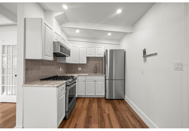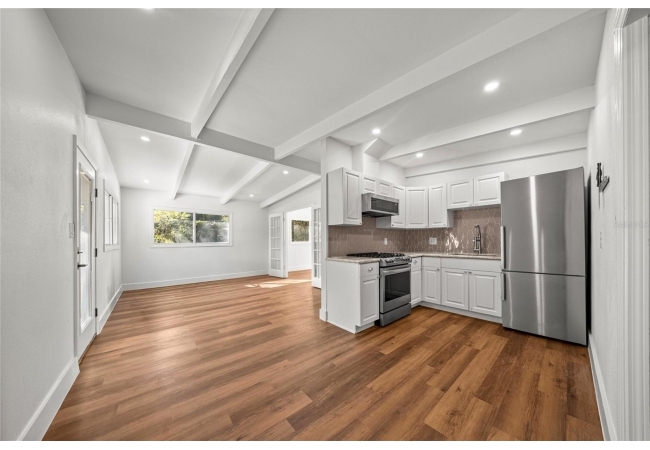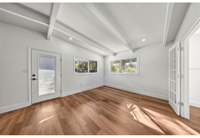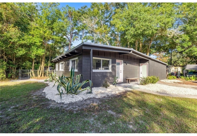 One or more photos have been virtually staged. Completely Updated Ranch in Highland Court Manor. Welcome to this beautifully remodeled 3-bedroom, 1-bath ranch in the established Highland Court Manor neighborhood of Gainesville. Featuring a flexible bonus/den space, this home has been refreshed from top to bottom with new luxury vinyl flooring, recessed lighting, and fresh interior and exterior paint. The kitchen boasts new cabinetry, countertops, and an updated stainless steel-appliance suite (2022), while the bathroom features elegant Carrera marble flooring. Major updates include a new HVAC system (2025), a metal roof (2022), Tyvek composite siding, and updated electrical throughout. Enjoy the spacious backyard with a large outbuilding and a bonus room mini-split—perfect for work or play. Move-in ready and ideally located near colleges, parks, and shopping!
