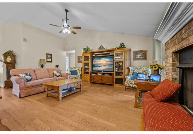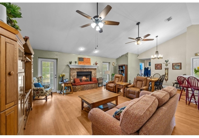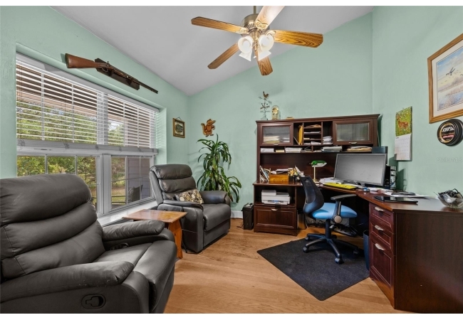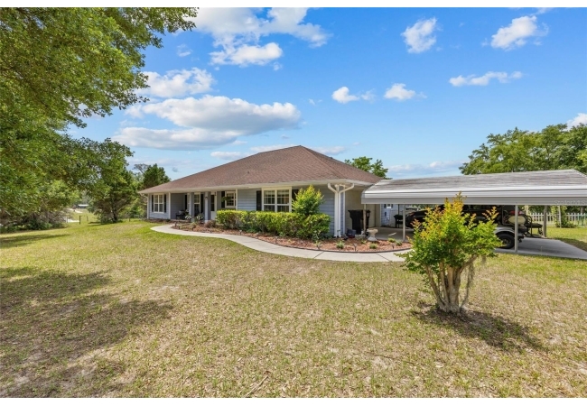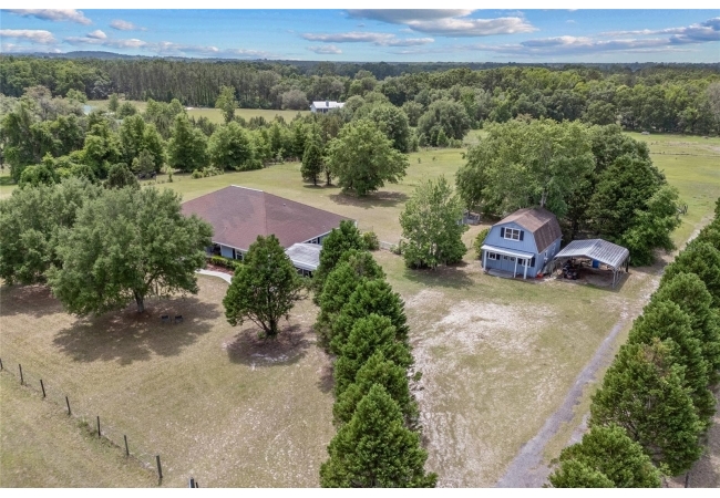 Welcome to your private retreat! This 3-bedroom, 2-bath home + office sits on over 6 beautiful, fully fenced acres with Santa Fe river access, offering the best of peaceful country living just minutes from downtown Alachua and High Springs. Set back off a paved road with a private drive, the home boasts excellent curb appeal, fruit trees, and an adorable front porch that invites you in. Step inside to a bright office filled with natural light, perfect for working from home. The spacious living room features vaulted ceilings, a cozy brick fireplace, and opens to a large screened-in back porch with stunning backyard views—ideal for relaxing or entertaining. The kitchen is a chef’s dream, complete with a large island with seating, ample counter space, and a big window over the sink that overlooks the front yard. The kitchen flows seamlessly into the generous dining area. A split floor plan ensures privacy, with a roomy master suite offering tray ceilings, direct access to the screened porch, and a luxurious en suite bath with dual sinks, abundant storage, and a jacuzzi tub. Additional features include a 2-car garage, a detached matching shed with power—perfect for hobbies or a workshop—plus two separate carports to store all your vehicles, boats, or toys. All of this is conveniently located near I-75, top colleges, hospitals, and North Florida’s famous rivers and springs. This property combines comfort, space, and natural beauty—schedule your showing today!