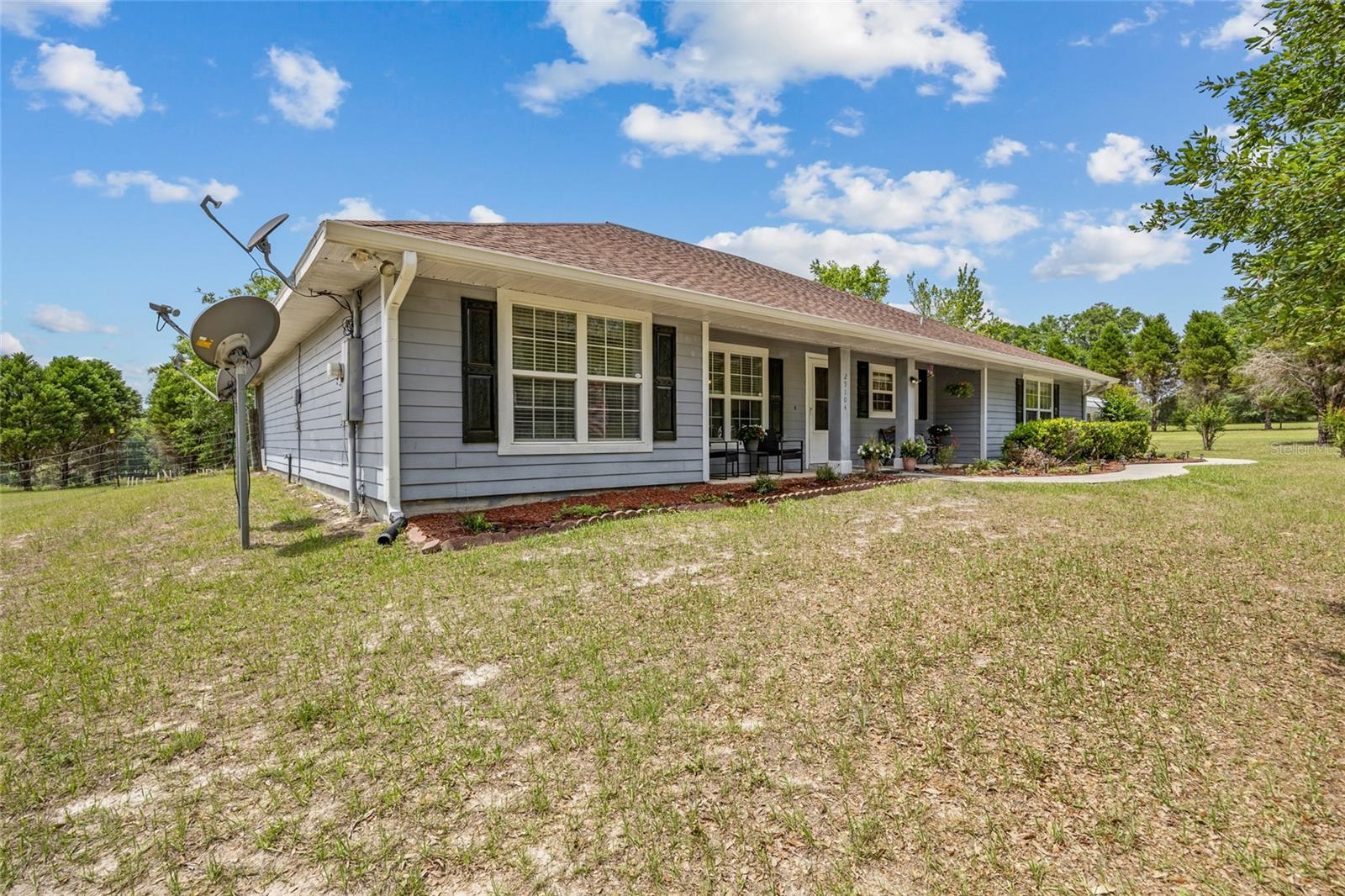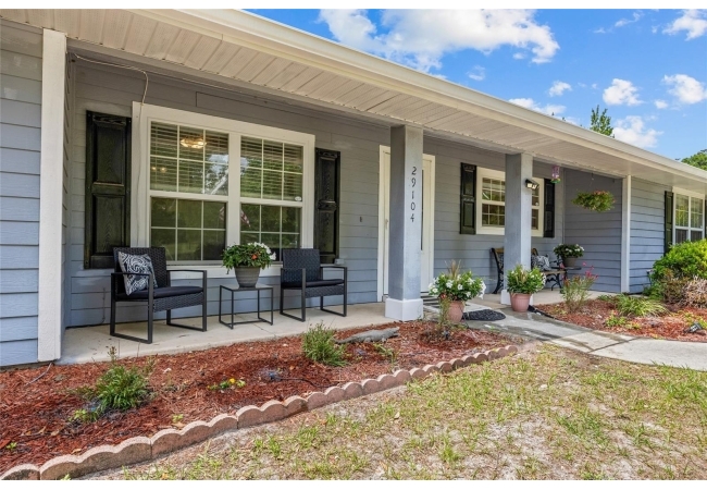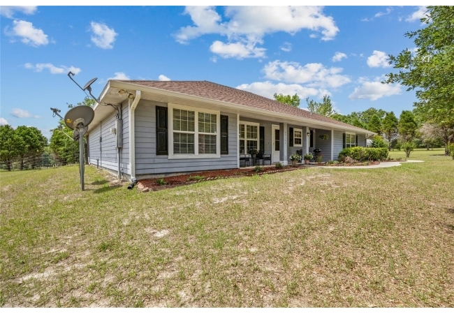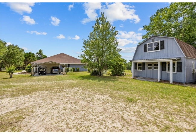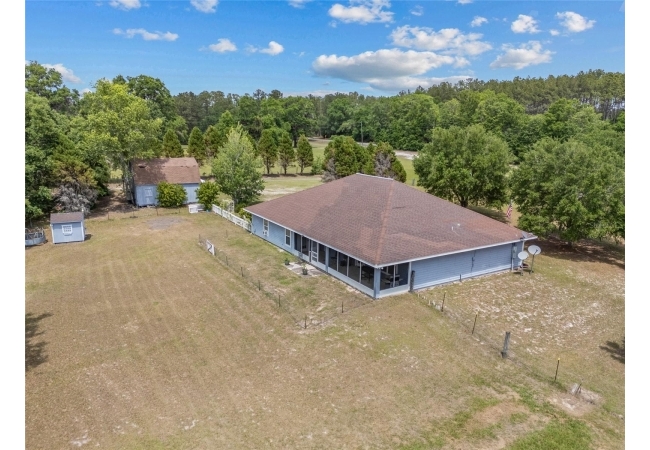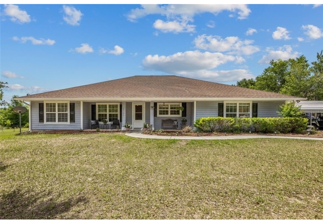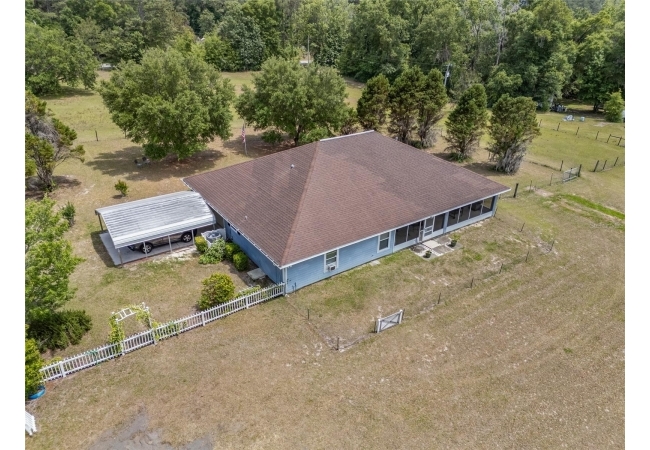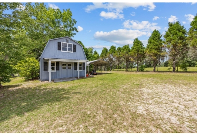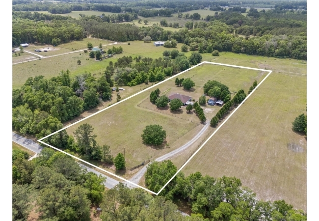 Welcome to your private retreat! This 3-bedroom, 2-bath home + office sits on over 6 beautiful, fully fenced acres with Santa Fe river access, offering the best of peaceful country living just minutes from downtown Alachua and High Springs. Set back off a paved road with a private drive, the home boasts excellent curb appeal, fruit trees, and an adorable front porch that invites you in. Step inside to a bright office filled with natural light, perfect for working from home. The spacious living room features vaulted ceilings, a cozy brick fireplace, and opens to a large screened-in back porch with stunning backyard views—ideal for relaxing or entertaining. The kitchen is a chef’s dream, complete with a large island with seating, ample counter space, and a big window over the sink that overlooks the front yard. The kitchen flows seamlessly into the generous dining area. A split floor plan ensures privacy, with a roomy master suite offering tray ceilings, direct access to the screened porch, and a luxurious en suite bath with dual sinks, abundant storage, and a jacuzzi tub. Additional features include a 2-car garage, a detached matching shed with power—perfect for hobbies or a workshop—plus two separate carports to store all your vehicles, boats, or toys. All of this is conveniently located near I-75, top colleges, hospitals, and North Florida’s famous rivers and springs. This property combines comfort, space, and natural beauty—schedule your showing today!