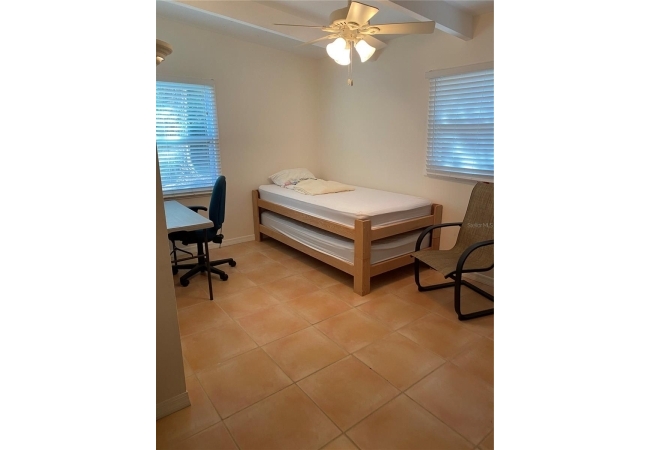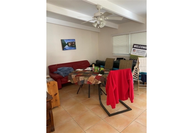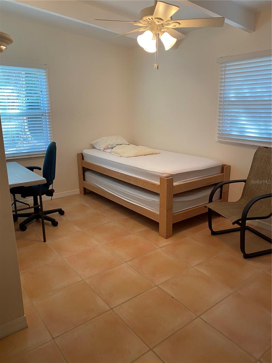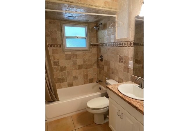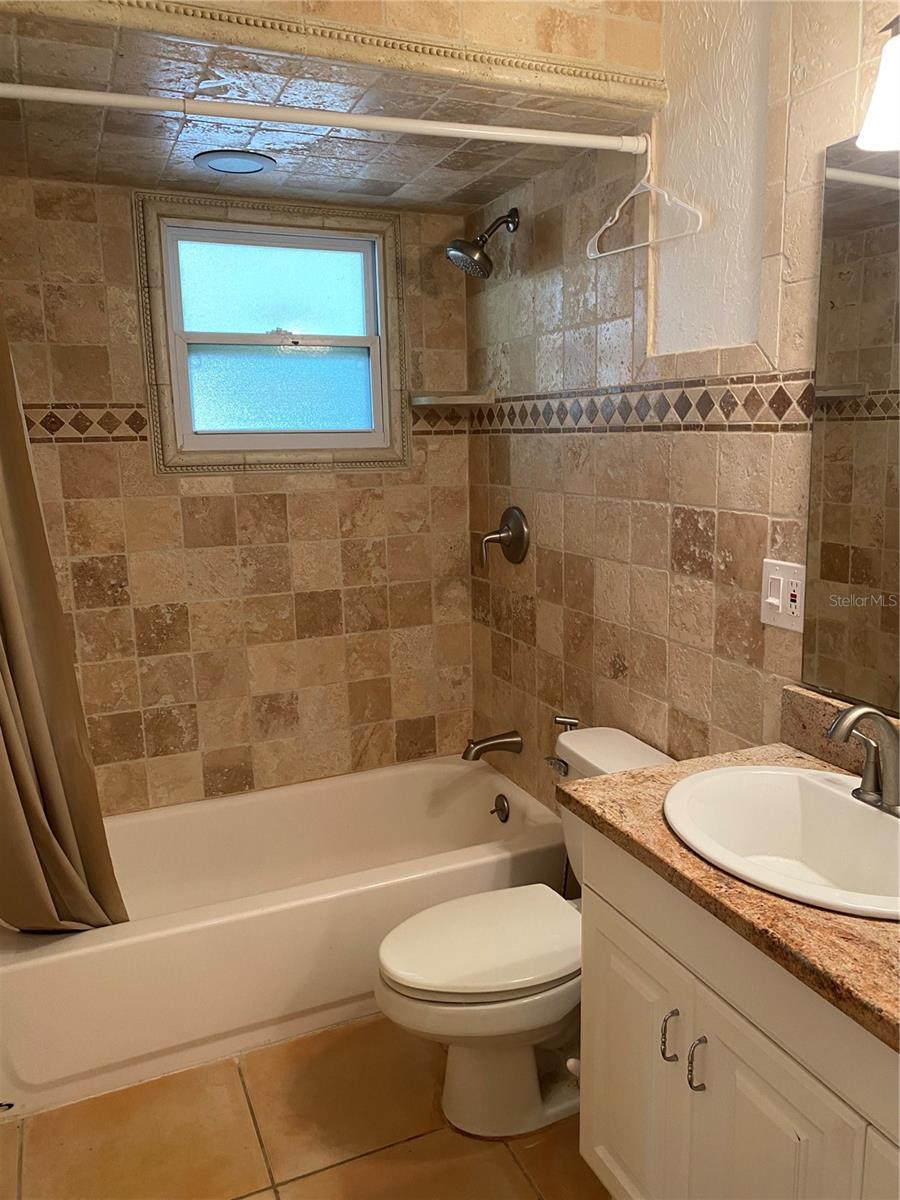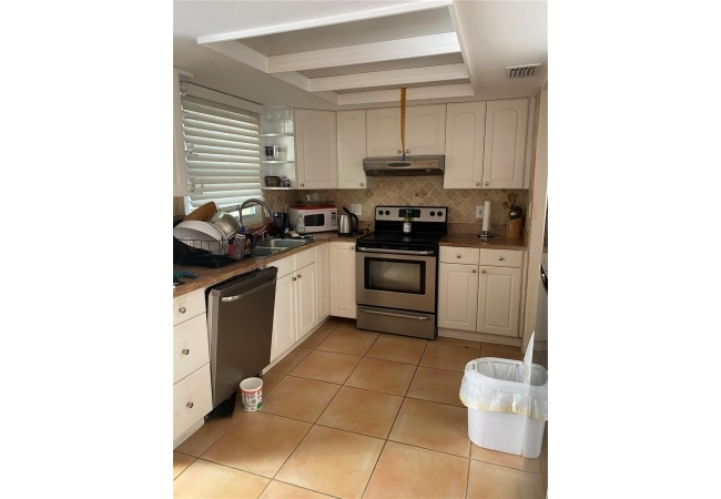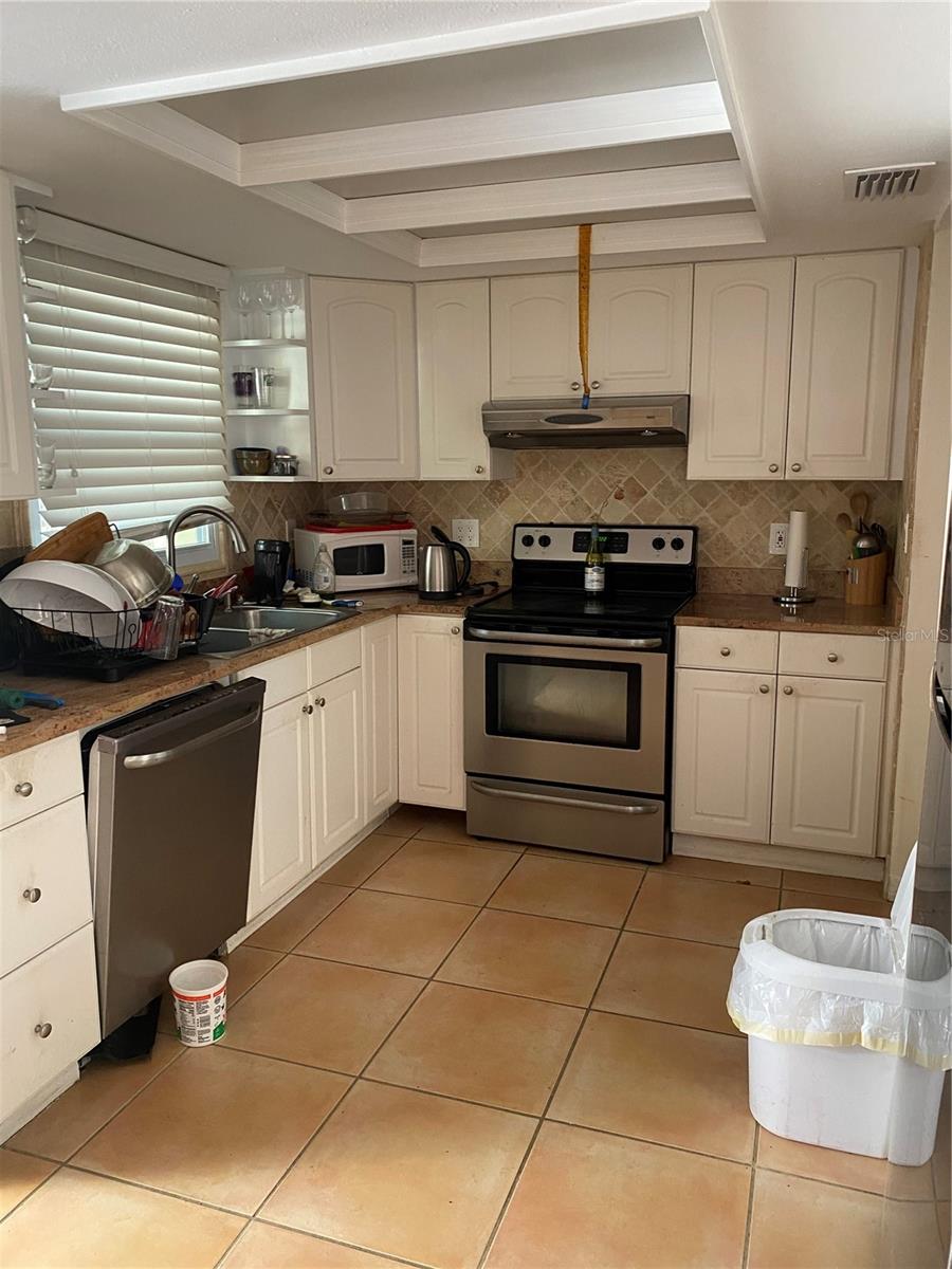 Kitchen is equipped with Stainless appliances, new refrigerator, and easy to maintain tile floors.