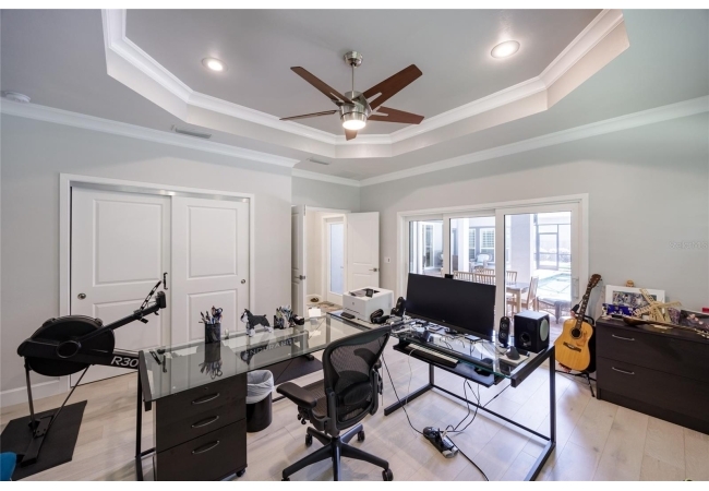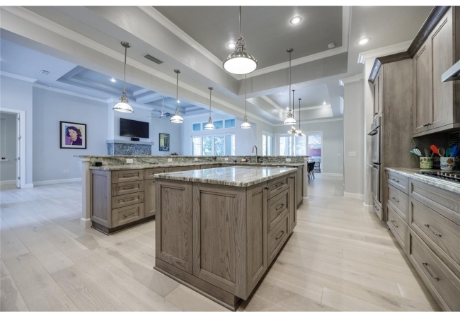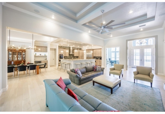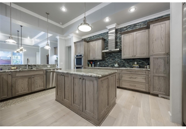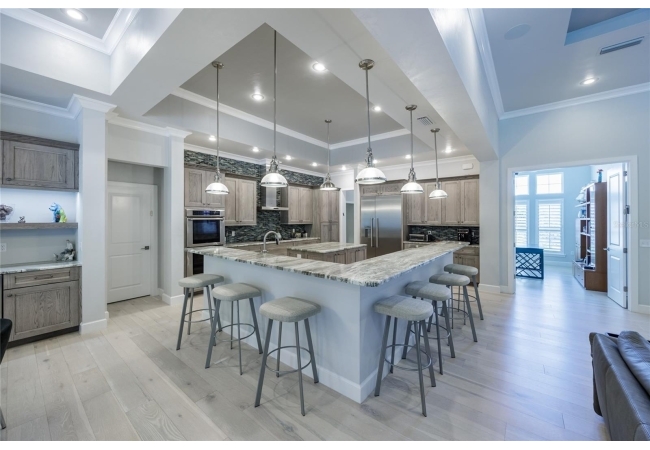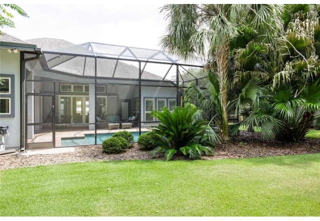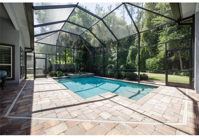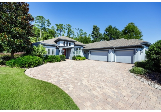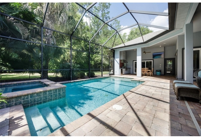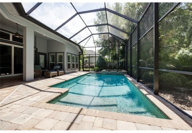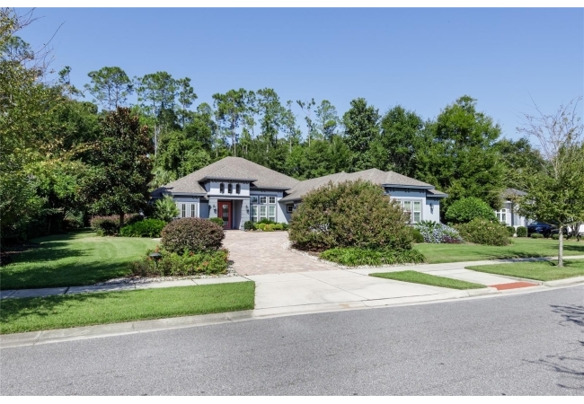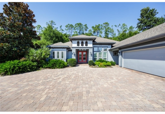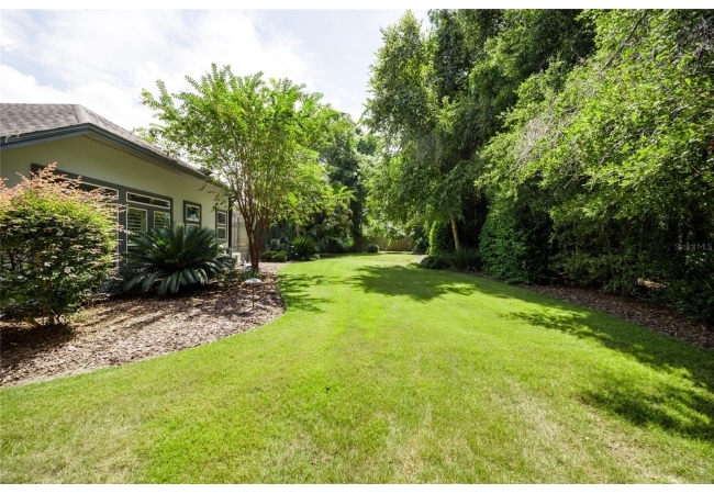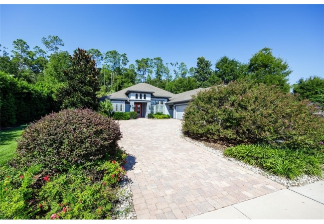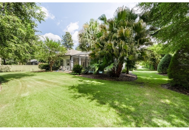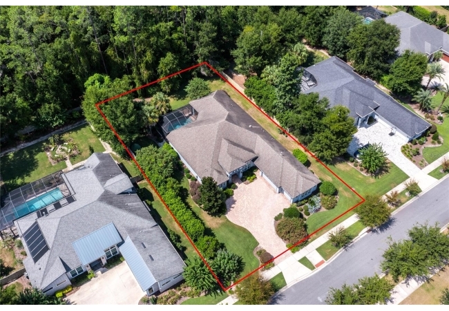 Elegance abounds in this custom-built 5-bedroom 4-bath executive pool home in the Estates of Wilds Plantation. A broad walkway of pavers leads to the oversized double glass entry doors that open onto the foyer. The great room has trey ceilings, crown moldings, recessed can lighting, a large tiled fireplace and sliding glass doors that allow full access to the screened pool area. The large open kitchen is a chef's delight, with wood cabinets and granite counter tops. A large central island and a wrap-around breakfast bar that seats eight, provide abundant space for meal preparation and casual dining. Deep drawers and pull-out shelves provide ample storage for dishes, utensils, pots and pans. The stainless-steel refrigerator/freezer, double wall ovens, 5 burner gas cooktop, dishwasher and microwave are all Thermador appliances. An alcove, adjacent to the dining area, has a wine refrigerator and storage for bar supplies. The house has a three-way split plan, providing maximum privacy for family members and overnight guests. The owner’s suite boasts two over-sized walk-in closets, with built-in shelves and drawers. There is also an alcove with space for a love seat, a writing desk or exercise equipment. The luxurious bathroom has dual vanities, a large walk-in shower with multiple shower heads, and an inviting soaking tub. The second and third bedrooms share a bathroom, as do the fourth and fifth bedrooms. The fifth bedroom could also be a game room or a large home office. A private study is accessed through French doors near the front of the house and is adjacent to a guest bathroom. The utility room has an entire wall of counters and cabinets, a laundry sink, built-in ironing board and a Whirlpool washer and dryer. There's a "drop area" for jackets, backpacks, and sports equipment as you approach the 3-car garage. A quiet luxury abounds in the screened pool area, with an outdoor kitchen, complete with refrigerator sink and gas grill, and a covered space for lounging and dining. Patio pavers surround the hot tub and pool, which has a "current generator" that allows you to swim in place. The house is surrounded by lush landscaping, with many flowering trees and shrubs, and a dense screen of vegetation along the rear of the property. The Estates of Wilds Plantation is just a few minutes away from shopping and Lawton Chiles Elementary school, and conveniently located to North Florida Regional Medical Center, the University of Florida and the UF Medical Center.