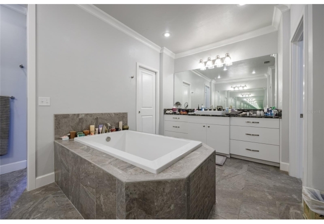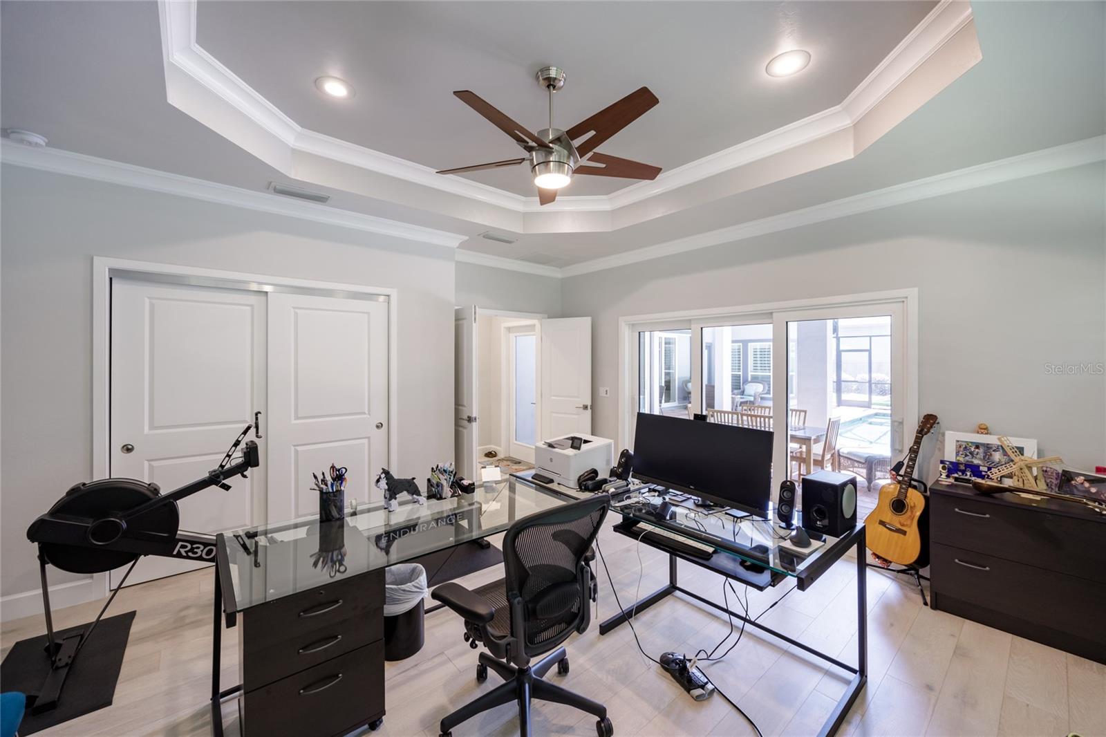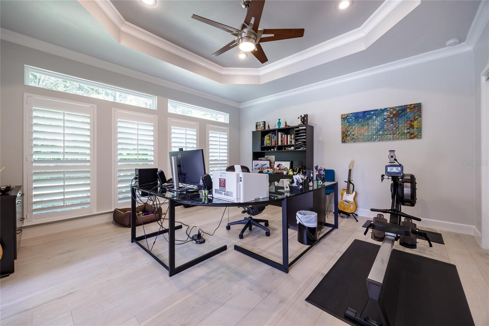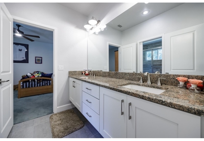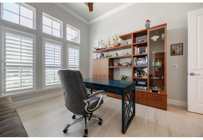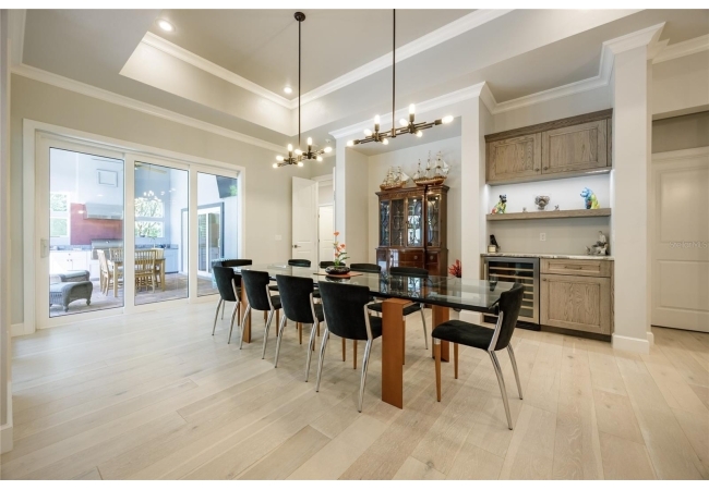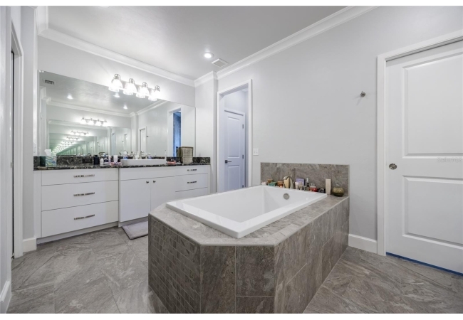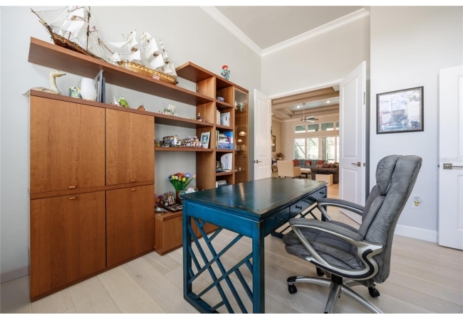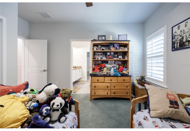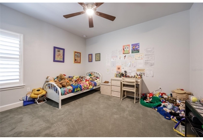 Elegance abounds in this custom-built 5-bedroom 4-bath executive pool home in the Estates of Wilds Plantation. A broad walkway of pavers leads to the oversized double glass entry doors that open onto the foyer. The great room has trey ceilings, crown moldings, recessed can lighting, a large tiled fireplace and sliding glass doors that allow full access to the screened pool area. The large open kitchen is a chef's delight, with wood cabinets and granite counter tops. A large central island and a wrap-around breakfast bar that seats eight, provide abundant space for meal preparation and casual dining. Deep drawers and pull-out shelves provide ample storage for dishes, utensils, pots and pans. The stainless-steel refrigerator/freezer, double wall ovens, 5 burner gas cooktop, dishwasher and microwave are all Thermador appliances. An alcove, adjacent to the dining area, has a wine refrigerator and storage for bar supplies. The house has a three-way split plan, providing maximum privacy for family members and overnight guests. The owner’s suite boasts two over-sized walk-in closets, with built-in shelves and drawers. There is also an alcove with space for a love seat, a writing desk or exercise equipment. The luxurious bathroom has dual vanities, a large walk-in shower with multiple shower heads, and an inviting soaking tub. The second and third bedrooms share a bathroom, as do the fourth and fifth bedrooms. The fifth bedroom could also be a game room or a large home office. A private study is accessed through French doors near the front of the house and is adjacent to a guest bathroom. The utility room has an entire wall of counters and cabinets, a laundry sink, built-in ironing board and a Whirlpool washer and dryer. There's a "drop area" for jackets, backpacks, and sports equipment as you approach the 3-car garage. A quiet luxury abounds in the screened pool area, with an outdoor kitchen, complete with refrigerator sink and gas grill, and a covered space for lounging and dining. Patio pavers surround the hot tub and pool, which has a "current generator" that allows you to swim in place. The house is surrounded by lush landscaping, with many flowering trees and shrubs, and a dense screen of vegetation along the rear of the property. The Estates of Wilds Plantation is just a few minutes away from shopping and Lawton Chiles Elementary school, and conveniently located to North Florida Regional Medical Center, the University of Florida and the UF Medical Center.