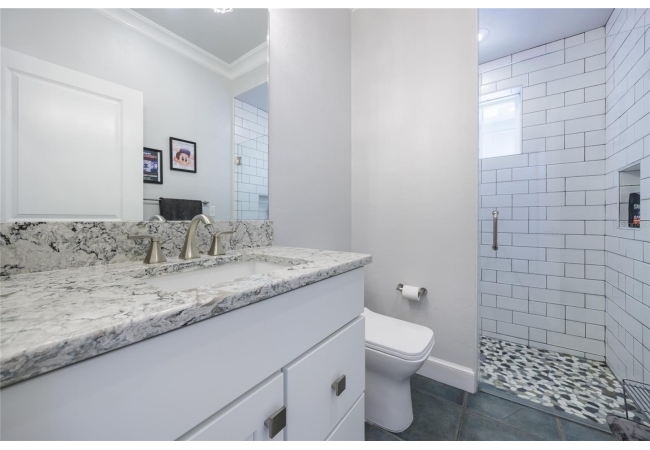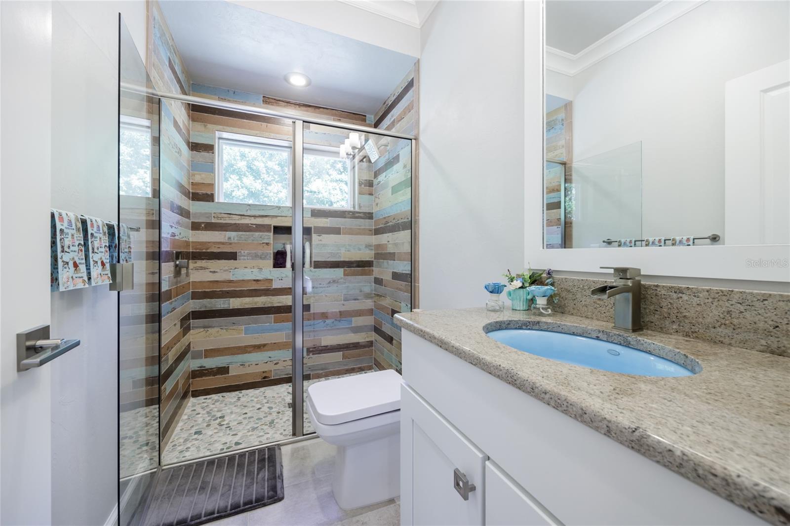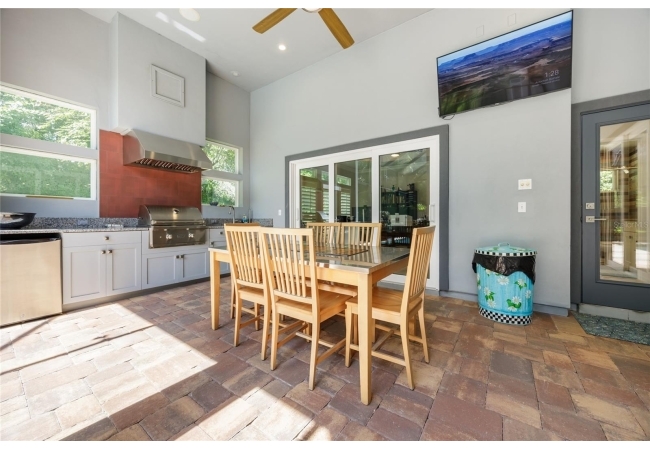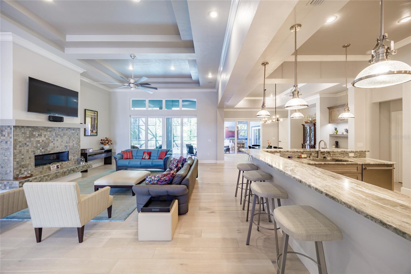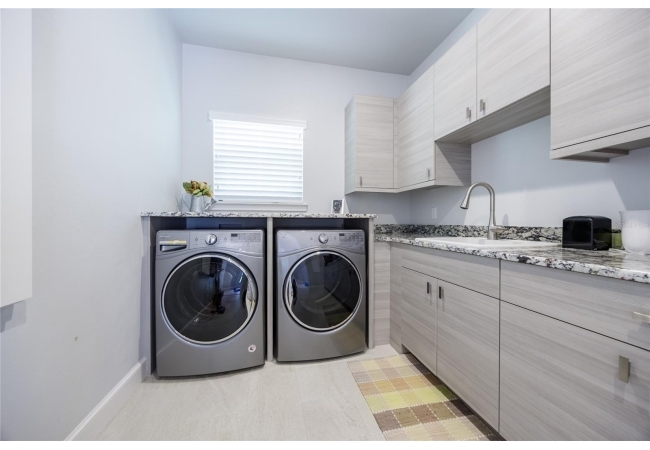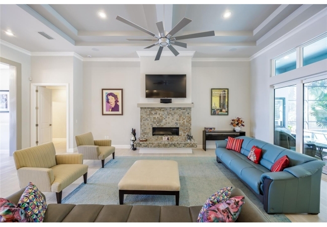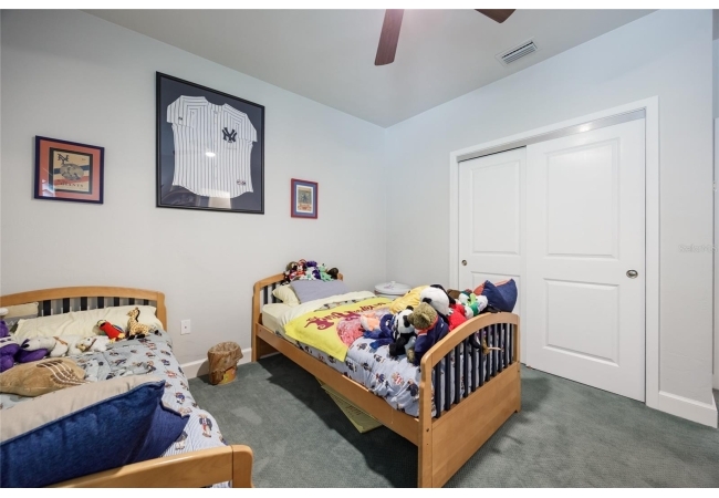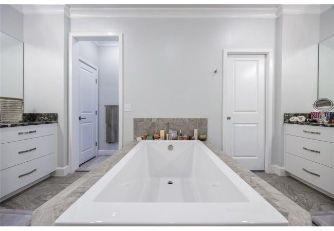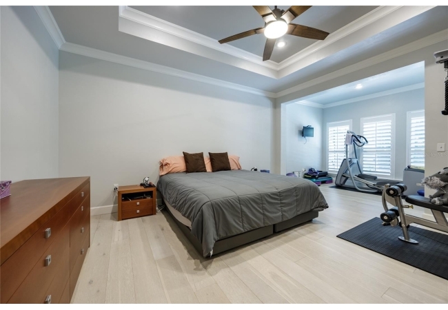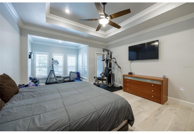 Elegance abounds in this custom-built 5-bedroom 4-bath executive pool home in the Estates of Wilds Plantation. A broad walkway of pavers leads to the oversized double glass entry doors that open onto the foyer. The great room has trey ceilings, crown moldings, recessed can lighting, a large tiled fireplace and sliding glass doors that allow full access to the screened pool area. The large open kitchen is a chef's delight, with wood cabinets and granite counter tops. A large central island and a wrap-around breakfast bar that seats eight, provide abundant space for meal preparation and casual dining. Deep drawers and pull-out shelves provide ample storage for dishes, utensils, pots and pans. The stainless-steel refrigerator/freezer, double wall ovens, 5 burner gas cooktop, dishwasher and microwave are all Thermador appliances. An alcove, adjacent to the dining area, has a wine refrigerator and storage for bar supplies. The house has a three-way split plan, providing maximum privacy for family members and overnight guests. The owner’s suite boasts two over-sized walk-in closets, with built-in shelves and drawers. There is also an alcove with space for a love seat, a writing desk or exercise equipment. The luxurious bathroom has dual vanities, a large walk-in shower with multiple shower heads, and an inviting soaking tub. The second and third bedrooms share a bathroom, as do the fourth and fifth bedrooms. The fifth bedroom could also be a game room or a large home office. A private study is accessed through French doors near the front of the house and is adjacent to a guest bathroom. The utility room has an entire wall of counters and cabinets, a laundry sink, built-in ironing board and a Whirlpool washer and dryer. There's a "drop area" for jackets, backpacks, and sports equipment as you approach the 3-car garage. A quiet luxury abounds in the screened pool area, with an outdoor kitchen, complete with refrigerator sink and gas grill, and a covered space for lounging and dining. Patio pavers surround the hot tub and pool, which has a "current generator" that allows you to swim in place. The house is surrounded by lush landscaping, with many flowering trees and shrubs, and a dense screen of vegetation along the rear of the property. The Estates of Wilds Plantation is just a few minutes away from shopping and Lawton Chiles Elementary school, and conveniently located to North Florida Regional Medical Center, the University of Florida and the UF Medical Center.