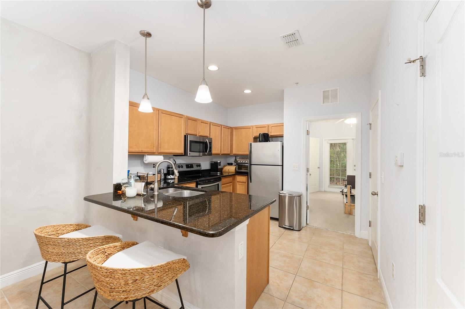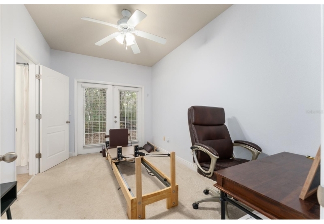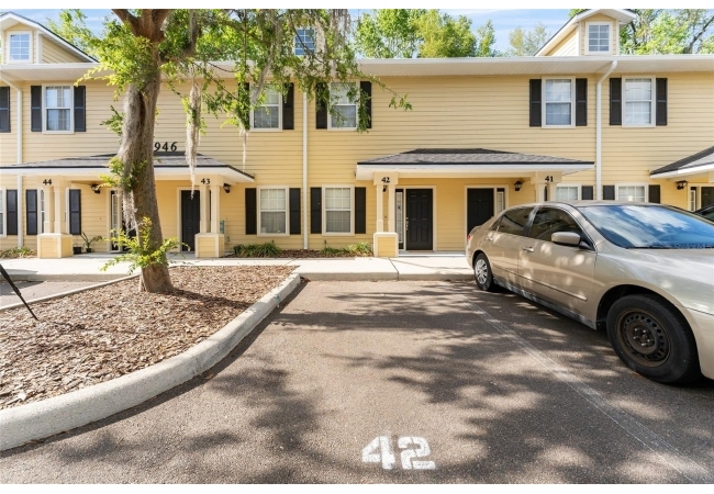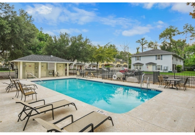 Upgraded condo near the University of Florida and UF Health Shands Hospital with 2 bedrooms, 3 bathrooms, and a flexible office space! Located in the newest phase of Chase Hollow, this fully furnished and move-in-ready townhome features higher ceilings and a more spacious floor plan designed for comfort and convenience. The main level offers a stylish open layout with a modern kitchen boasting real wood cabinetry, granite countertops, and a functional breakfast bar. The versatile downstairs room includes its own full bathroom and closet, making it the perfect guest suite or private workspace. Upstairs, both bedrooms feature their own private en-suite bathrooms and large closets. Residents enjoy premium convenience with a reserved parking space right at the front door, a community pool just steps away, and two UF bus stops located directly across the street for easy access to campus. The monthly association dues are all-inclusive, covering high-speed Gator.Net internet, exterior maintenance, trash service, and building insurance. Whether for a student, faculty member, or professional, this condo offers an unbeatable location near Shands, the Vet School, I-75, Butler Plaza, and the UF Campus!