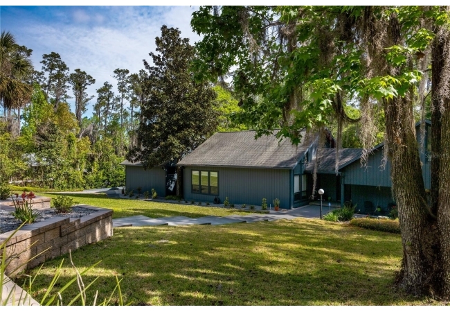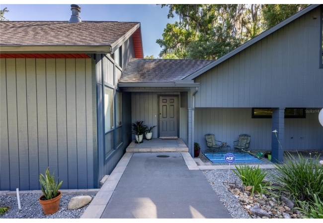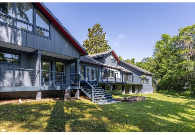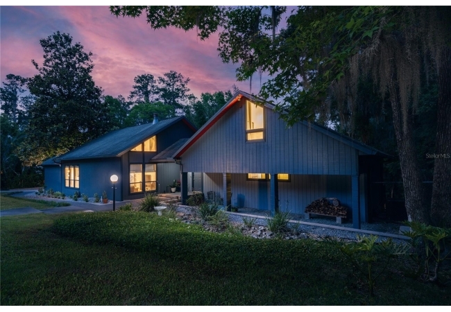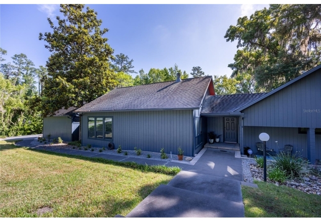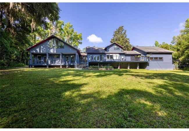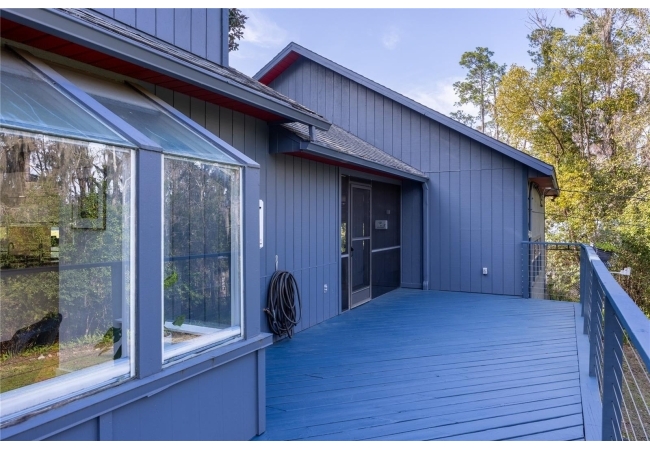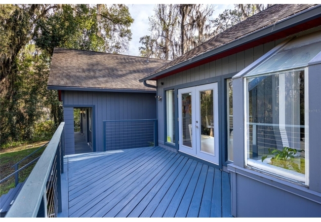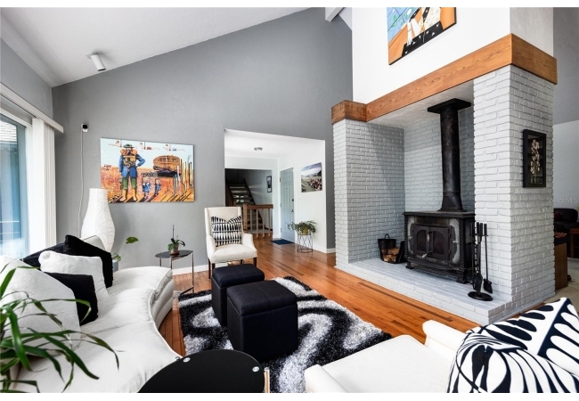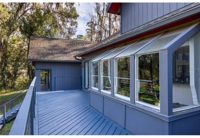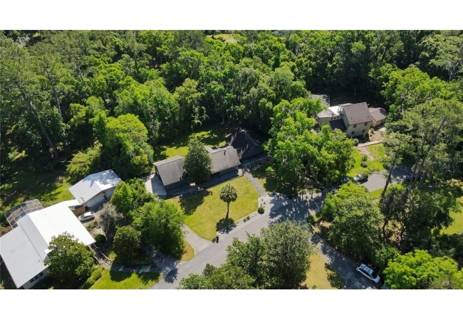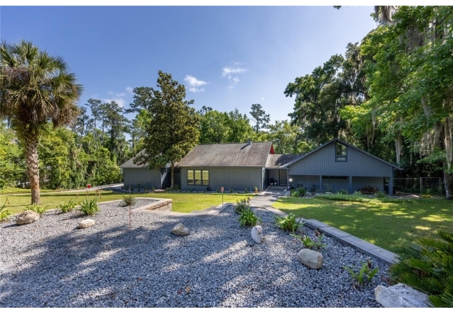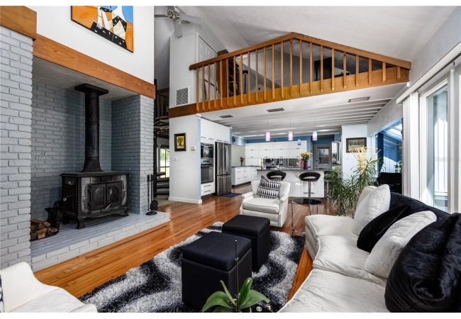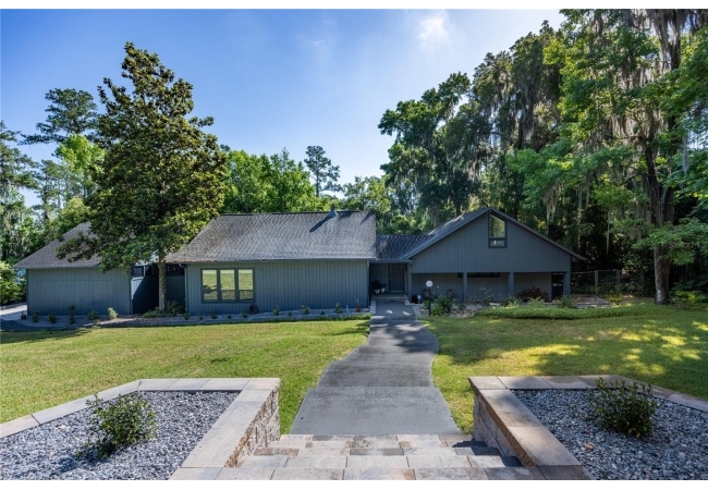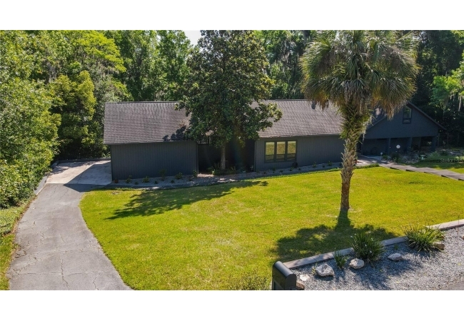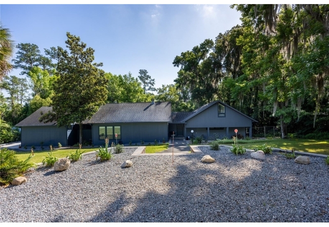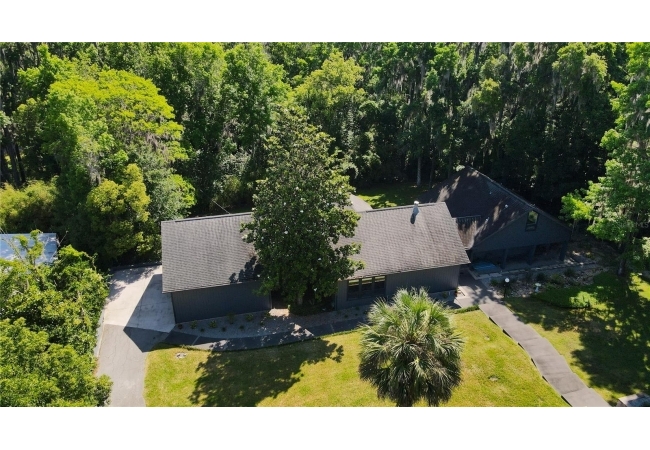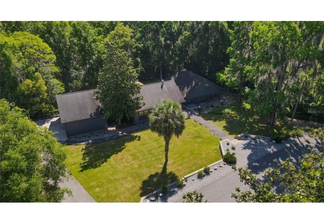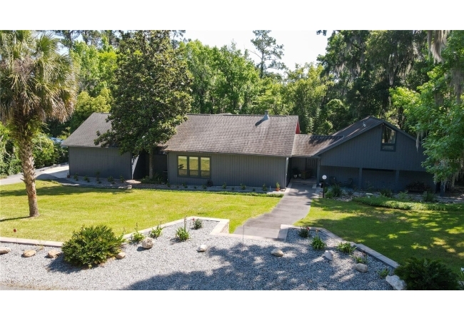 Amazing Scandinavian Modern home that combines minimalist design, sleek lines and yet remains warm and inviting. This 3 bedroom plus loft, 2.5 bathroom home, built in 1981, has only had 3 owners. Impeccably maintained, you will love the close proximity to the University of Florida, Shands/UF Health, PK Younge and downtown Gainesville. Yet its' location in the neighborhood makes this home a quiet and peaceful retreat on a cul-de-sac street. Walk to nearby Sweetwater Wetlands Park and Bivens Arm Nature Park. From the covered front entry, you step into the foyer. The home is divided into living and sleeping wings with an amazing Chef's Kitchen playing center stage. To your left is the Family Room with dramatic high ceilings, beautiful heart pine wood floors, soaring wood burning stove and banks of windows for a ton of natural light. The Family Room is open to the modern Kitchen with breakfast bar, breakfast nook, quartz counter tops, stainless steel appliances, induction cooktop and ample storage space. The breakfast nook is perfect for your morning coffee with a wall of floor to ceiling windows overlooking the deck and beautiful backyard. Just off the Kitchen is a half bathroom and a laundry room with washer and dryer, laundry tub and cabinets for extra storage. Also off the Kitchen is a screened breezeway that leads to the deck and the oversized two car, side entry garage. There is a large workshop and a darkroom, plenty of space if you needed an ADU or attached in-law suite The home has central vacuum. Roof is 2009. Two HVAC systems. Two septic systems. Tankless water heater for living spaces and separate water heater for the bedrooms. Step through the Kitchen to a Dining Area. This space is open to the Living Room with high ceilings and built-in bookshelves. There is a circular staircase that leads to a loft space full of natural light with built-in storage, sink and is perfect for an artist or home office. Back at the Foyer, if you turn right and go upstairs you arrive at the Primary Suite. This very large space with high ceilings has an ensuite bathroom that has been updated with wood cabinetry, double sink vanity and granite countertops. There is a separate shower and water closet. This home is absolutely full of storage space and the primary suite has a wall of closets with room for dressers and custom shelving. Downstairs has a flex space with transom windows that is currently used for workout equipment, but could easily be a homework station of in-law suite living area. The first bedroom has a built-in bookshelf, updated lighting and separate entrance to the rear wood deck. There is a Jack and Jill Bathroom that the guest rooms share with a tub/shower and water closet, but each room has its own vanity and sink. No more fighting over mirror time! The second guest bedroom has its own access to the rear deck as well. The large rear deck spans the back of the home and has updated railings and was expanded by the current owners. The home sits on an oversized lot of .75 acres and is fenced. There are vegetable beds and a low maintenance garden. No HOA.