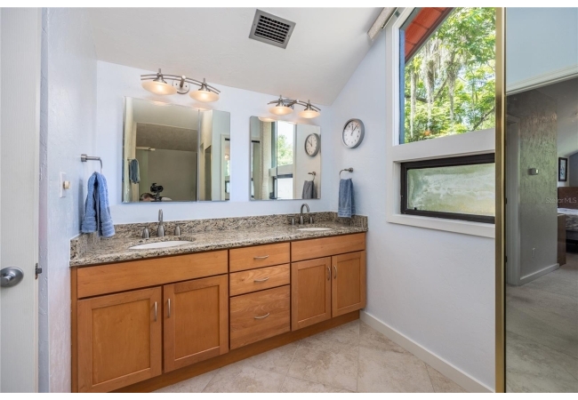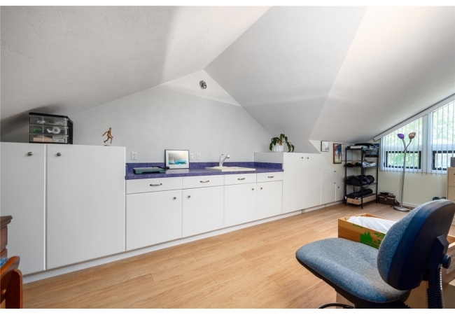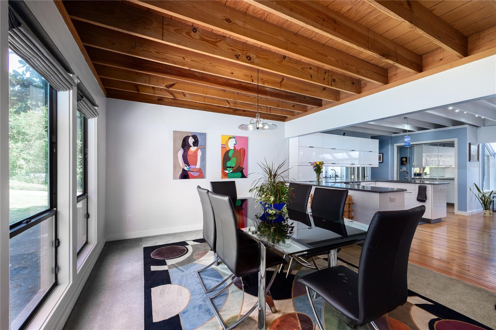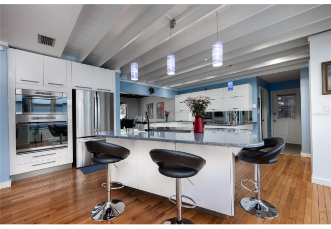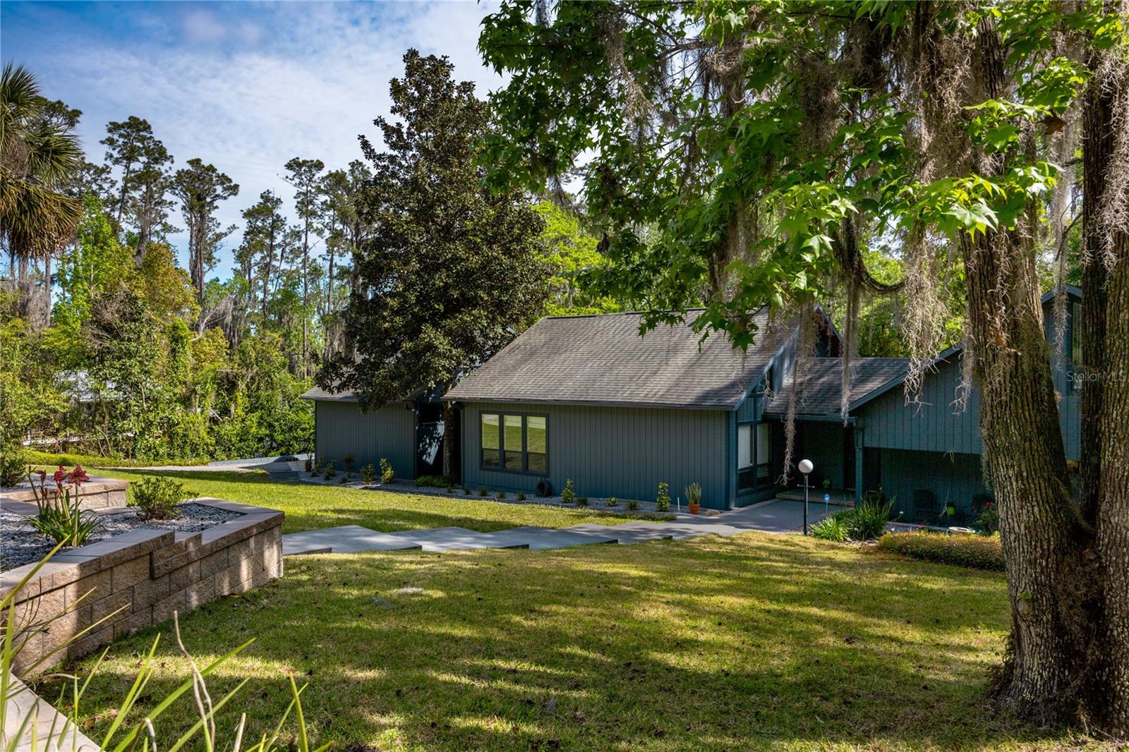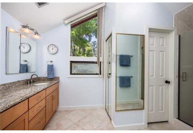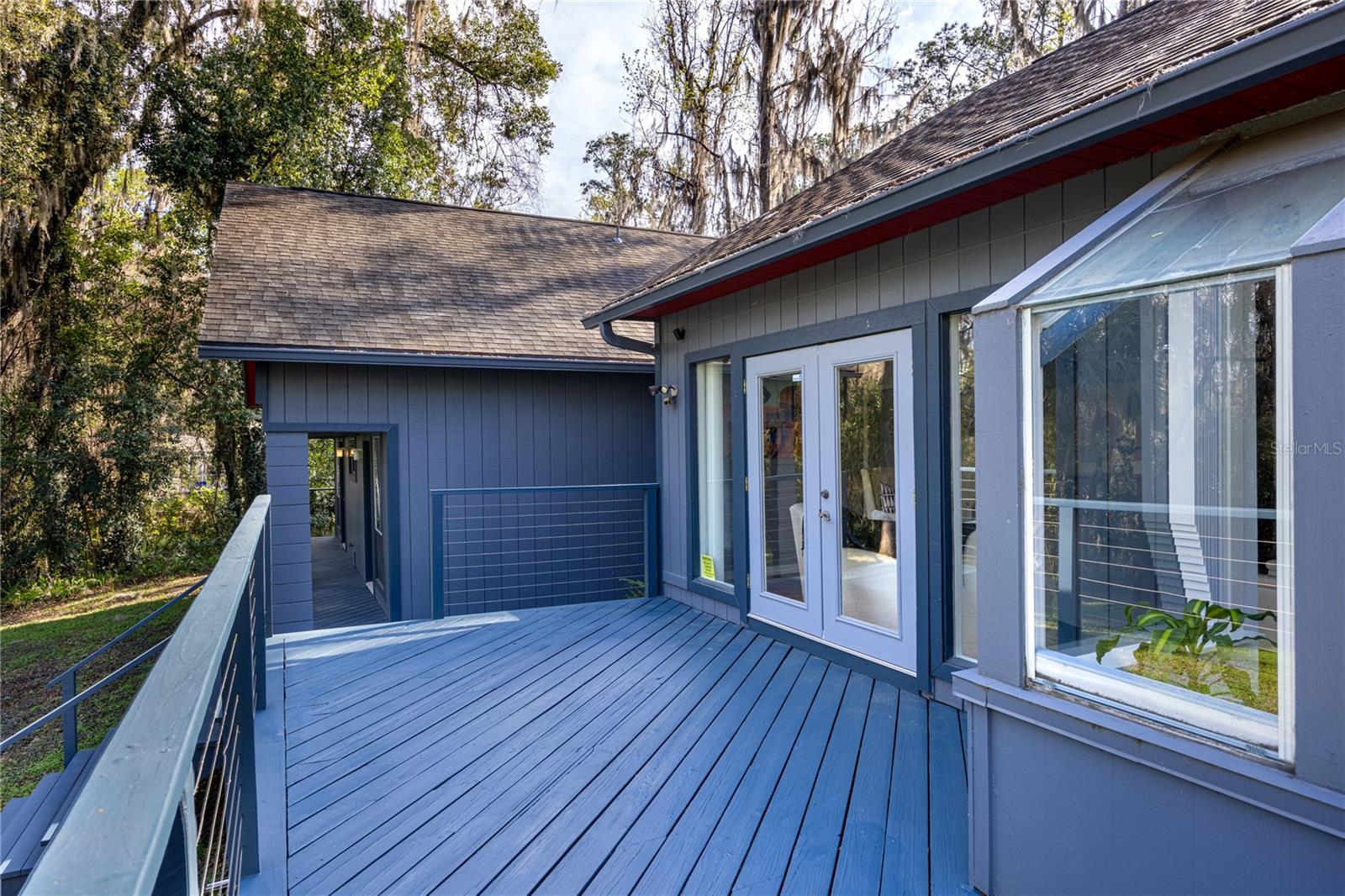 Amazing Scandinavian Modern home that combines minimalist design, sleek lines and yet remains warm and inviting. This 3 bedroom plus loft, 2.5 bathroom home, built in 1981, has only had 3 owners. Impeccably maintained, you will love the close proximity to the University of Florida, Shands/UF Health, PK Younge and downtown Gainesville. Yet its' location in the neighborhood makes this home a quiet and peaceful retreat on a cul-de-sac street. Walk to nearby Sweetwater Wetlands Park and Bivens Arm Nature Park. From the covered front entry, you step into the foyer. The home is divided into living and sleeping wings with an amazing Chef's Kitchen playing center stage. To your left is the Family Room with dramatic high ceilings, beautiful heart pine wood floors, soaring wood burning stove and banks of windows for a ton of natural light. The Family Room is open to the modern Kitchen with breakfast bar, breakfast nook, quartz counter tops, stainless steel appliances, induction cooktop and ample storage space. The breakfast nook is perfect for your morning coffee with a wall of floor to ceiling windows overlooking the deck and beautiful backyard. Just off the Kitchen is a half bathroom and a laundry room with washer and dryer, laundry tub and cabinets for extra storage. Also off the Kitchen is a screened breezeway that leads to the deck and the oversized two car, side entry garage. There is a large workshop and a darkroom, plenty of space if you needed an ADU or attached in-law suite The home has central vacuum. Roof is 2009. Two HVAC systems. Two septic systems. Tankless water heater for living spaces and separate water heater for the bedrooms. Step through the Kitchen to a Dining Area. This space is open to the Living Room with high ceilings and built-in bookshelves. There is a circular staircase that leads to a loft space full of natural light with built-in storage, sink and is perfect for an artist or home office. Back at the Foyer, if you turn right and go upstairs you arrive at the Primary Suite. This very large space with high ceilings has an ensuite bathroom that has been updated with wood cabinetry, double sink vanity and granite countertops. There is a separate shower and water closet. This home is absolutely full of storage space and the primary suite has a wall of closets with room for dressers and custom shelving. Downstairs has a flex space with transom windows that is currently used for workout equipment, but could easily be a homework station of in-law suite living area. The first bedroom has a built-in bookshelf, updated lighting and separate entrance to the rear wood deck. There is a Jack and Jill Bathroom that the guest rooms share with a tub/shower and water closet, but each room has its own vanity and sink. No more fighting over mirror time! The second guest bedroom has its own access to the rear deck as well. The large rear deck spans the back of the home and has updated railings and was expanded by the current owners. The home sits on an oversized lot of .75 acres and is fenced. There are vegetable beds and a low maintenance garden. No HOA.