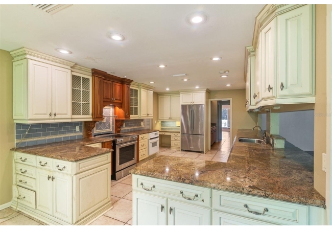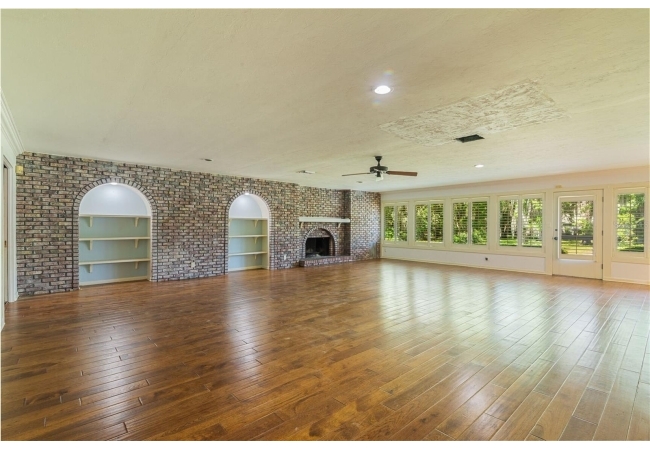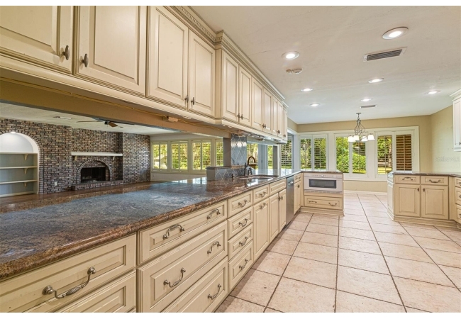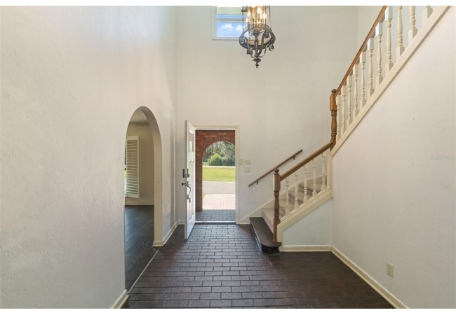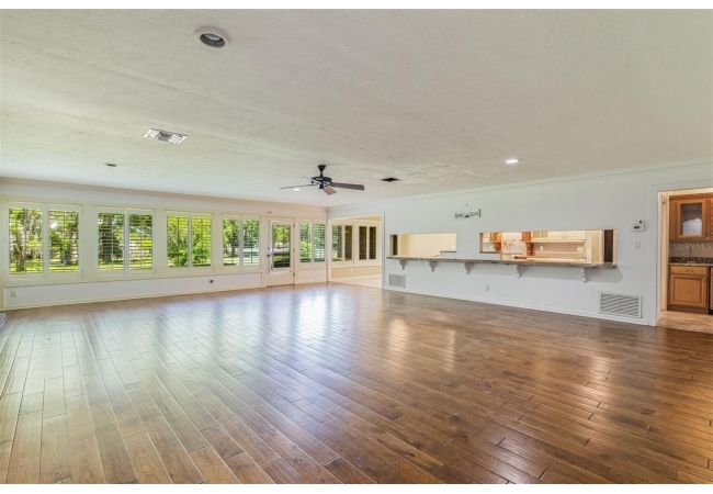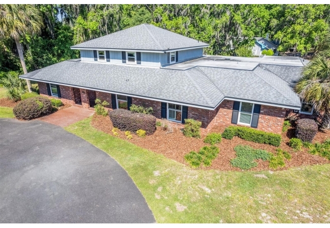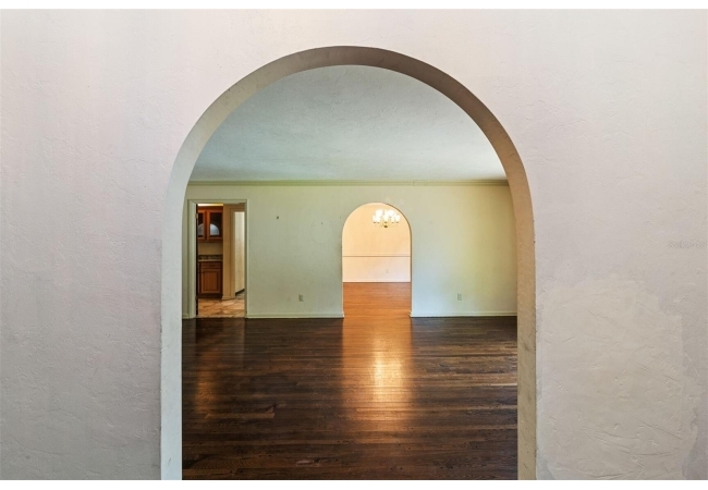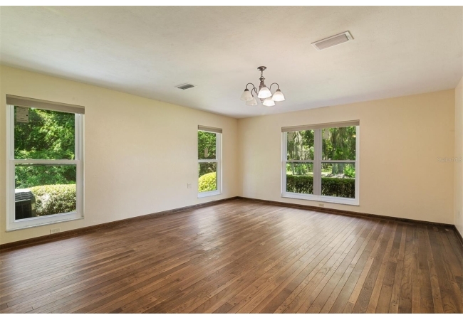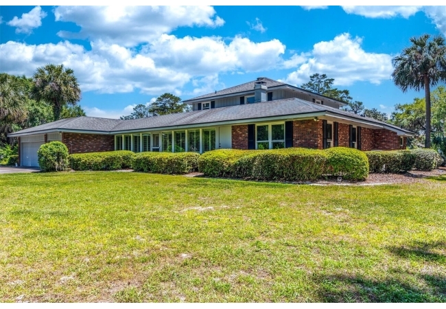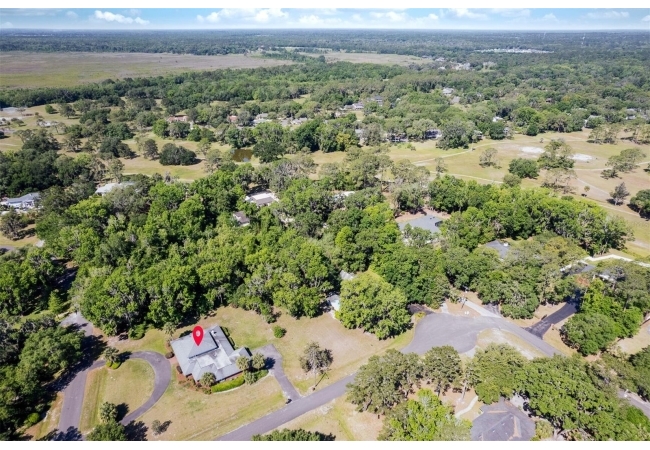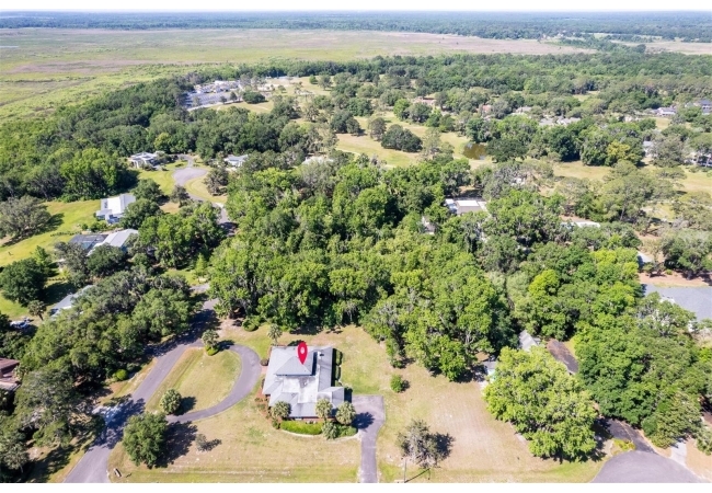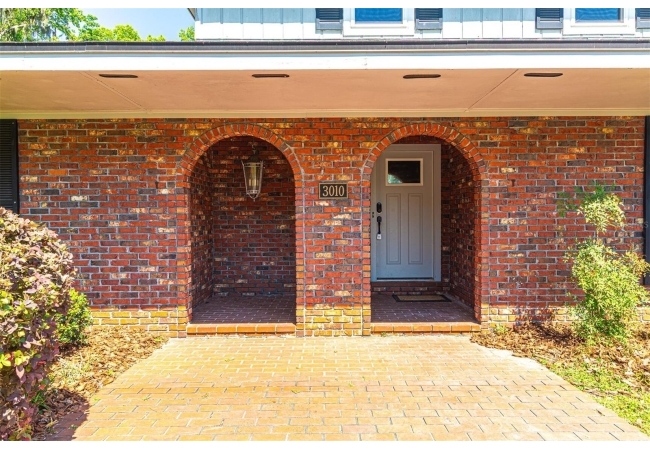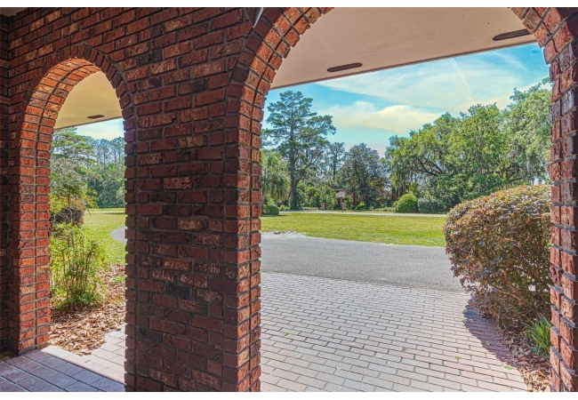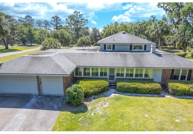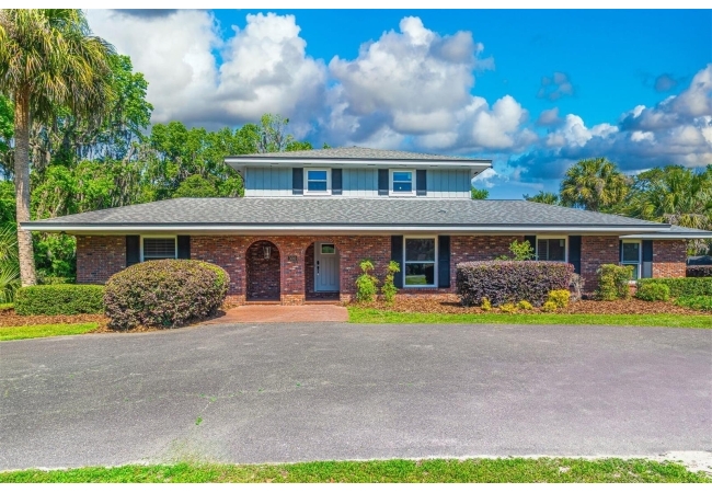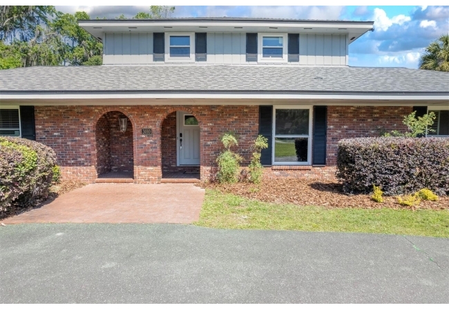 Welcome to your private estate in the back of Gainesville Golf & Country Club right next to Paynes Prairie. Nestled on a sprawling 1.53-acre corner lot, this grand residence offers over 5,300 square feet of living space and timeless architectural charm. A stately circular paved driveway makes a striking first impression, complemented by a separate drive to the 3-car garage. Inside, you'll discover gleaming hardwood floors, all new windows, and elegant arched doorways that add character throughout the home. The layout features a formal dining room, an expansive living area with custom built-in shelving, and a bonus living space perfect for a home office, media room, or playroom. The spacious kitchen is designed for both function and entertaining, with granite countertops, a mini bar, and a eat-in nook overlooking the serene backyard.