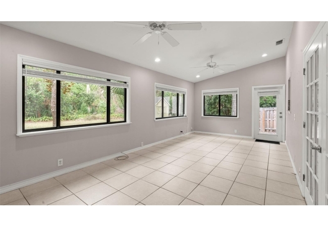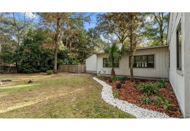Welcome to this beautifully maintained and thoughtfully upgraded home situated on a generous 0.59-acre lot, offering privacy, comfort, and modern convenience in a desirable Gainesville location. The home features a split floor plan that provides an ideal layout, with the primary suite privately positioned and directly connected to the Florida room, which includes central heat and air—making it a perfect year-round flex space. The inviting living area is anchored by a cozy gas fireplace and enhanced by recessed lighting throughout the home along with automatic blinds for a polished, move-in-ready feel. The kitchen is equipped with stainless steel appliances, a new dishwasher, and ample functionality for everyday living and entertaining. A newer natural gas water heater adds efficiency, and the washer and dryer convey with the property. Additional interior features include full-size body mirrors on closet doors and a Yale keypad entry with key lock option, blending style with security. The roof was replaced in 2018, offering added peace of mind. Outdoors, enjoy a private backyard ideal for relaxation or gatherings, complete with a fire pit and a newly added wooden fence for enhanced privacy. A shed conveys with the property. The spacious two-car garage includes built-in storage, completing this well-appointed home that combines modern updates, flexible living spaces, and ample land in one exceptional offering. Contact listing Agent 386-292-4485