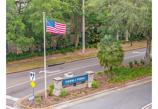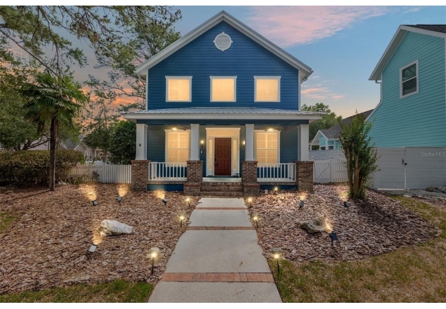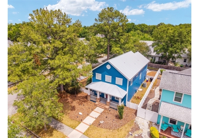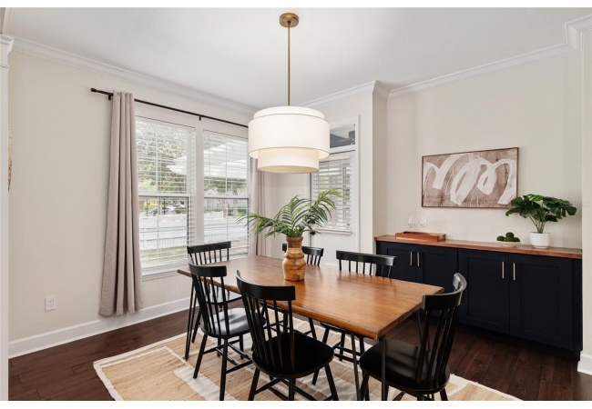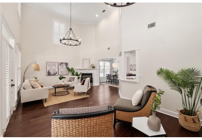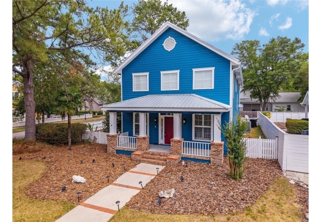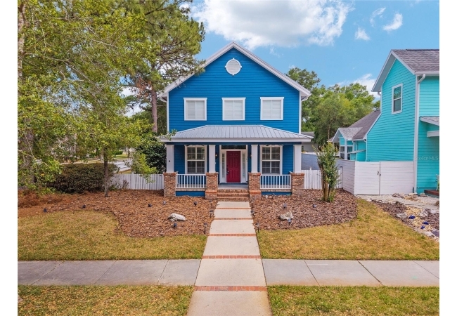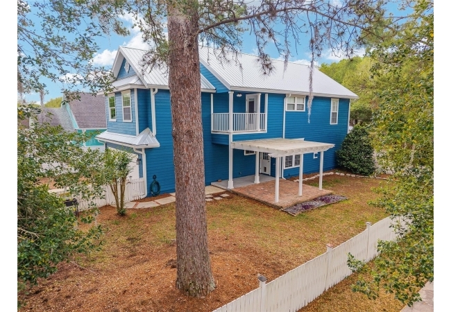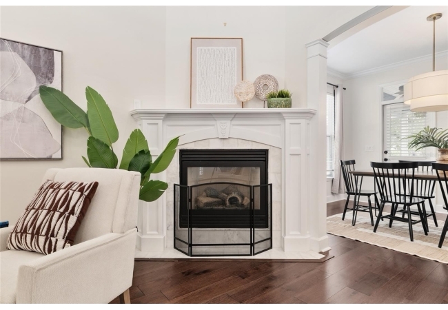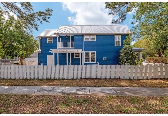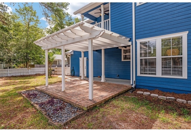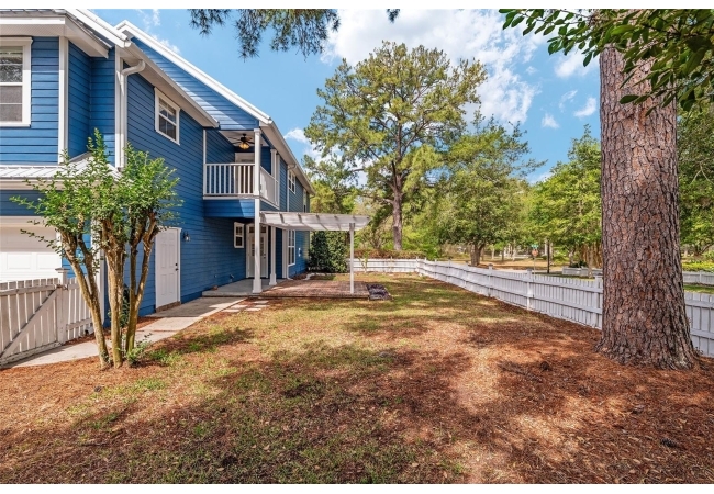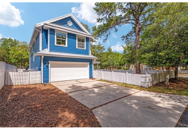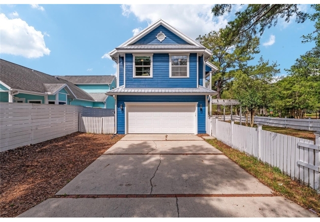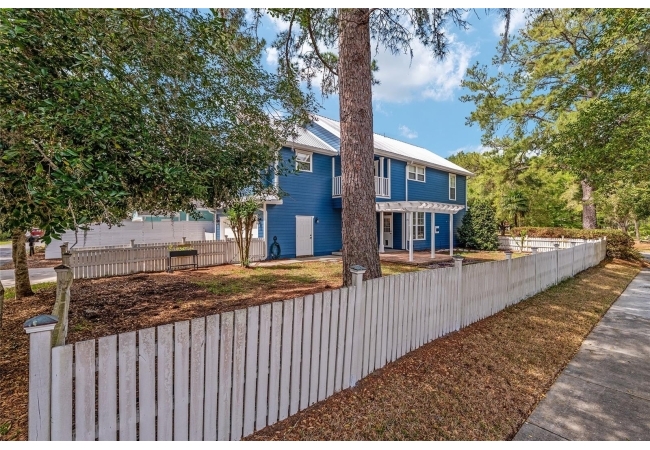 Positioned on a corner lot, this thoughtfully updated Town of Tioga home presents a striking first impression, where a charming blue exterior is framed by crisp white trim, and a classic white picket fence. A vibrant red door introduces a sense of character, while a covered front porch overlooks peaceful green parkland, creating a setting that feels both welcoming and quietly connected. Inside, the home opens with a sense of space and light. Vaulted ceilings rise above the main living area, where dark plank flooring grounds the space and clerestory windows draw in natural light from above. Set beneath a dramatic chandelier, a wall of built in shelving balances form and function while the corner fireplace anchors adds a sense of elegant comfort. The layout unfolds with intention, guiding the flow to a dedicated dining space defined by an oversized picture window and its own refined lighting. A built-in sideboard adds both utility and elegance, creating an ideal setting for entertaining. Beyond, the kitchen is composed with clarity and purpose. Full height cabinetry offers abundant storage, while a chef’s range with a Viking hood vent and carefully selected finishes create a space that is both functional and elevated. Upstairs, the primary suite offers a retreat shaped by vaulted ceilings and rich flooring underfoot. A private balcony extends the space, overlooking the yard and inviting quiet moments. The suite is complemented by a generous walk-in closet with built-in organization and a 5-piece bath featuring a deep soaking tub. Two additional upstairs bedrooms are equally well considered, each filled with natural light and offering flexibility for a range of uses. A well appointed ground level laundry room adds ease to daily routines with thoughtful storage. Outdoor living continues in the backyard, where a level private setting is framed by fencing and softened by intentional design. A brick patio sits beneath a pergola extension from the upper balcony, creating a layered outdoor environment suited for both gathering and quiet enjoyment. A rear-entry two car garage completes the home’s functionality, offering convenience while preserving the integrity of the front elevation. Located just moments from Tioga Town Center restaurants, fitness center and MORE, this home pairs timeless design with a highly connected setting, offering both comfort and access within one cohesive and compelling experience.