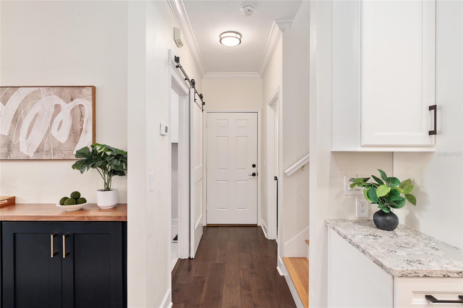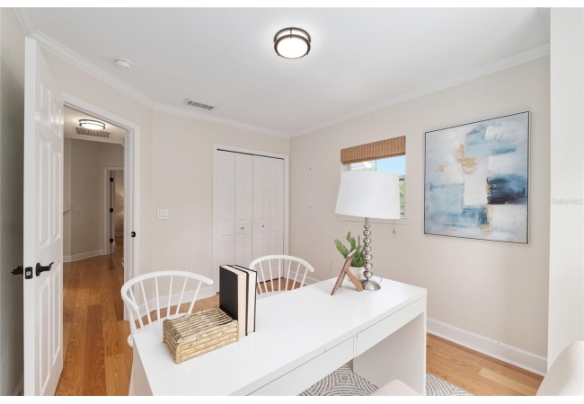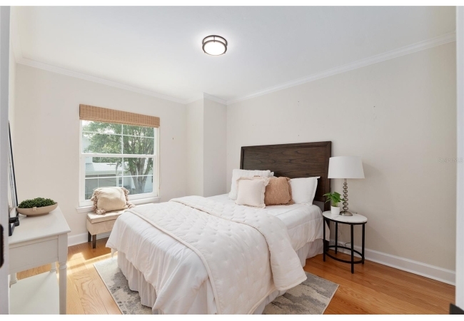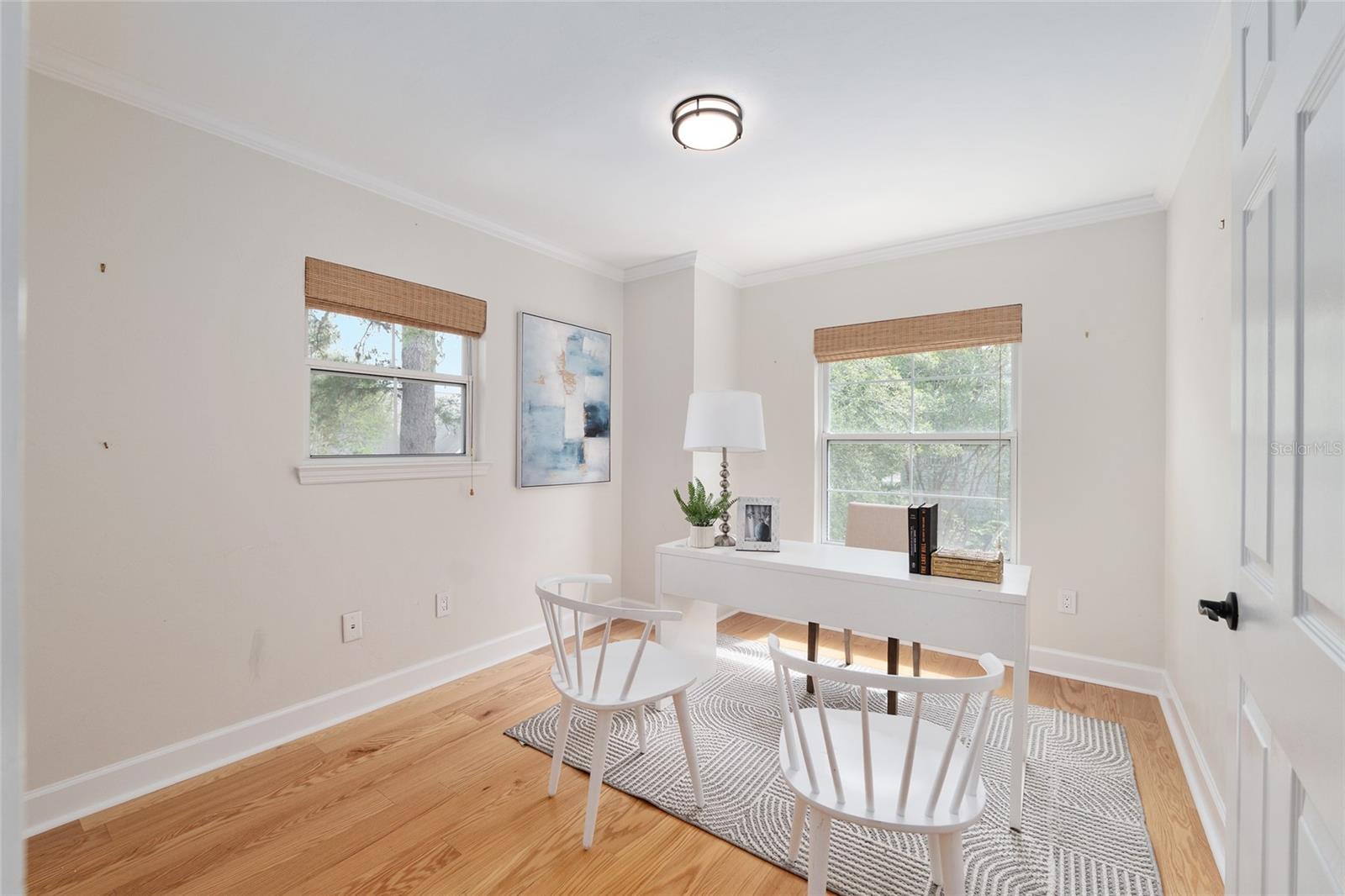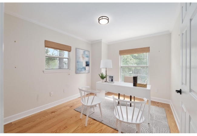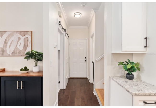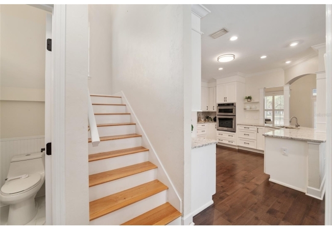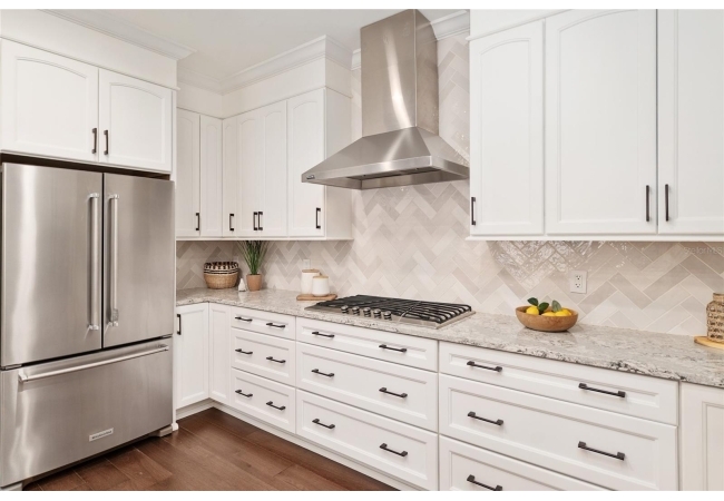 Positioned on a corner lot, this thoughtfully updated Town of Tioga home presents a striking first impression, where a charming blue exterior is framed by crisp white trim, and a classic white picket fence. A vibrant red door introduces a sense of character, while a covered front porch overlooks peaceful green parkland, creating a setting that feels both welcoming and quietly connected. Inside, the home opens with a sense of space and light. Vaulted ceilings rise above the main living area, where dark plank flooring grounds the space and clerestory windows draw in natural light from above. Set beneath a dramatic chandelier, a wall of built in shelving balances form and function while the corner fireplace anchors adds a sense of elegant comfort. The layout unfolds with intention, guiding the flow to a dedicated dining space defined by an oversized picture window and its own refined lighting. A built-in sideboard adds both utility and elegance, creating an ideal setting for entertaining. Beyond, the kitchen is composed with clarity and purpose. Full height cabinetry offers abundant storage, while a chef’s range with a Viking hood vent and carefully selected finishes create a space that is both functional and elevated. Upstairs, the primary suite offers a retreat shaped by vaulted ceilings and rich flooring underfoot. A private balcony extends the space, overlooking the yard and inviting quiet moments. The suite is complemented by a generous walk-in closet with built-in organization and a 5-piece bath featuring a deep soaking tub. Two additional upstairs bedrooms are equally well considered, each filled with natural light and offering flexibility for a range of uses. A well appointed ground level laundry room adds ease to daily routines with thoughtful storage. Outdoor living continues in the backyard, where a level private setting is framed by fencing and softened by intentional design. A brick patio sits beneath a pergola extension from the upper balcony, creating a layered outdoor environment suited for both gathering and quiet enjoyment. A rear-entry two car garage completes the home’s functionality, offering convenience while preserving the integrity of the front elevation. Located just moments from Tioga Town Center restaurants, fitness center and MORE, this home pairs timeless design with a highly connected setting, offering both comfort and access within one cohesive and compelling experience.