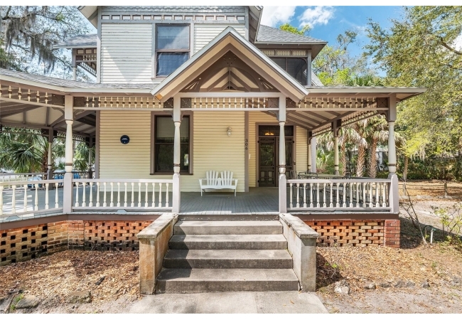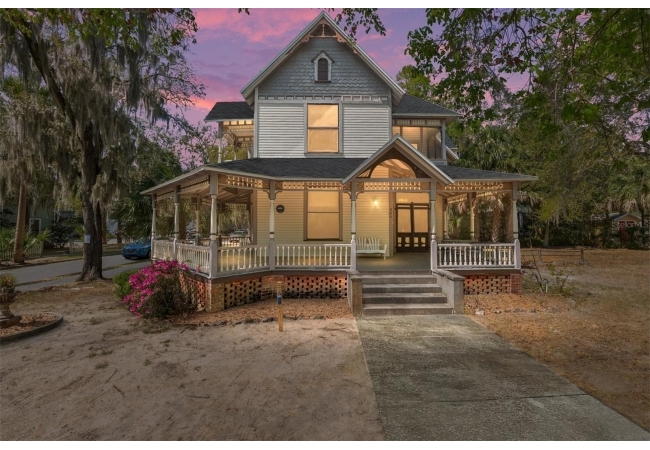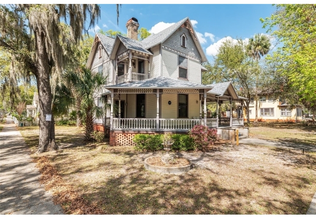 Locals know this beautiful Queen Anne house as the Blanding House. Built in 1899 by Horatio Davis, a judge and twice mayor, Lt. General Albert Blanding lived in this home from 1900 – 1910, retaining its ownership until 1958. Nestled in the charming Duckpond neighborhood, this historic property blends timeless character with spacious living just minutes from downtown. Situated on a double lot encompassing a generous .27-acres, the Blanding House offers approximately 2,854 sq. feet of living space. Victorian porches are one of a kind, aren’t they? Featuring intricate gingerbread trim, this iconic front porch serves as your social hub for entertaining and for comfortable front porch seating, perfect greeting your neighbors and friends. Inside, the residence is currently configured as a duplex, offering two separate living spaces that provide flexibility for a variety of uses. The property features three bedrooms, two kitchens, two bathrooms, and dual staircases. Each floor offers a comfortable living space ideal for tenants, guests, or an owner-occupant seeking additional rental income, featuring its own fully functioning kitchen, living space, bedroom(s), bathroom, and 100-amp service panel. Downstairs is the master bedroom and bath, a laundry room which houses a stacked washer/dryer and the two water heaters that service the home. In addition, there are two large living spaces, and access to the front and south-side porch. When used as a duplex, the front living space, with its sliding pocket door, was often used as an additional bedroom. Upstairs are two bed-sitting rooms, each easily accommodating a large bed, desk, couch and several chairs; a bathroom, screened enclosed and open porches, and the attic access. UPDATES include: Dec 2025 water heaters (2), beautifully finished heart pine floors, March 2026 roof, and fire-resistant drywall on the downstairs ceiling. Designed for easy conversion from its current duplex layout to a traditional residential home, one or two downstairs walls can be removed, and the rear staircase re-opened for upstairs/downstairs access. The double lot provides mature surroundings and outdoor potential—perfect for relaxing, gardening, or enjoying Gainesville’s warm climate, and of course, additional space for parking. Located just minutes from downtown Gainesville, parks, restaurants, and the University of Florida, the property offers a rare combination of historic character, income potential, generous space, and prime location. Whether used as a primary residence, income-producing duplex, or future investment opportunity, this unique Duckpond property offers exceptional potential in one of Gainesville’s most desirable historic neighborhoods. ADDITIONAL COMMENTS: Seller has a recent survey and is willing to split the property into two lots. Splitting the lot into two separate lots will require amended tax parcel ID’s and legal descriptions. Buyer may purchase the home on the south 70 feet for $625,000, with a first right of refusal for the north 50 feet as a separate lot for $99,000.