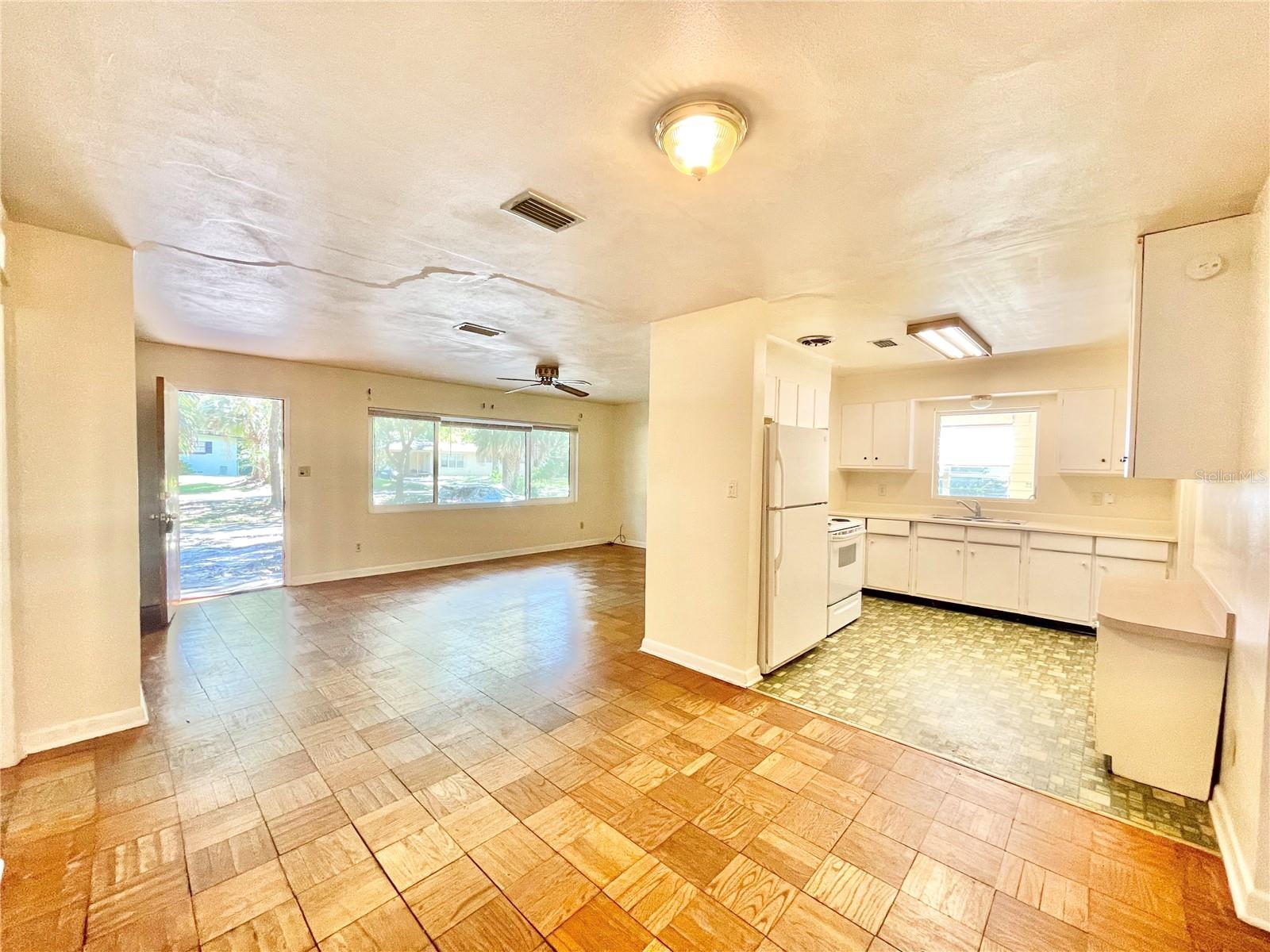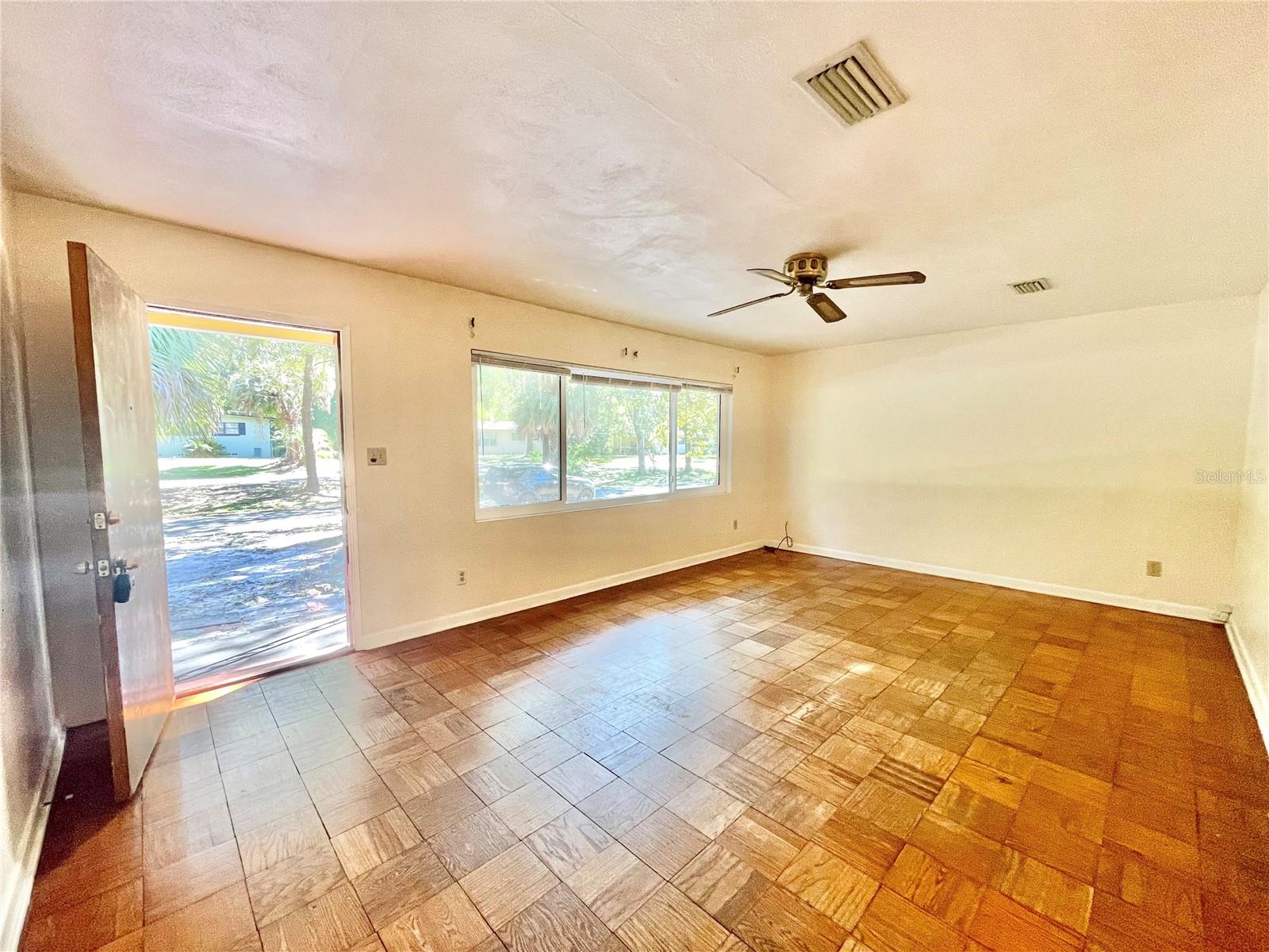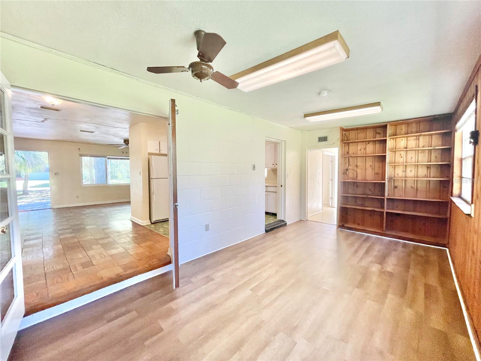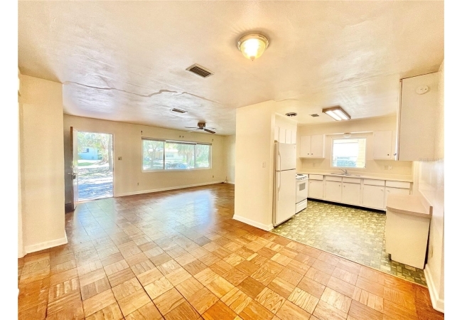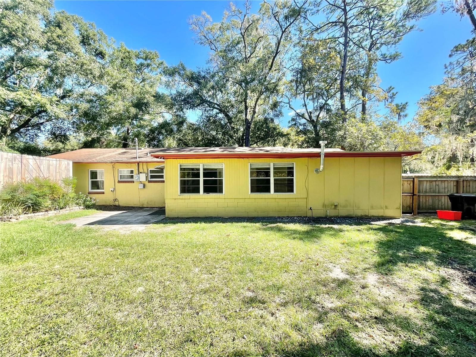 Walk or bike to the University of Florida! Semi-handyperson special!! Architectural roof was installed in 2012, some windows, new insulation and HVAC in 2021, re-plumbed & new water heater in 2017. Mostly needs cosmetics. Parquet wood floors in the great room, dining area, hallway and 3 bedrooms. Flex room/4th bedroom does not have a closet, it has an Armoire. Bonus room behind the kitchen has many possibilities. Large backyard ready for outdoor enjoyment. Great location close to the university, hospitals, movie theater, Publix marketplace and all kinds of shopping and dining options. Ideal for students, rental, or short term rentals like AiRBnB, Verbo, etc.. Concrete driveway plus extra parking (gravel).