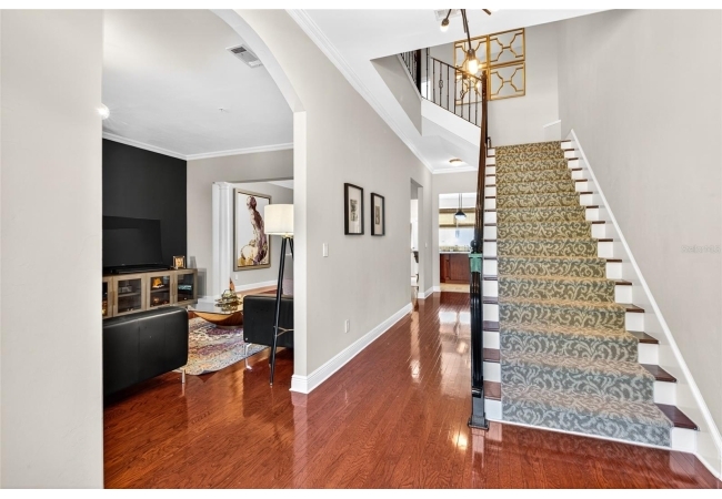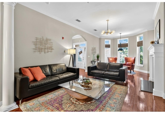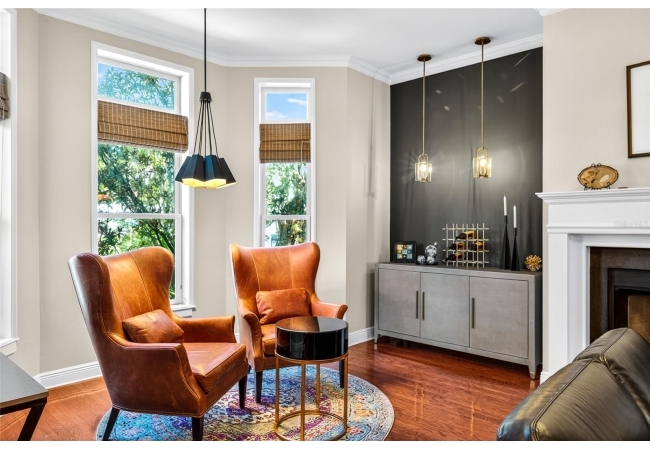 Stunning, turnkey condo in Regents Park with designer finishes and lots of natural light! This luxuriously upgraded unit includes a 2025 HVAC, 2025 tankless water heater, new lighting fixtures and engineered wood floors throughout. The large, doubled paned windows and high ceilings allow lots of natural light in all of the living spaces. The kitchen includes an island, a bar with built-in cabinetry, solid wood cabinets, a pantry, granite countertops, stainless steel appliances including a 2025 refrigerator, and a balcony that is ideal for grilling. The spacious, yet cozy living room with a gas fireplace and sitting area connects seamlessly to the dining room. Upstairs, there are three bedrooms, two baths and a generously sized laundry closet. The primary bedroom has a large walk-in closet with custom cabinetry, and the primary bath includes a stand-up shower, a jetted tub and double sinks. Constructed of insulated concrete forms, utility bills stay low. The private garage is tucked behind a gated entry. This ideal urban location is walkable to all of the amenities of downtown Gainesville and the historic Duckpond neighborhood. Enjoy listening to weekly free concerts at the Bo Diddly Plaza and Heartwood Soundstage, watching movies and plays at The Hippodrome, walking around Depot Park and the Sweetwater Trails, and dining at some of the best restaurants in Gainesville. Looking for quality of life, look no further.