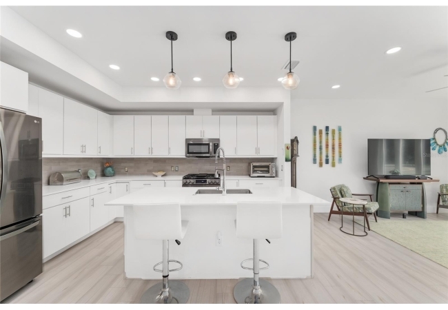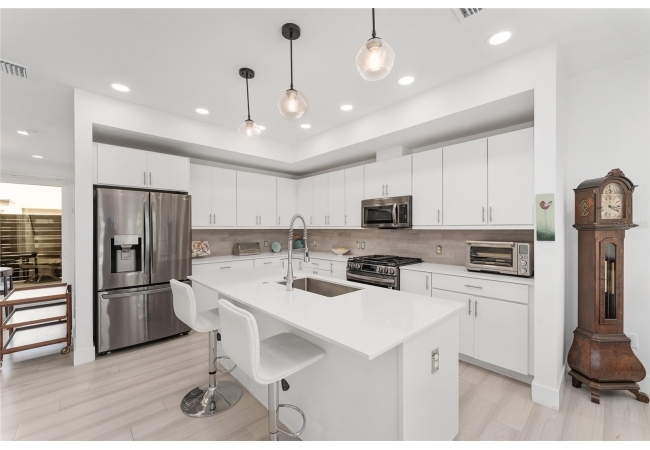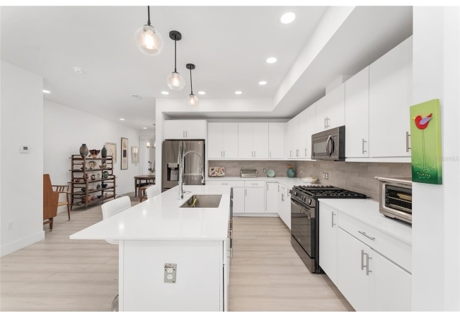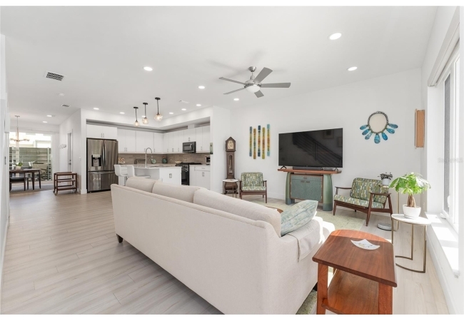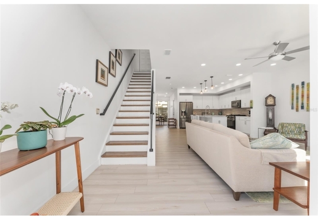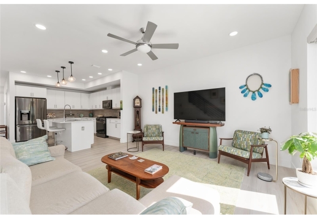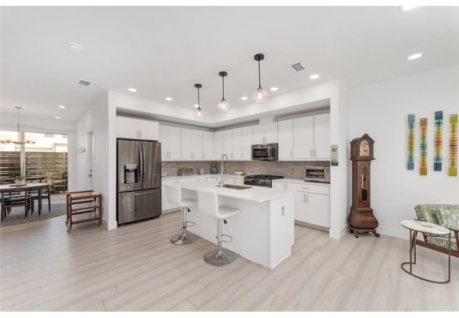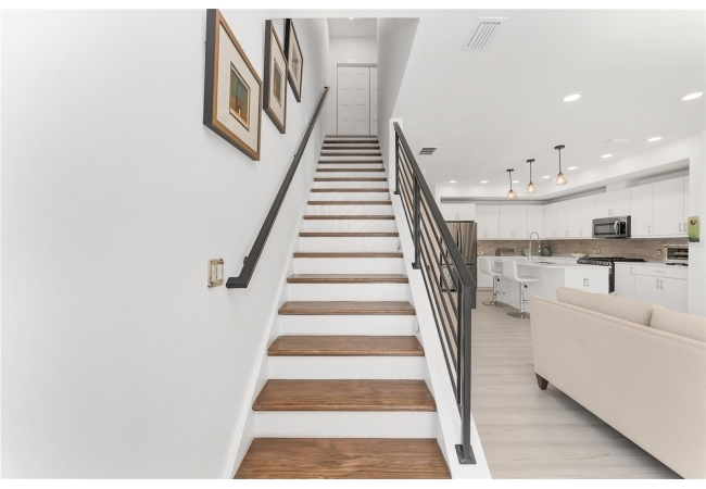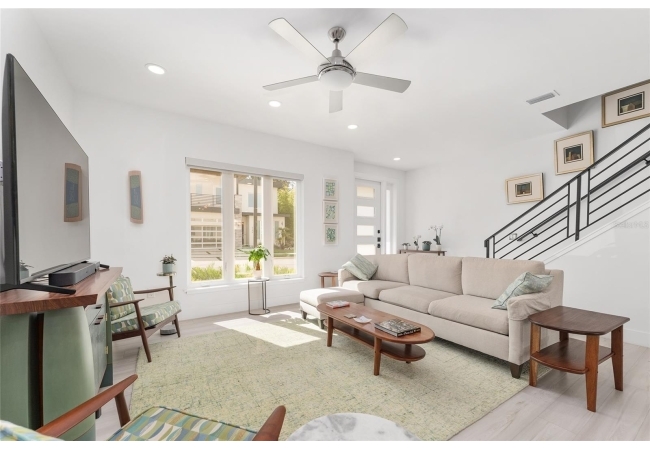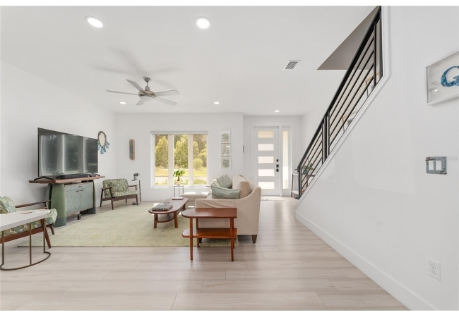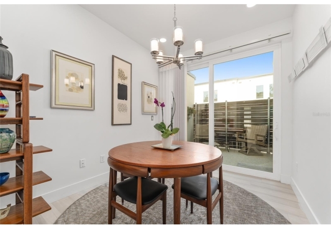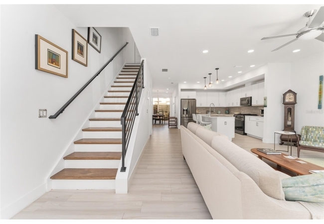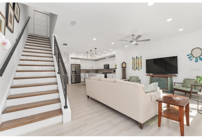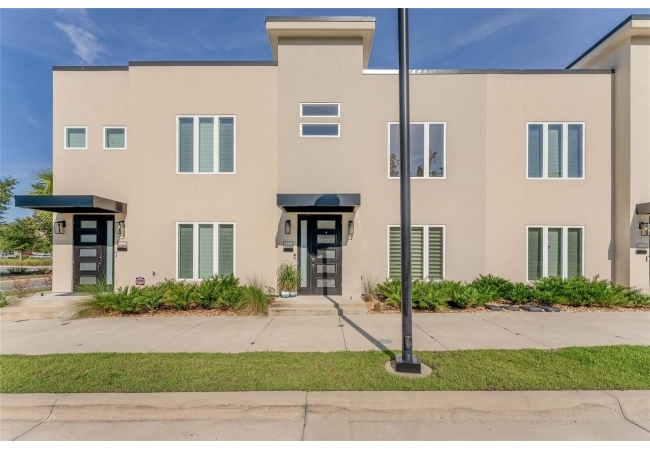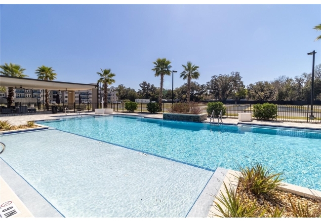 A gem just 2 minutes walking from Celebration Pointe and all its entertainment options. This townhouse features 3 bedrooms, 2 bathrooms upstairs and a powder room in the first floor. Bathrooms with high-end finishes. Two of the closets have been upgraded. Large windows bring in plenty of natural light. On the lower level, an open-concept living area with vinyl flooring and stainless steel appliances. A charming outdoor patio with epoxy flooring, along with a garage space also finished with epoxy. Built with energy-efficient materials and a modern aesthetic, this home offers a prime location close to various markets, a movie theater, restaurants, and the best shopping available in Gainesville. Easy transport to the games as a perfect place to tailgate before them! Why stay in a hotel when this can be yours? The community offers a pool, a barbecue area, and a spa. In the center of the community, there is a charming little square.