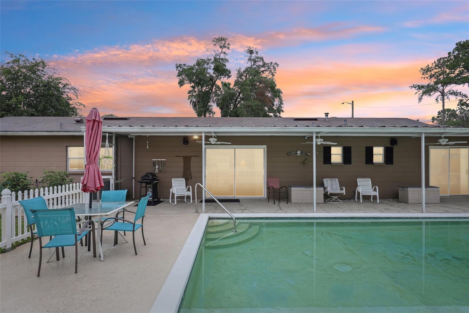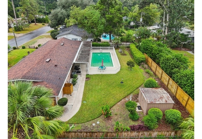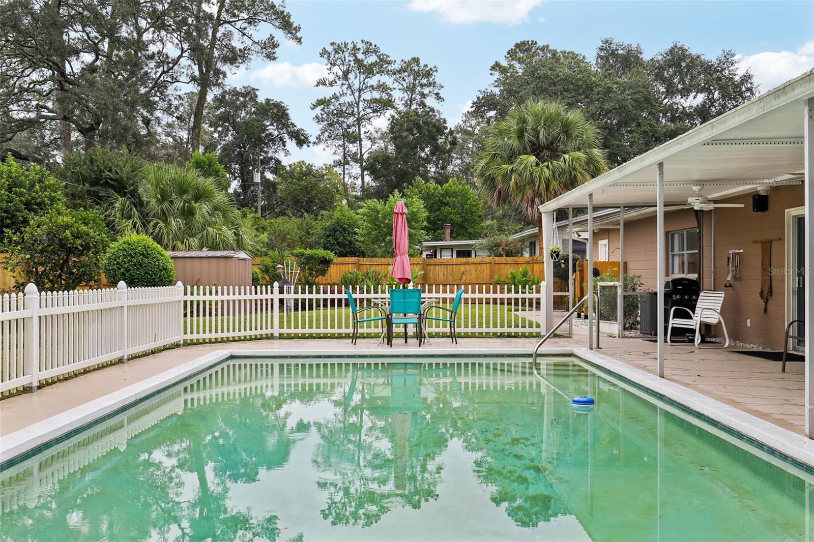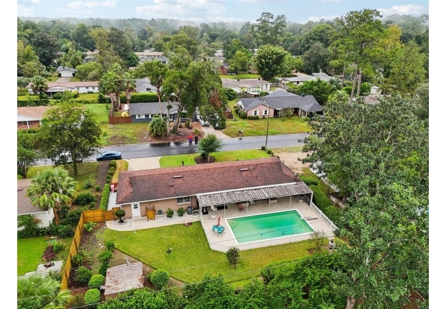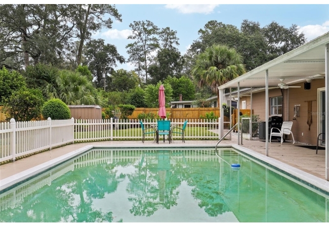 Welcome to this inviting 3-bedroom, 2-bathroom pool home in the desirable Renewood community of Gainesville. With 1,647 square feet of living space, this property blends comfort and function in a setting close to everything you need. Step inside to a bright and open family and dining room combination, filled with natural light. Just off this space, the kitchen features stainless steel appliances, generous cabinet and counter space, and a pantry for extra storage. A separate living room provides even more room to relax or entertain. The primary suite includes a private sliding glass door that opens to the backyard, along with an en suite bathroom featuring a walk-in shower. Two additional bedrooms and a second full bath complete the interior layout. Out back, enjoy the true highlight of the home: a covered patio overlooking a large in-ground pool. The fenced yard offers a shed, open space, and sits on over a quarter-acre lot, giving you plenty of room for both recreation and relaxation. Ideally located about 2 miles from the University of Florida, this home is also convenient to shopping, grocery stores, medical facilities, parks, and more. Don’t miss the opportunity to make this Gainesville gem your own! Mortgage savings may be available for buyers of this listing.
