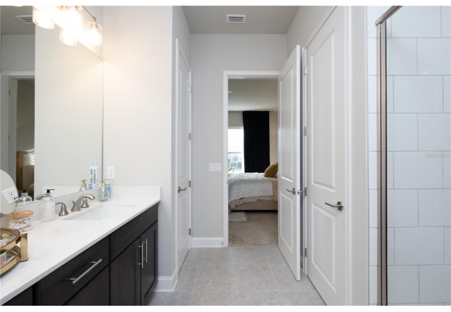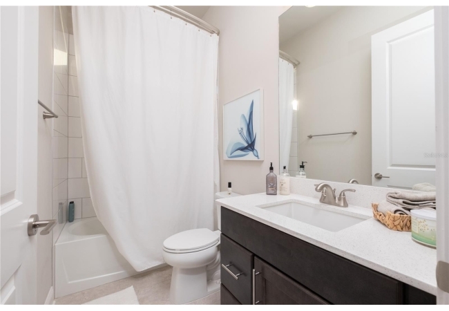 bathroom and giant walk-in closet. Two additional bedrooms share a second bathroom. The laundry room is spacious and conveniently located.