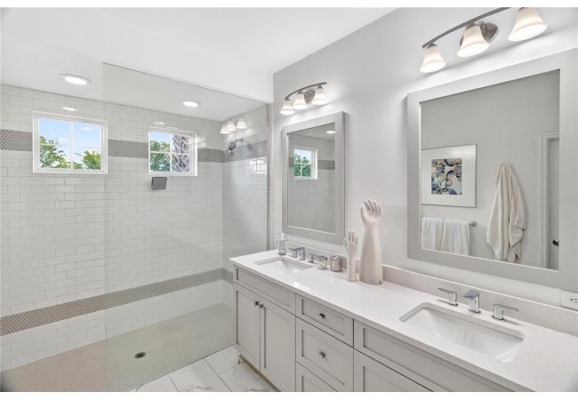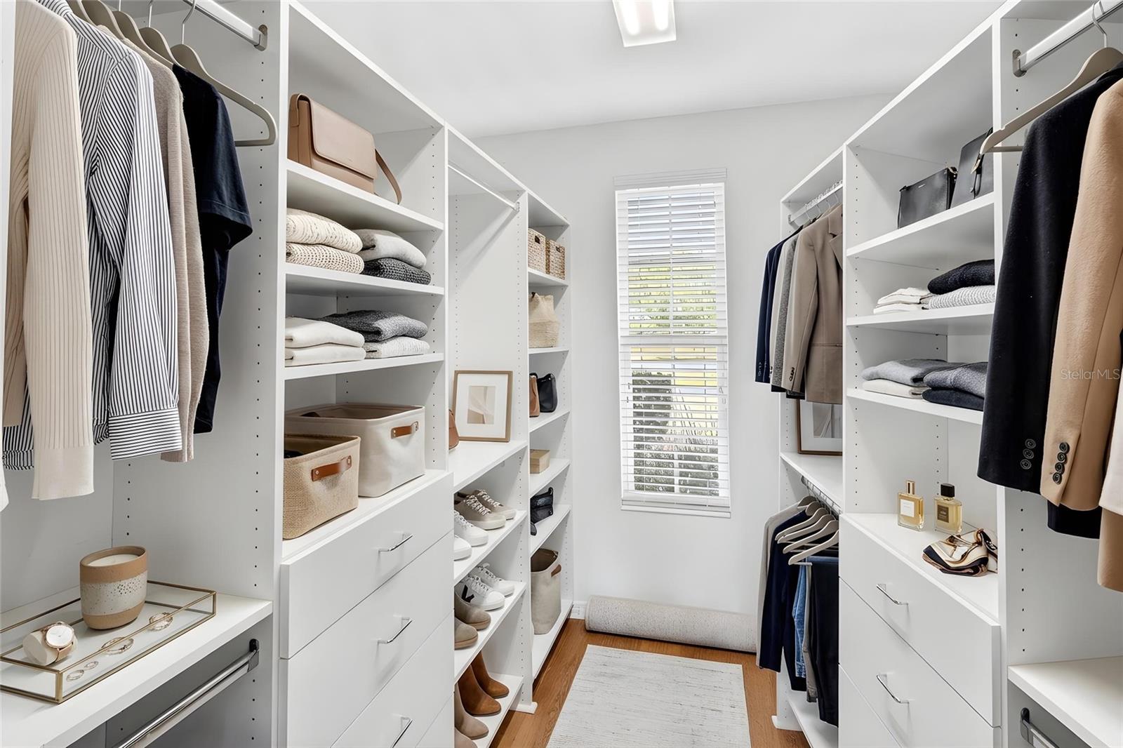 The thoughtfully designed layout offers three bedrooms and a dedicated den on the main level, along with a luxurious primary suite featuring custom California Closets, dual vanities, and a spacious walk-in shower. Upstairs, a private fourth bedroom or bonus retreat with full bath and walk-in closet provides ideal flexibility for guests, a home office, or multi-generational living.