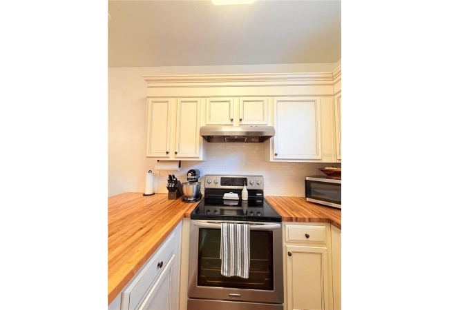 Step inside to find a freshly painted interior with updated luxury vinyl flooring on the main level and plush carpet upstairs. The modern kitchen features brand new butcher block countertops, contemporary wood cabinets, a new sink and faucet, and stainless steel appliances—ready for your next meal or gathering.