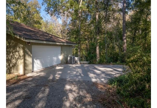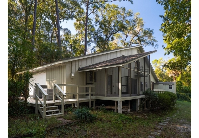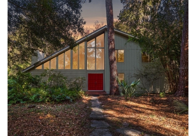 This home is a rare find—where artful design meets natural beauty. Set on nearly an acre along a wooded creek in an established NW neighborhood, the property offers the feeling of a private nature retreat without sacrificing proximity to everything that you love about Gainesville. With bold mid-century lines and lush views, every space of this home feels connected to the outdoors.