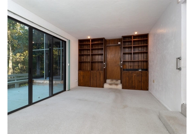 Multiple decks extend your living areas outdoors, ideal for relaxing, entertaining, or simply taking in the peaceful views of the creek and woods below. The home features four bedrooms and three baths, including one bedroom that could serve as an office, library, or creative retreat, complete with stylish and functional built-in shelving. An attached darkroom offers additional storage, a hobby nook, or flex space. The primary suite includes a private balcony, a serene spot to take in the surrounding landscape each morning. Additional home highlights include a relaxing built-in sauna, indoor laundry room, and an oversized two-car garage.