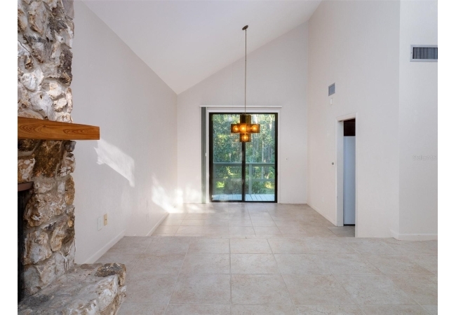 Inside, the living area welcomes you with dramatic ceiling height and expansive windows that create a seamless flow between the interior and the surrounding landscape. The kitchen offers both style and convenience, featuring sleek cabinetry, quality finishes, and easy access to both of the main living and dining areas—perfect for entertaining or everyday living.