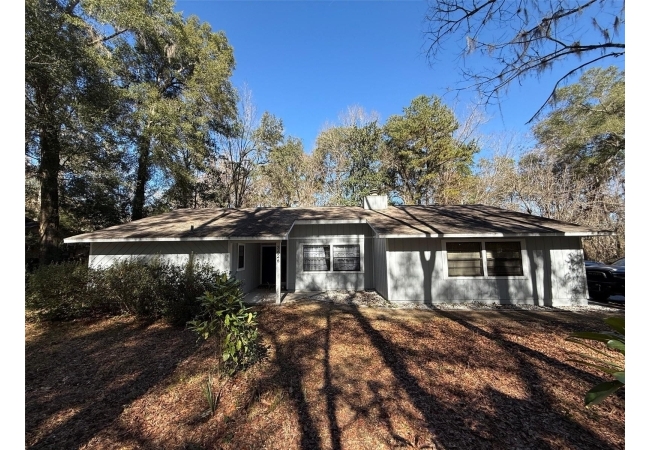 Situated on an almost two thirds of an acre corner lot in the highly sought after Rock Creek neighborhood, this 4 bedroom, 2 bath split plan home offers space, style, and an unbeatable location. Inside you will find two living areas, one featuring a cozy fireplace, an updated kitchen with granite countertops, and wood look tile throughout for a seamless and modern feel. The two car garage adds convenience, while the large lot provides plenty of room to enjoy the outdoors. Rock Creek residents enjoy access to a community pool, tennis courts, basketball courts, a playground, and more, all just minutes from Fresh Market, Publix, UF, and top rated schools.