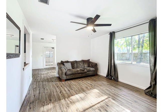 Amazing single family home less than 2 miles to UF! Newer Roof, HVAC and flooring in this 3/2 near Bivens Lake in SW Gainesville. 1/4 acre lot that is very private. Newly renovated bathrooms with modern gold hardware. The kitchen boasts all new cabinetry and appliances. Features a separate dining room and extra living spaces . Front porch overlooks a large front yard. Glass sliding doors open up to a private and partially shaded backyard with plenty of room. Located close to bus stops on 13th, about a 2 mile commute to campus and UF Health. 8 miles to Gainesville Airport, 3 miles to the Swamp Restaurant, Sorority Row, Norman Hall. 2.5 miles to Downtown Gainesville.
