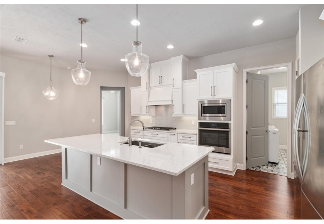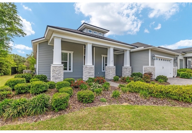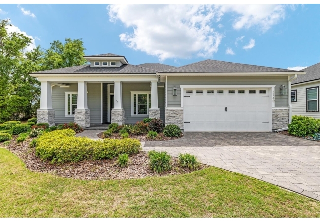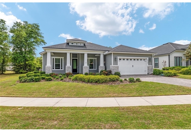 Looking to live in Oakmont but not ready to build? This move-in ready ICI “Weston” with Craftsman elevation, built in 2020, offers the perfect blend of quality construction, thoughtful upgrades, and everyday comfort. This 3-bedroom, 2-bath home plus flex room is filled with custom features, including a private office with double glass doors—ideal for working from home or quiet space. Situated on a spacious 65-foot corner lot, you’ll enjoy a fully fenced backyard and a large covered, screened birdcage patio complete with a hot tub—your own private outdoor retreat. Inside the home features 10-foot ceilings, 11-foot tray ceilings, crown molding throughout the main living areas, and UPGRADED engineered hardwood flooring that flows through the main living spaces and into the primary bedroom. Tile flooring is featured in the bathrooms, with carpet in the secondary bedrooms. The kitchen is designed for both function and entertaining, showcasing quartz countertops, a gas cooktop, upgraded stainless steel appliances, tile backsplash, and a large center island with additional seating. The great room has an abundance of natural light and opens seamlessly to the outdoor living space with expansive sliding glass doors with new plantation shutters. The primary suite offers a spa-like en-suite with an ADA-compliant walk-in shower, floor-to-ceiling tile, double vanities, and a spacious walk-in closet. All interior doors are 2'8" for ADA accessibility. The guest bath features a tub/shower combo and quartz countertops. Additional features include a spacious laundry room with upgraded tile, sink, and cabinetry (washer and dryer included), paver driveway and porches, whole house generator, tankless water heater, Habitech security system, Ring camera, transferable 2-10 home buyers warranty, and CLAY Electric. Enjoy all of Oakmont’s resort-style amenities, including a residents club, fitness center, beach-entry pool, splash area, tennis, basketball, beach volleyball, and playground. Conveniently located near Tioga Town Center, Hawkstone Country Club, the University of Florida, Santa Fe College, UF Health, HCA Florida North Florida Hospital, Butler Plaza, and Celebration Pointe. If you’ve been waiting for the right Oakmont home without the build time—this is it.