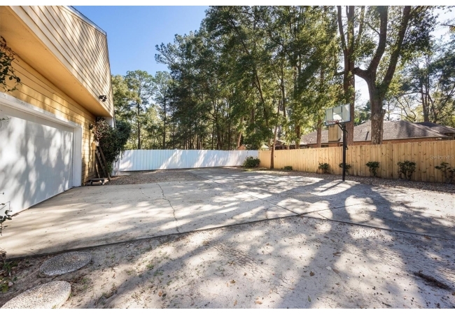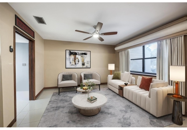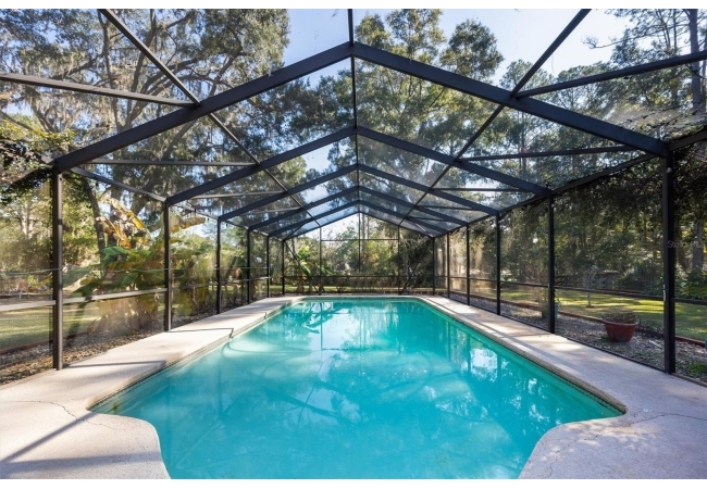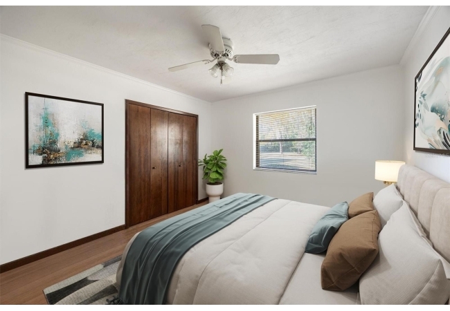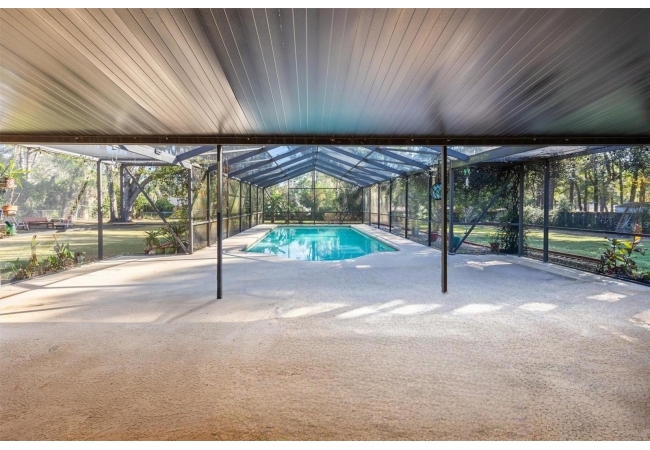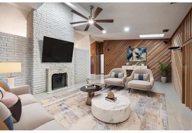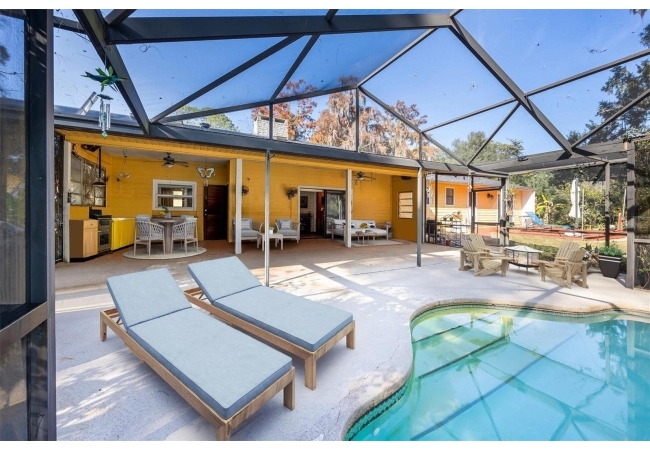 Outside, the property shines with newly painted columns and siding, an enclosed pool, and room for an outdoor kitchen—ideal for fun gatherings and year-round entertaining. The spacious backyard features several mature fruit trees, offering a serene private retreat.