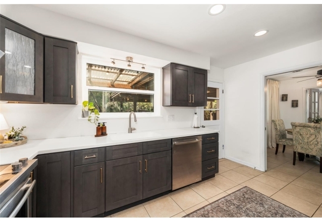 Inside, the home has been thoughtfully updated with a beautifully renovated kitchen showcasing quartz countertops, a modern backsplash, and Jenn-Air appliances. The well-designed layout allows the living area to flow seamlessly into the kitchen and dining space, complemented by a versatile bonus flex room—ideal for a home office, media room, or additional living area.