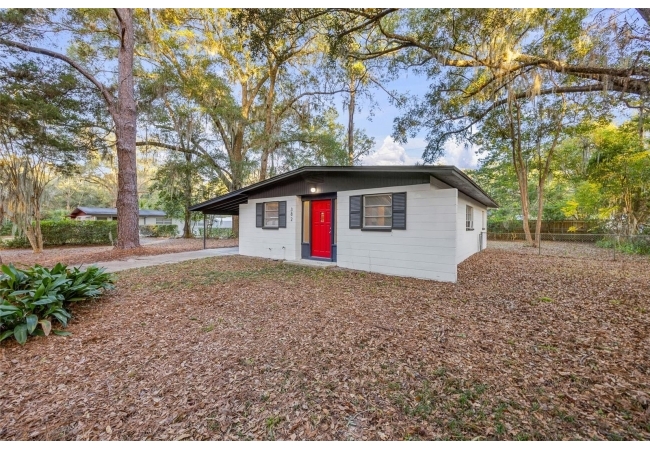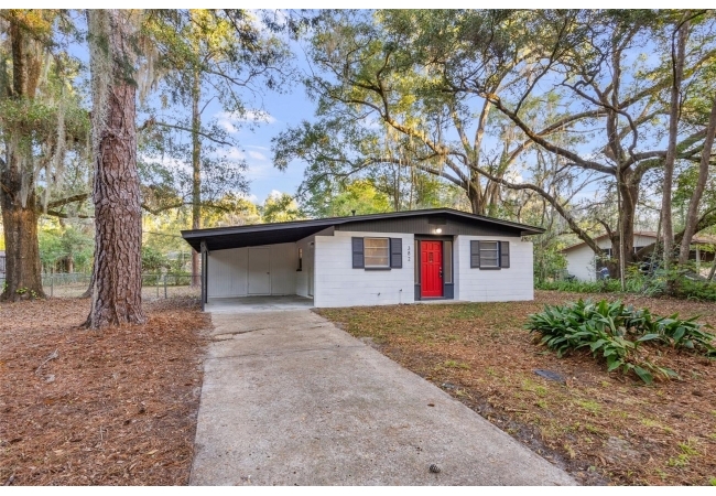 Nestled on a quiet tree-lined street in the heart of NW Gainesville, this renovated 3-bed, 1-bath concrete block home welcomes you with a newer roof (2024), crisp exterior paint, and a paved driveway leading to a convenient attached carport! Step inside to a light-filled interior where all-new flooring, modern fixtures, and fresh paint flow seamlessly throughout the entire home, providing a clean, versatile canvas for any decor. The home is cooled and heated by individual window units, offering localized climate control in each room. The heart of the home is the beautifully updated kitchen, featuring an efficient L-shaped design with new cabinetry, sleek countertops, and double sinks, located just steps from the dining area for easy entertaining. Tucked away for maximum privacy, the three spacious bedrooms offer ample closet space, while the fully refreshed bathroom features contemporary fixtures and finishes. The property features a large, fully fenced-in backyard on a .23-acre lot, providing a private sanctuary with plenty of room for pets, gardening, or play. Enjoy the peace of mind that comes with living in a prime location just minutes from the Millhopper Shopping Center, top-rated schools, and a short commute to the University of Florida. Schedule your private showing today and see for yourself why this Fernwood Manor beauty won’t last long!