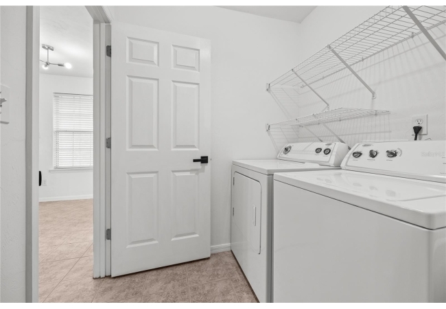 Additional features include an indoor laundry room with shelving, low-maintenance landscaping, and convenient parking and storage with a one-car garage, driveway, and additional open parking located directly adjacent to the home.