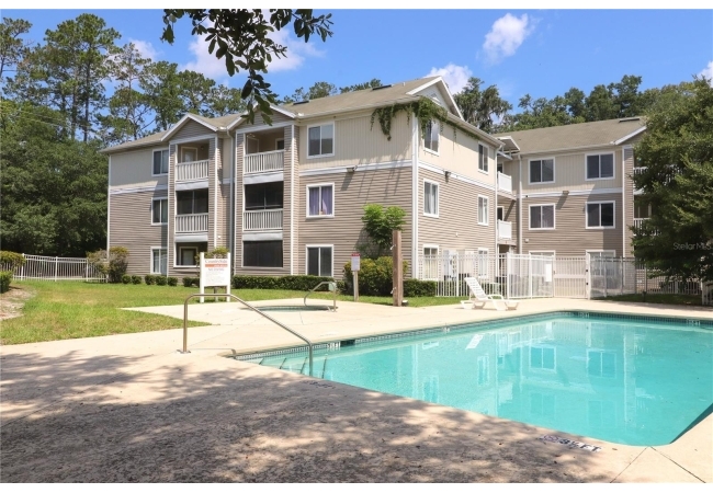 As a top-floor unit in Building 3, you are perfectly positioned right next to the community pool, and can see the pool from the balcony. Residents enjoy community amenities including a fitness center, volleyball and basketball courts, pool, expansive green spaces, and open parking. The monthly HOA covers exterior maintenance, pest control, high-speed internet, and professional management, ensuring a low-maintenance lifestyle. This is a premier investment opportunity with a strong rental history and minimal vacancy; the property is fully leased through 7/31/2026. The location is unbeatable: it's on a direct bus route to UF's main campus, and within 1.5 miles of the VA Hospital and the UF Colleges of Medicine, Dentistry, Pharmacy, and Veterinary Medicine. Additionally, you’re less than 2 miles from Butler Plaza Shopping Center, home to groceries, retailers, and restaurants, including Publix, Whole Foods, Target, Walmart, Trader Joe's, The Cheesecake Factory, and so much more!